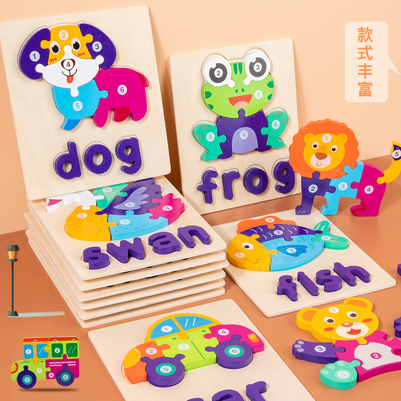 木制0-3岁儿童早教立体拼图益智英文字母拼单词手抓板拼板玩具