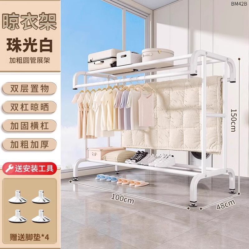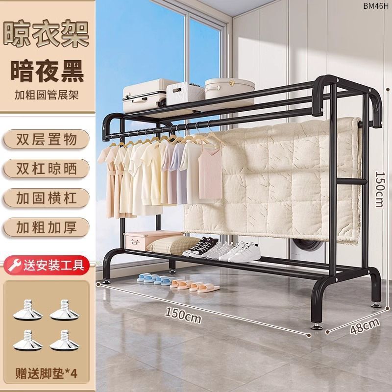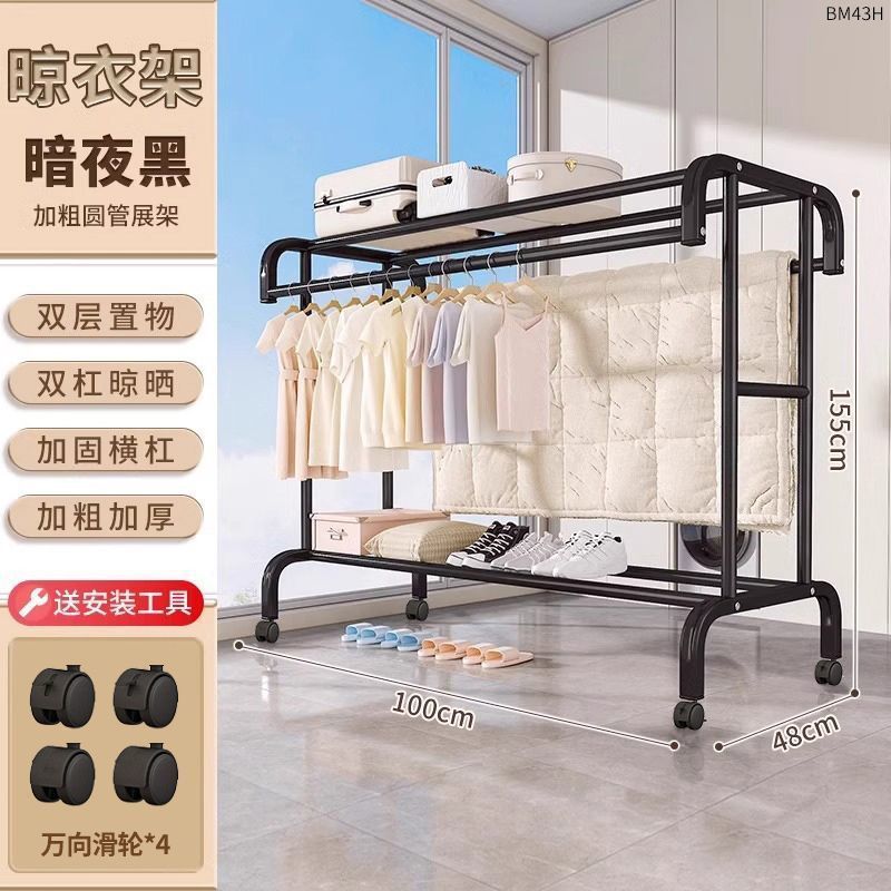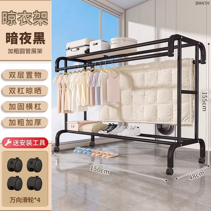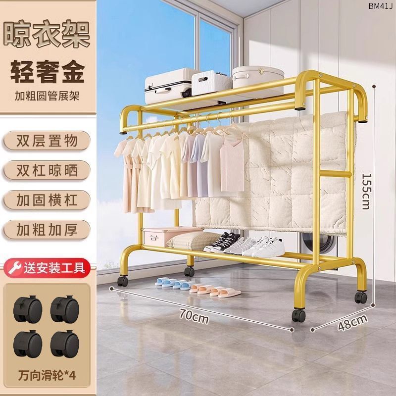 加粗落地挂衣架室内家用晾衣架阳台卧室挂衣服置物架可移动衣帽架