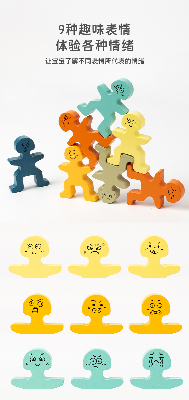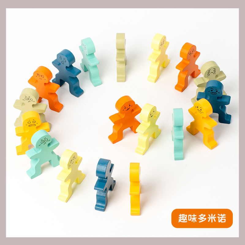 儿童木制萌趣小人叠叠乐积木宝宝平衡叠叠高桌面游戏益智拼图玩具