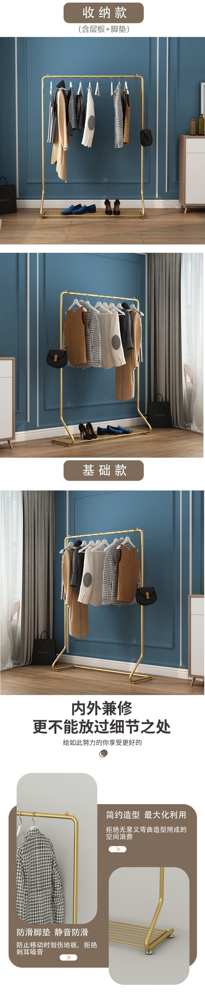 轻奢挂衣架落地带滑轮室内衣帽架服装店卧室晾衣杆商用简易收宿舍