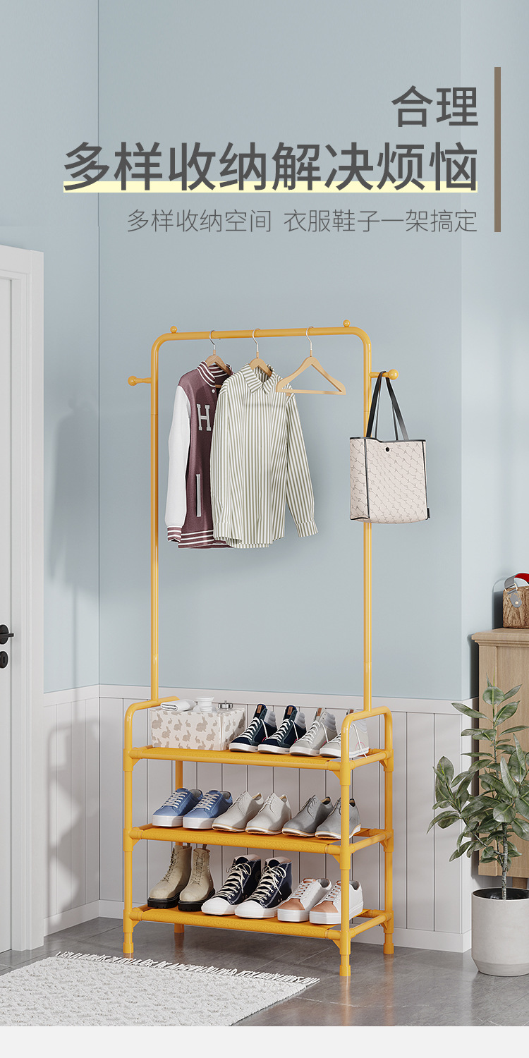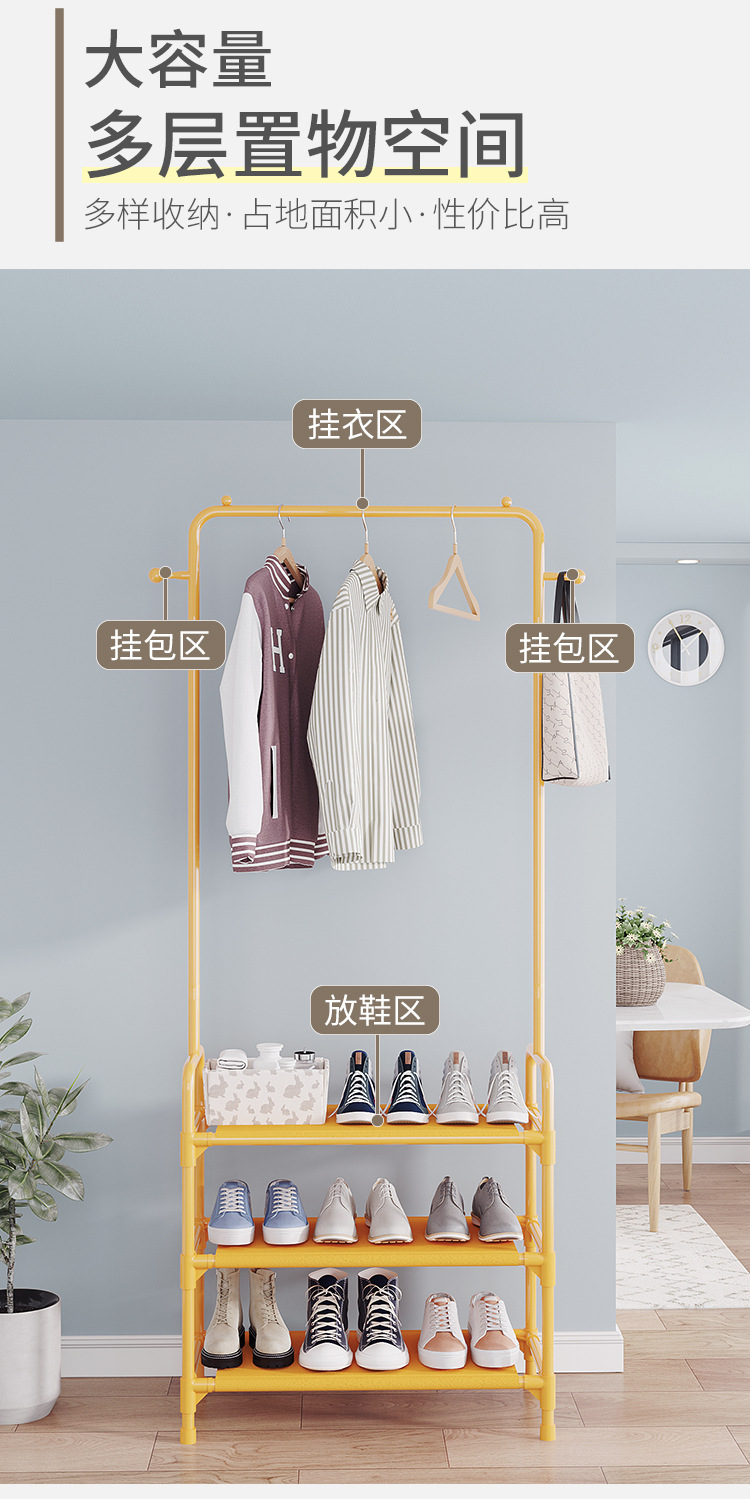 落地晾衣架批发简易衣帽架挂衣架宿舍家用收纳鞋架鞋帽架置物架