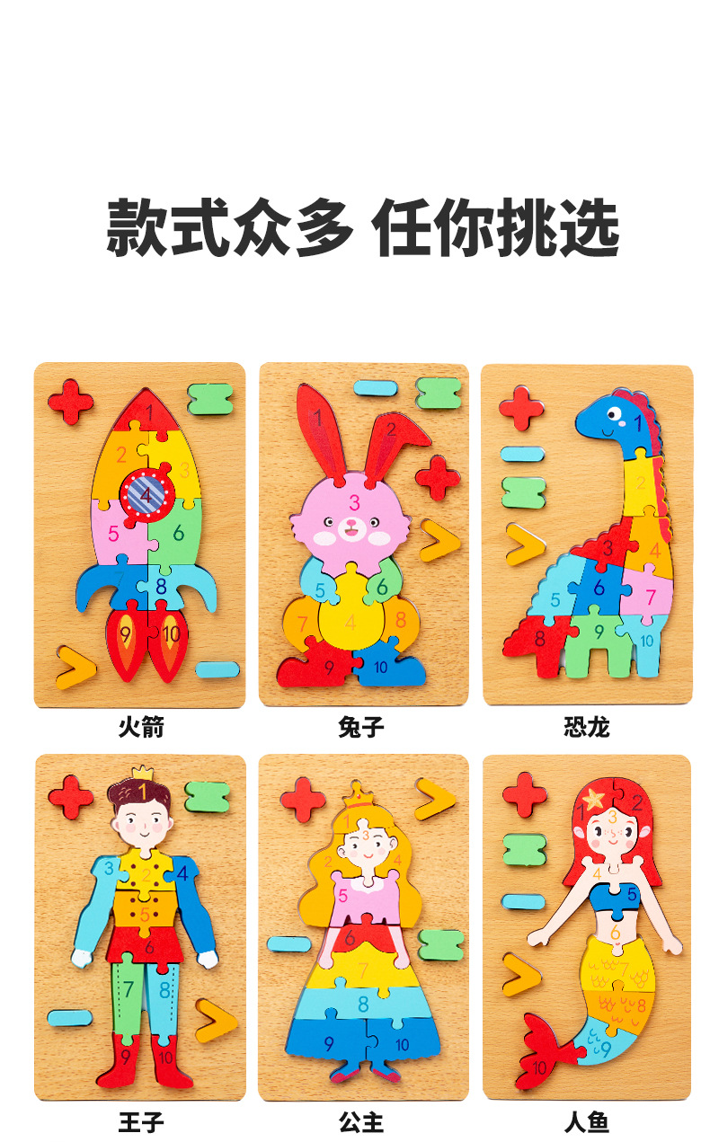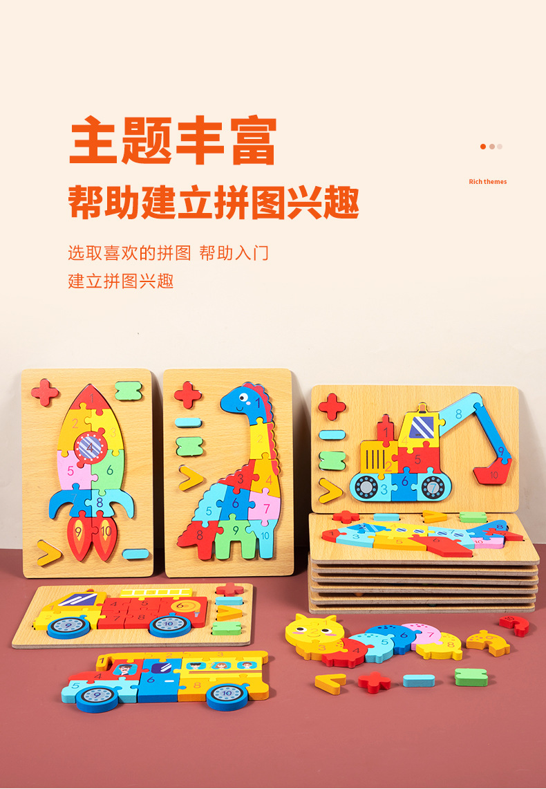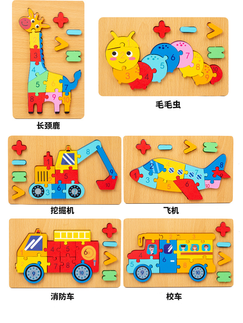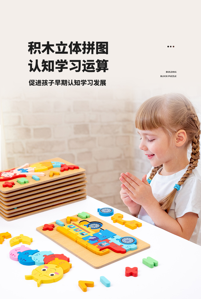 木质早教认知儿童益智玩具积木制动物交通形状配对3d立体拼图批发