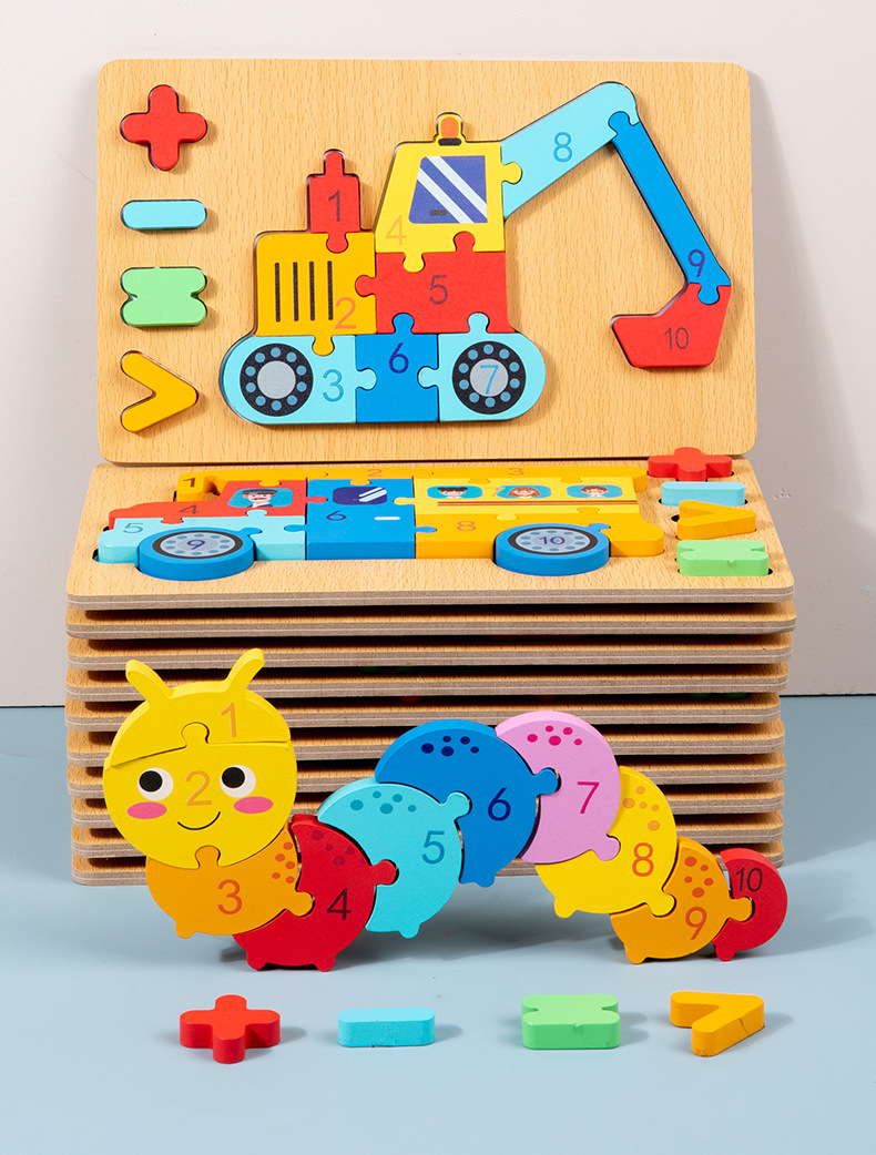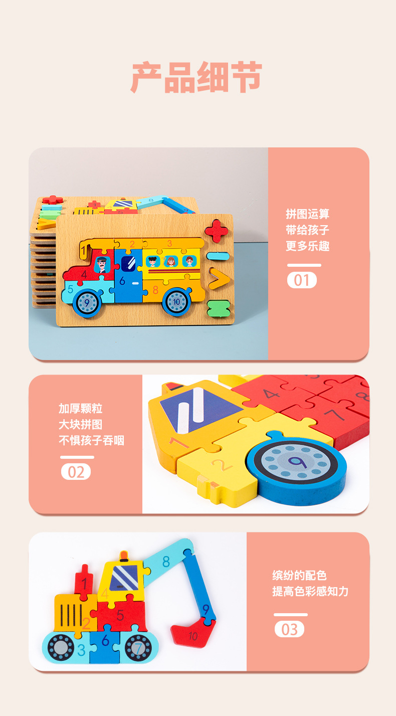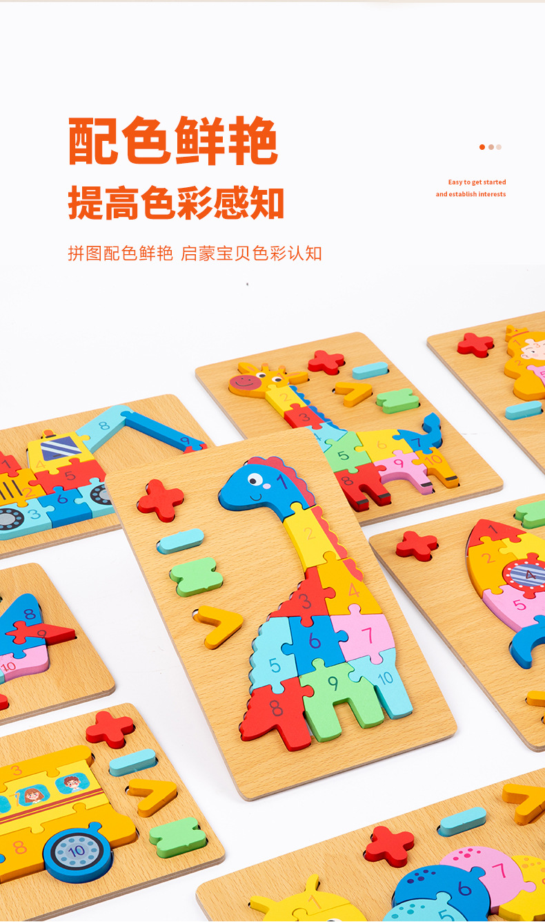 木质早教认知儿童益智玩具积木制动物交通形状配对3d立体拼图批发