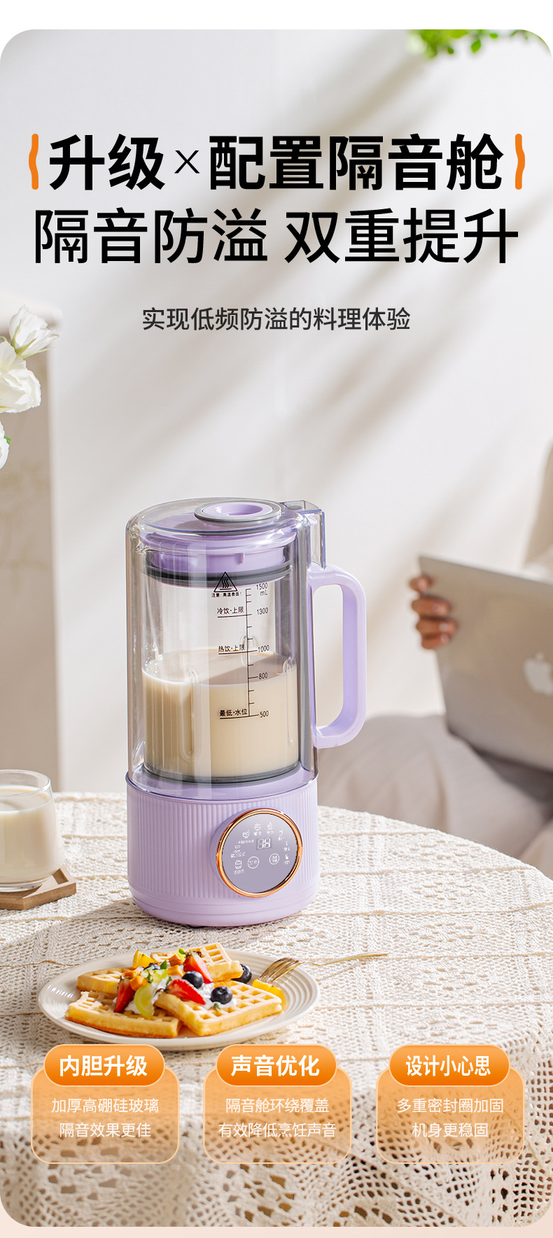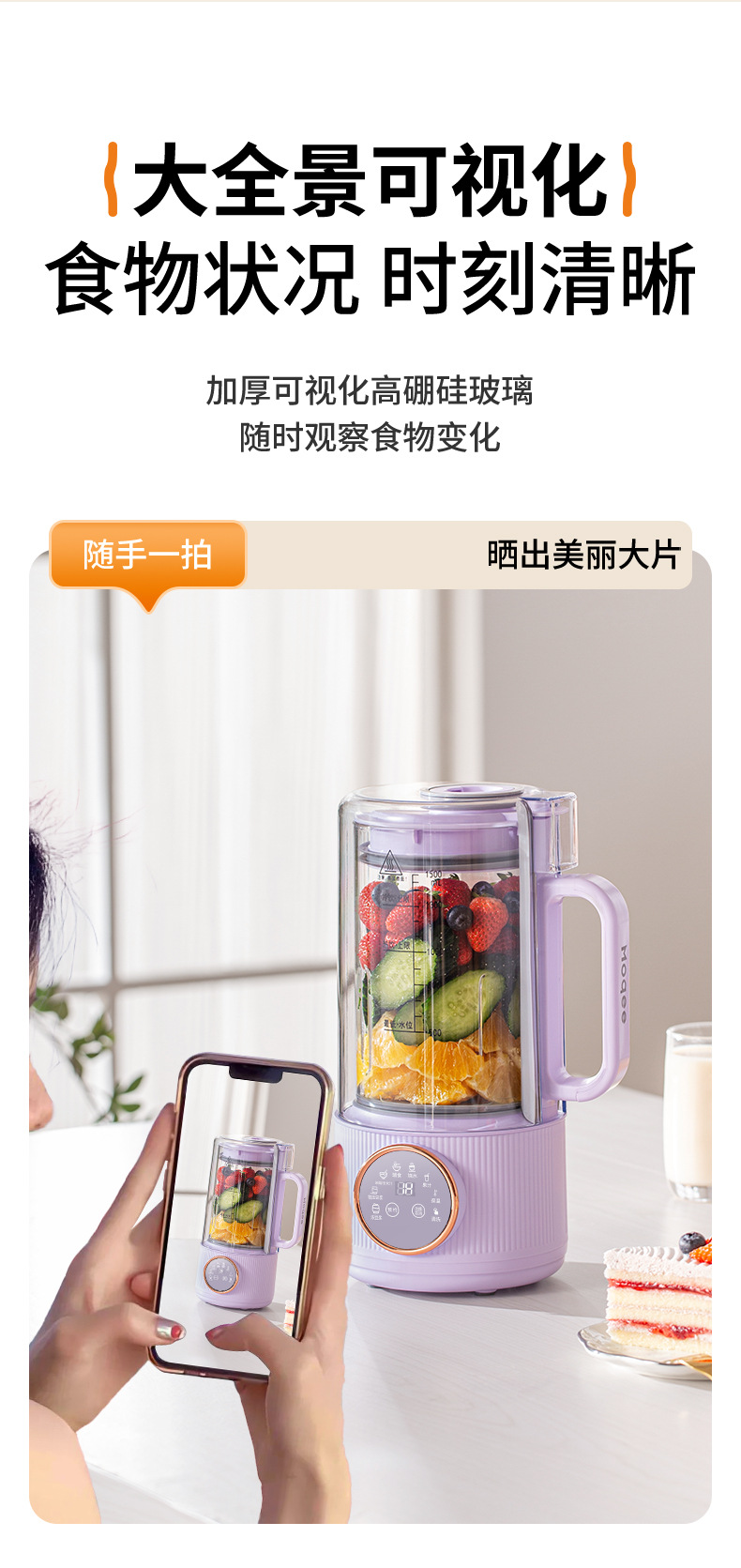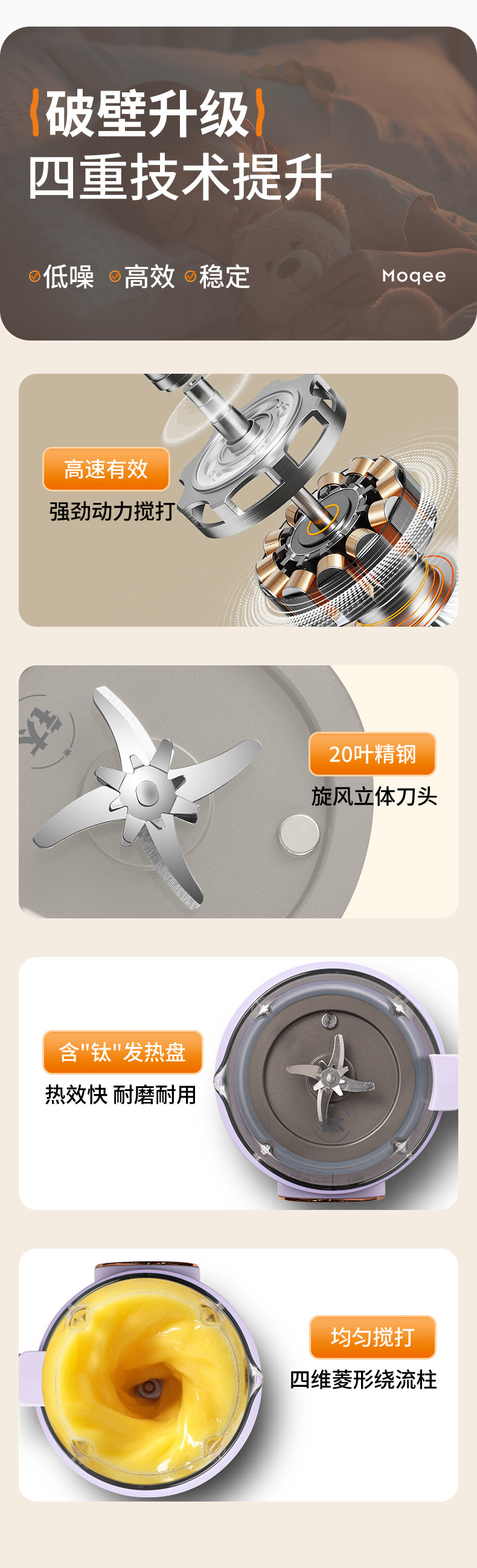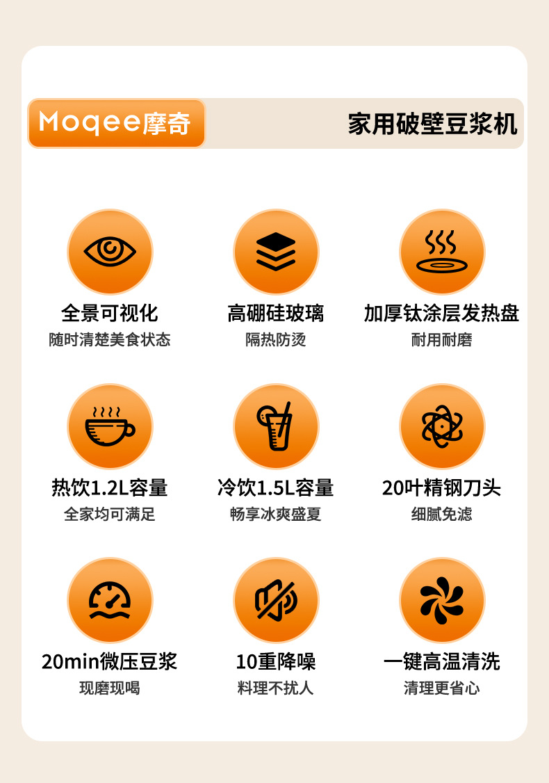 摩奇破壁豆浆机家用小型全自动免煮免过滤多功能料理机一体破壁机