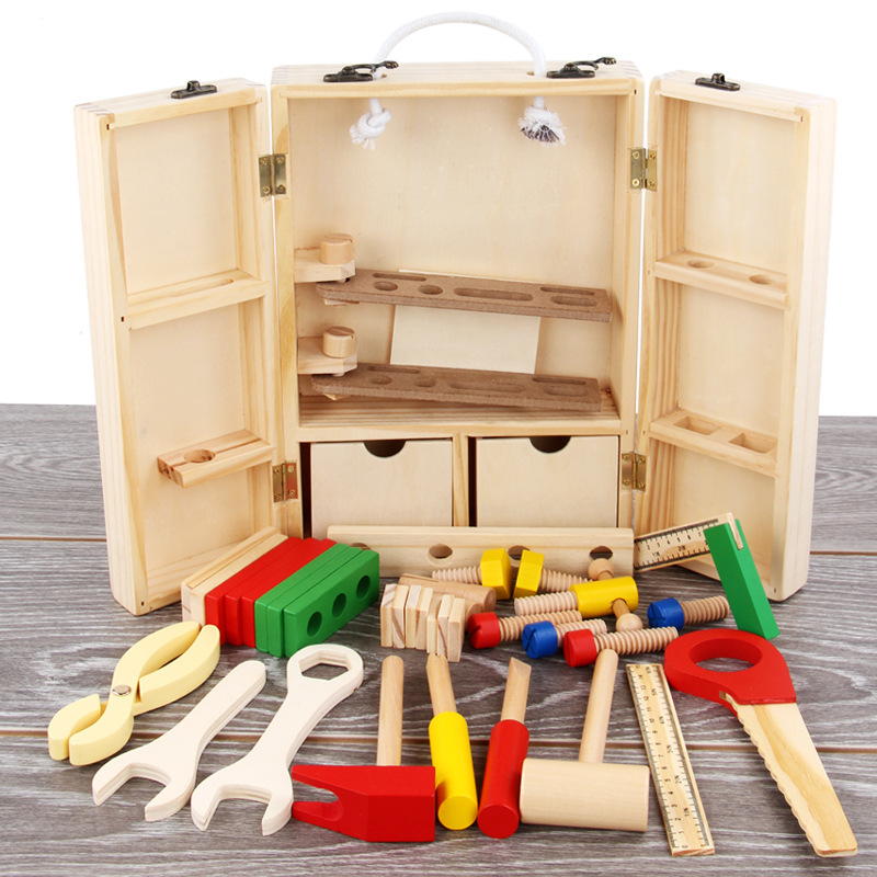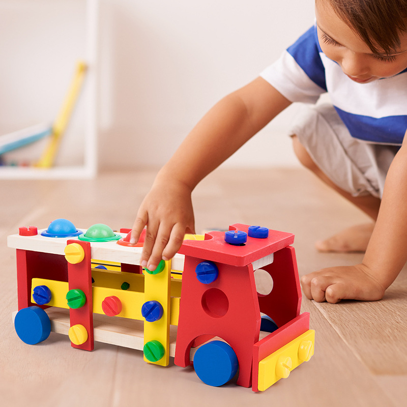 木制儿童工具箱汽车拆装螺丝螺母组合益智玩具仿真过家家拼图拼板