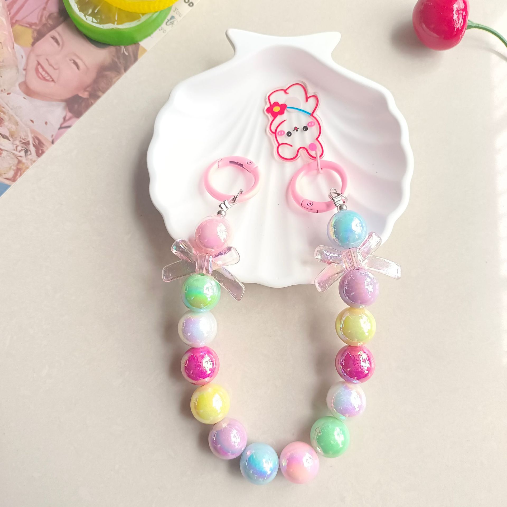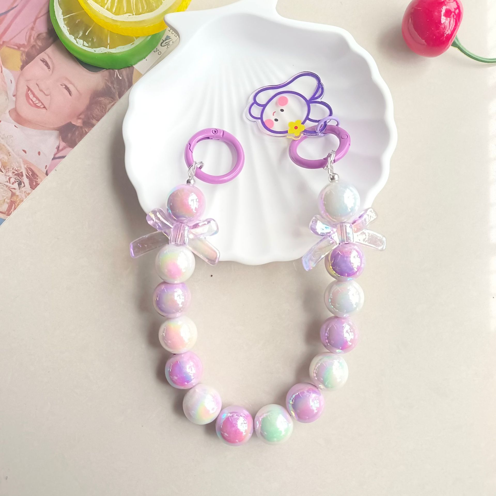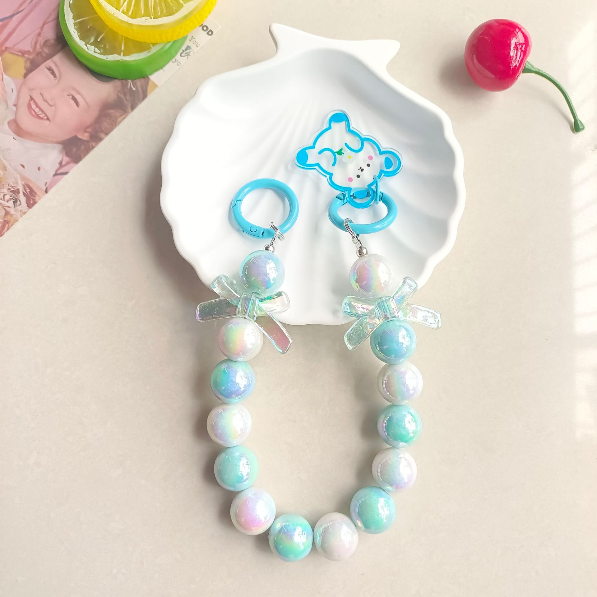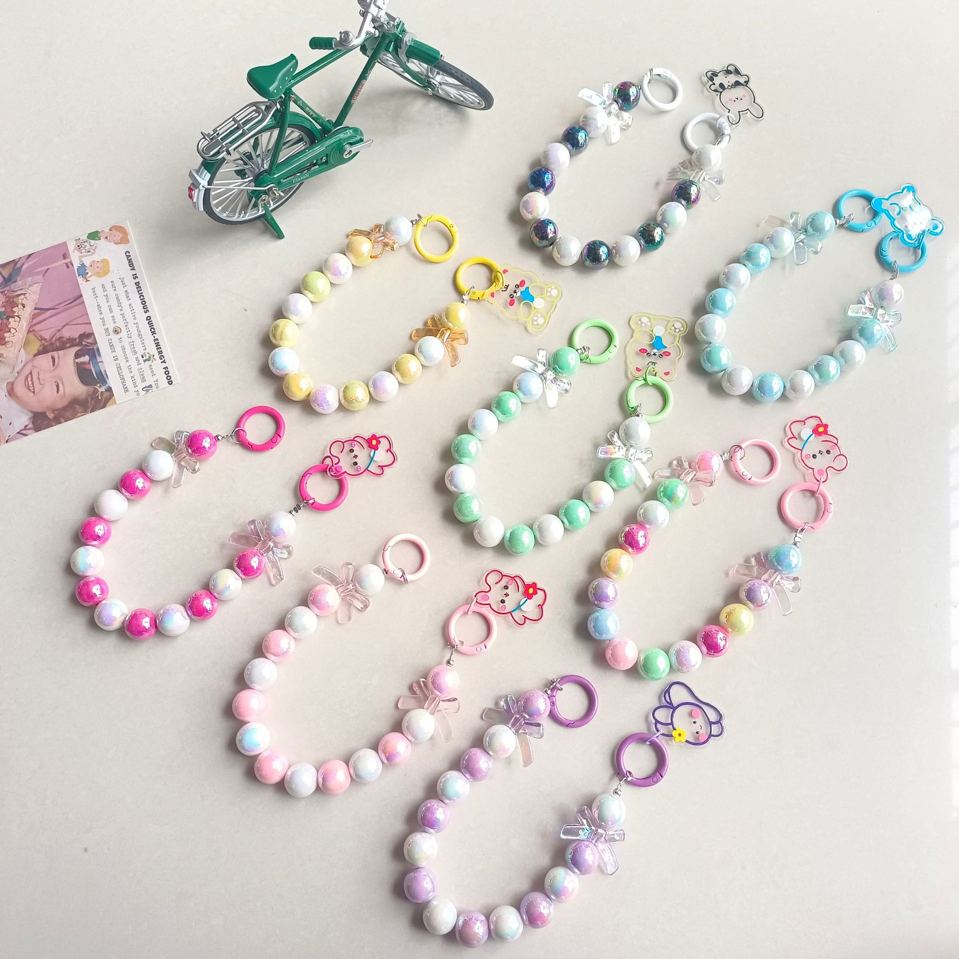 新款小熊手提链人鱼姬串珠手机壳挂饰挂链学生礼品少女心水杯链条