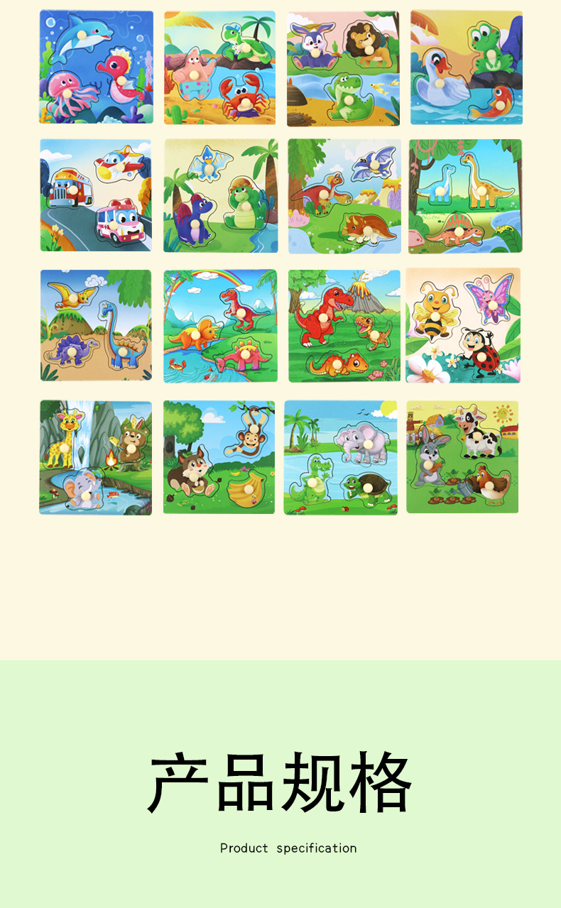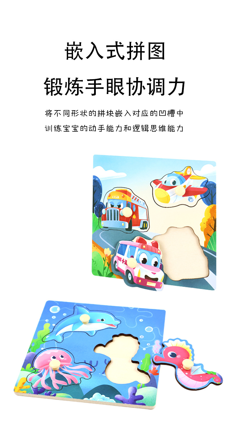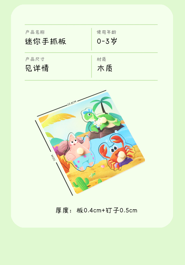 木钉宝宝迷你手抓板镶嵌拼图 早教儿童益智木制立体拼图拼板玩具