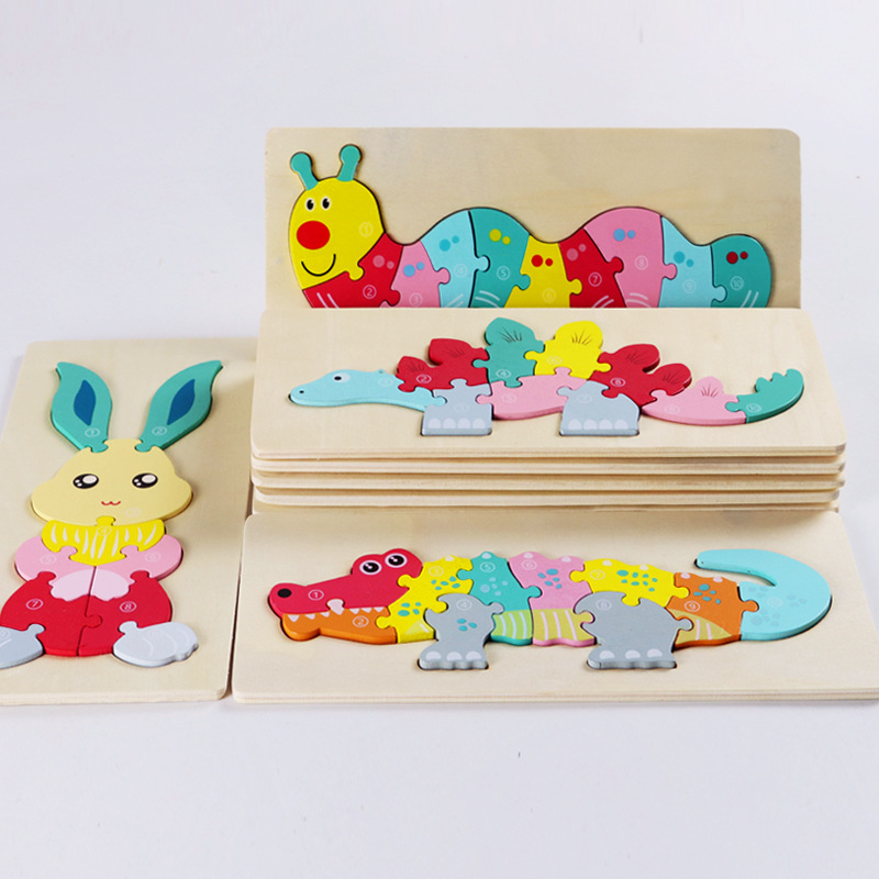 木制儿童立体卡扣交通动物恐龙早教认知木制拼图拼板益智积木玩具