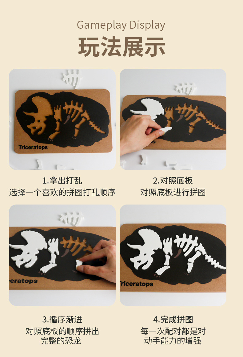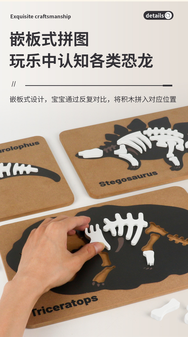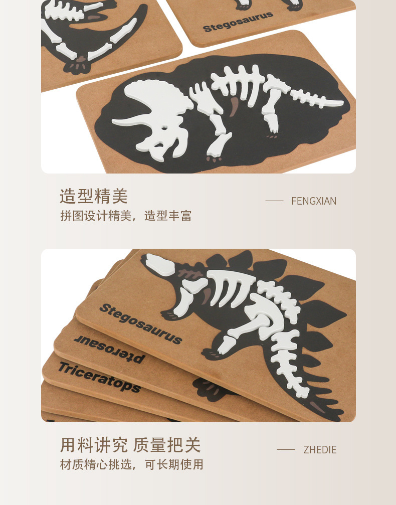 恐龙化石立体拼图创意木制益智拼板儿童早教积木考古挖掘益智玩具