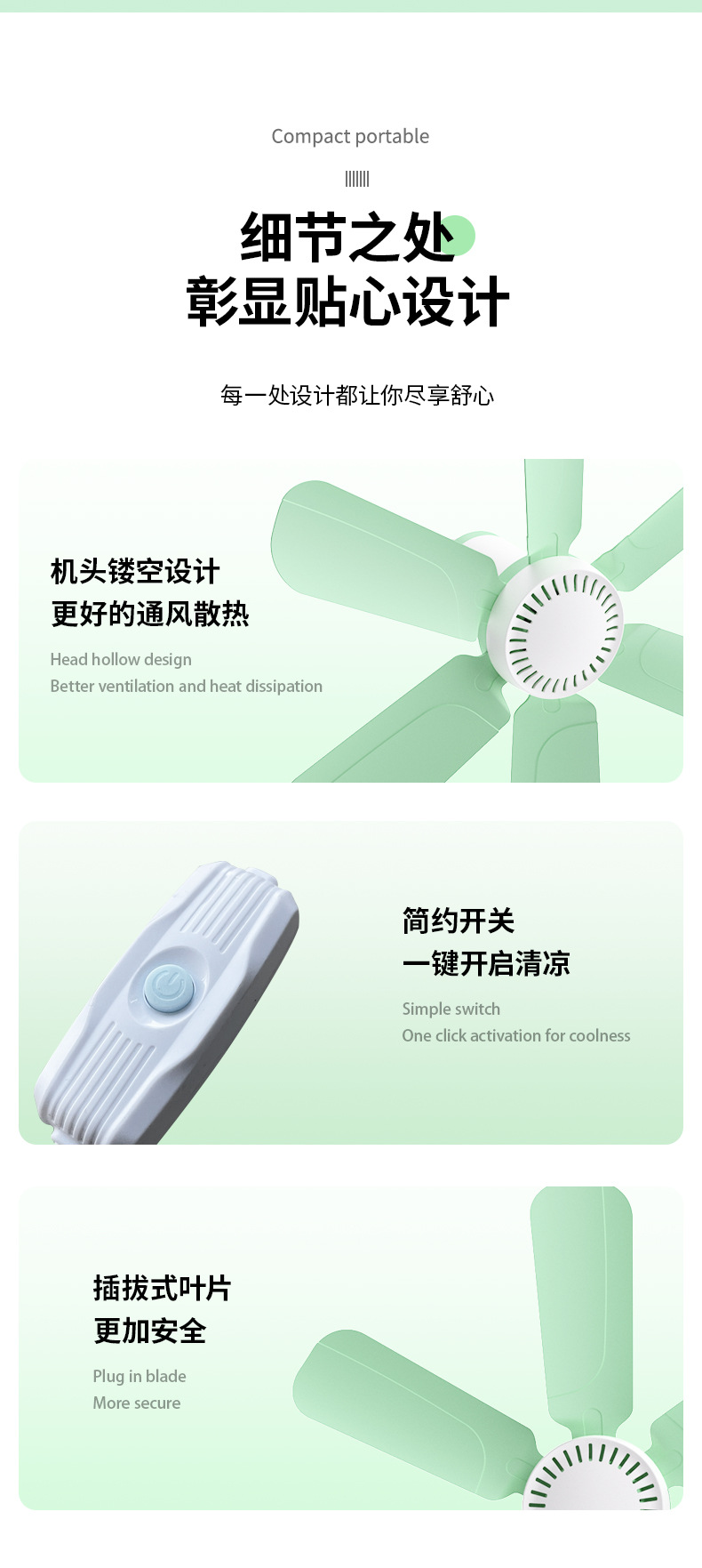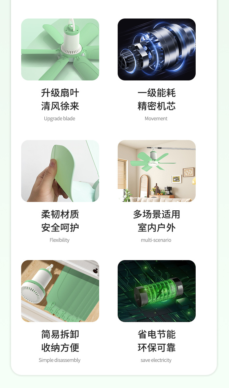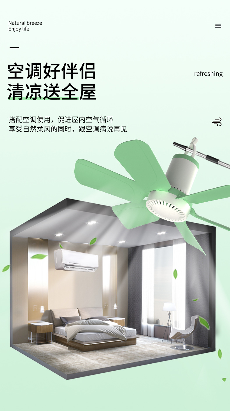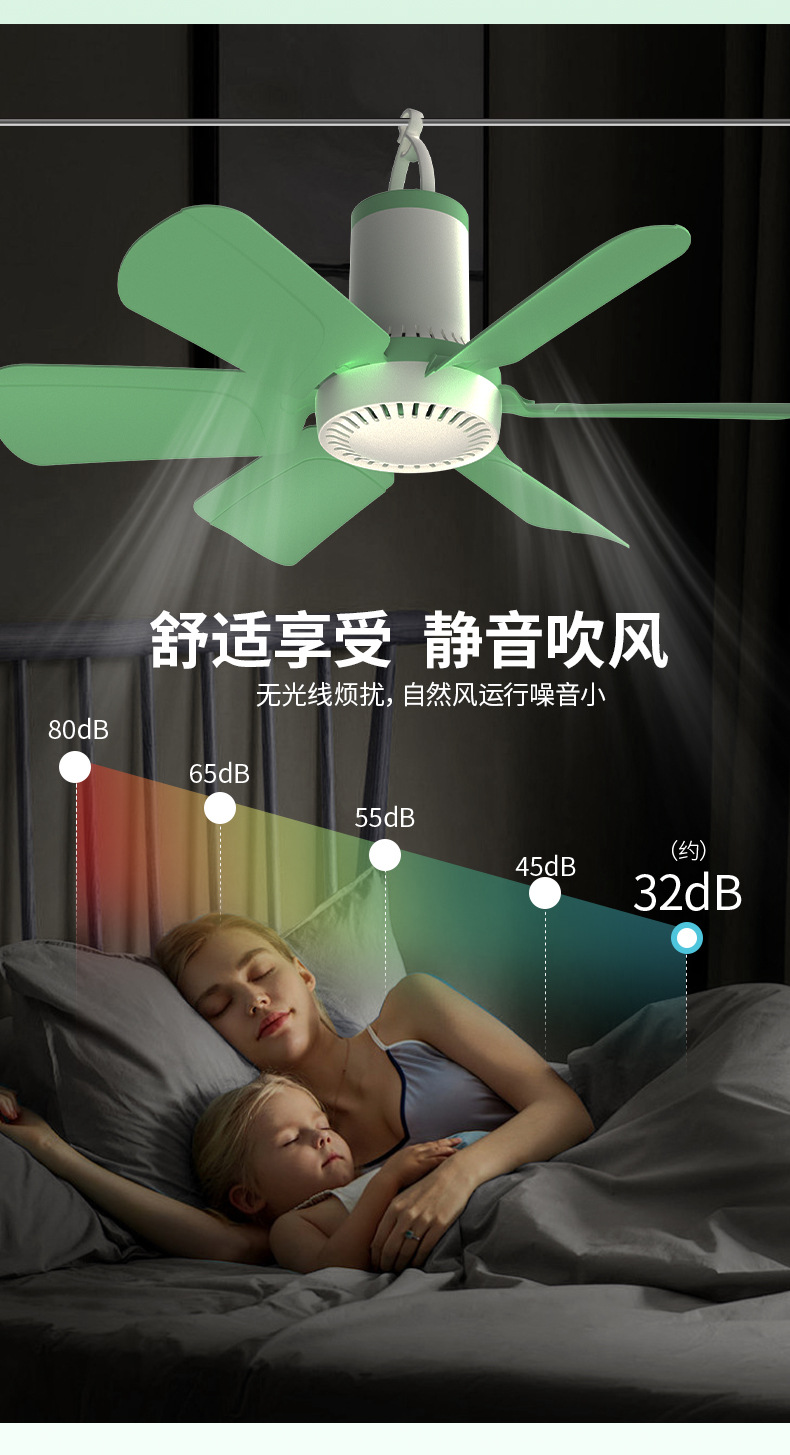 大风力六叶迷你吊扇空气循环学生宿舍家用床上风扇静音吊式电风扇
