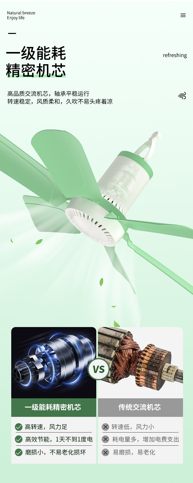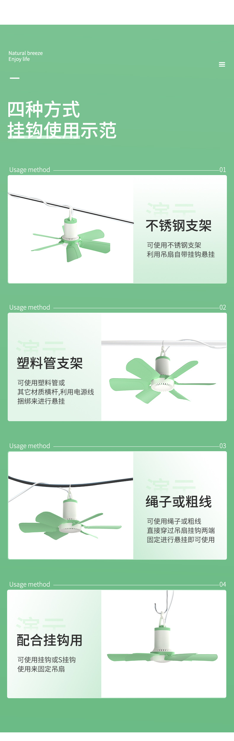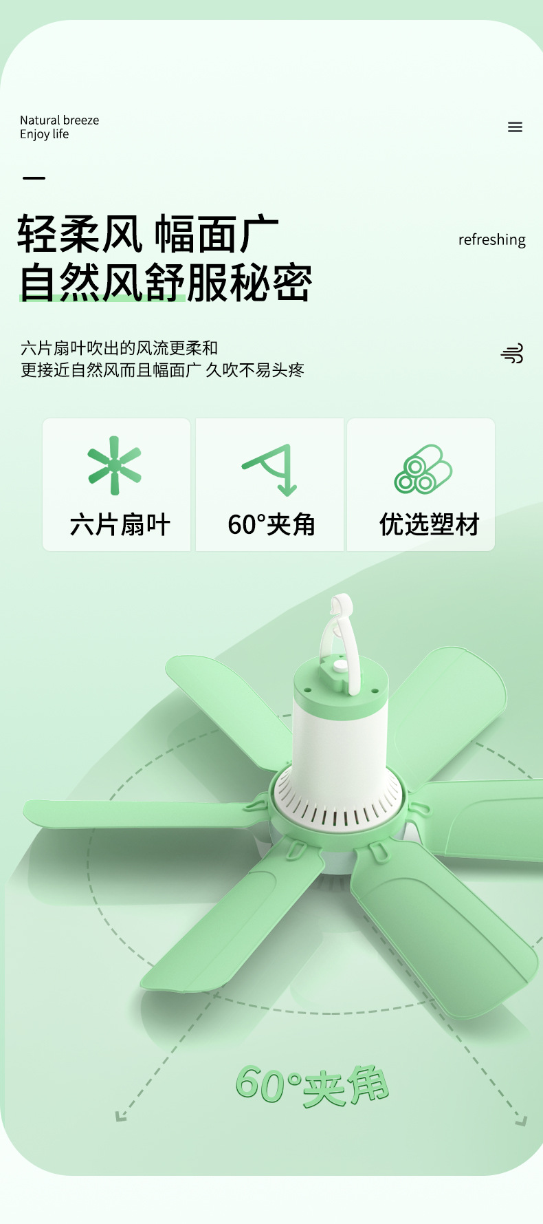 大风力六叶迷你吊扇空气循环学生宿舍家用床上风扇静音吊式电风扇