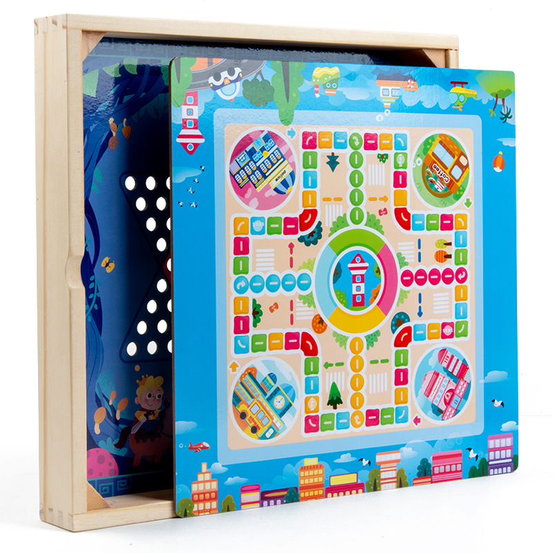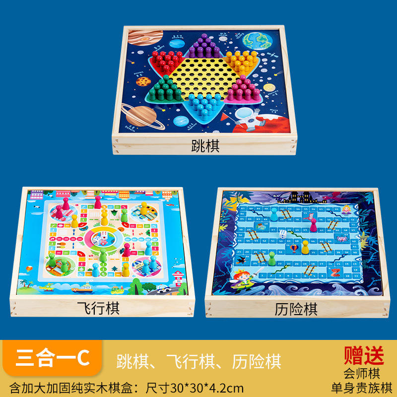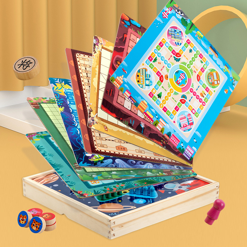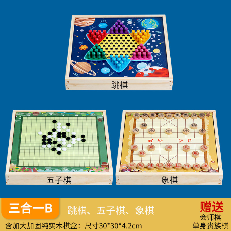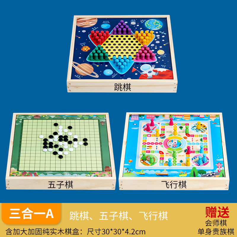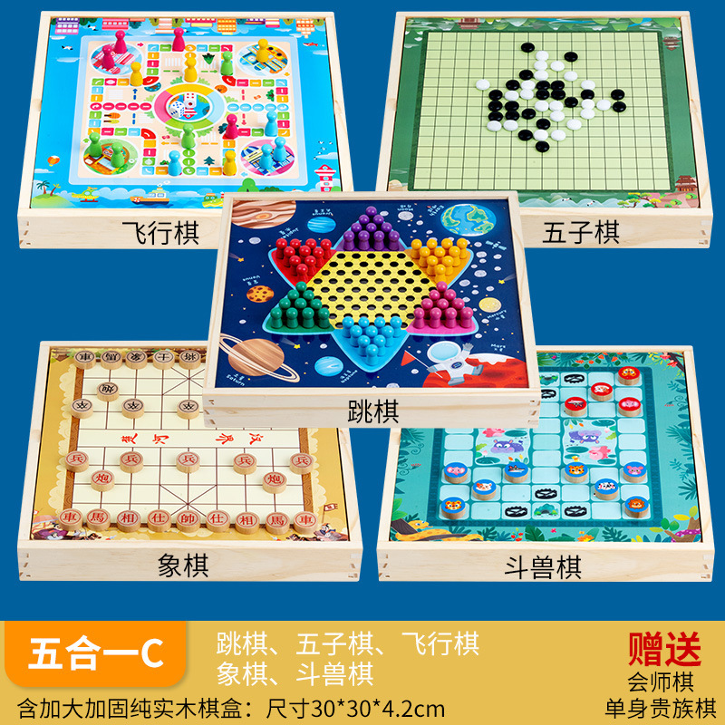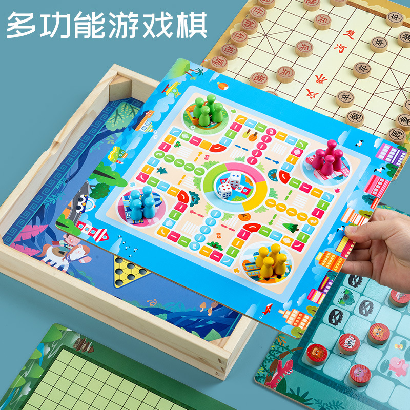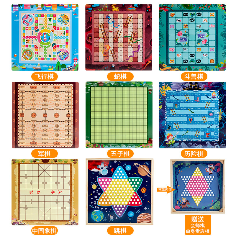 木制儿童跳棋飞行棋五子棋斗兽棋象棋九合一多功能游戏棋学生玩具