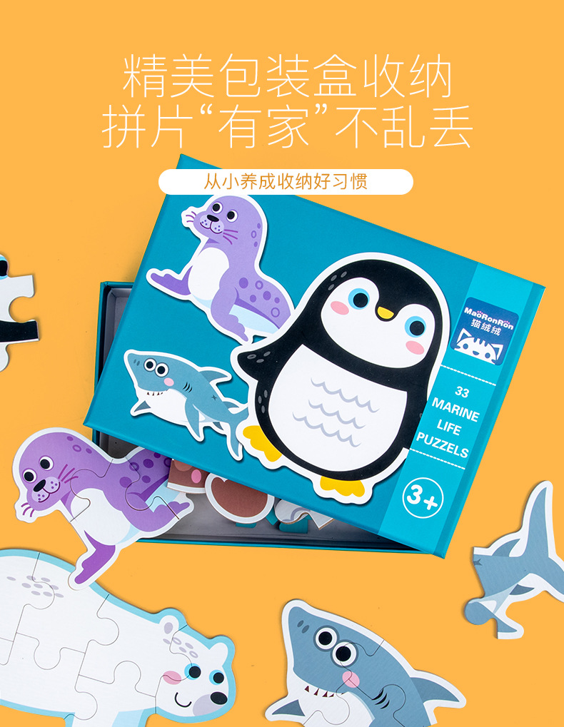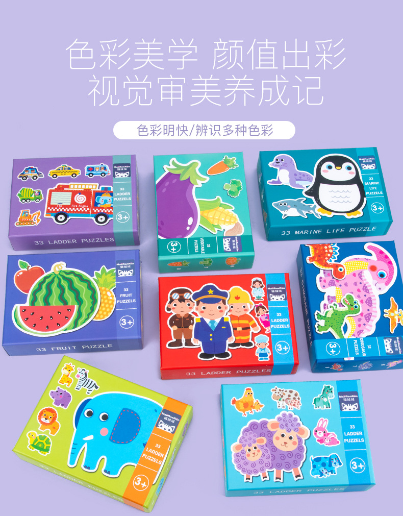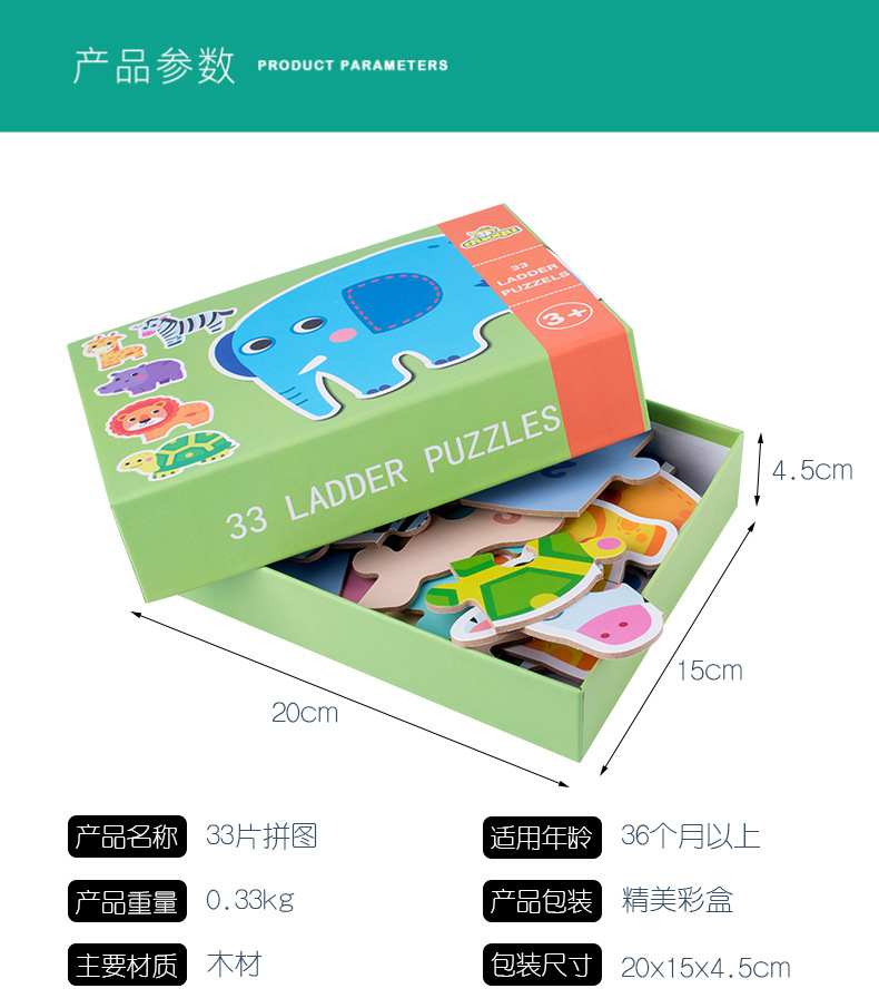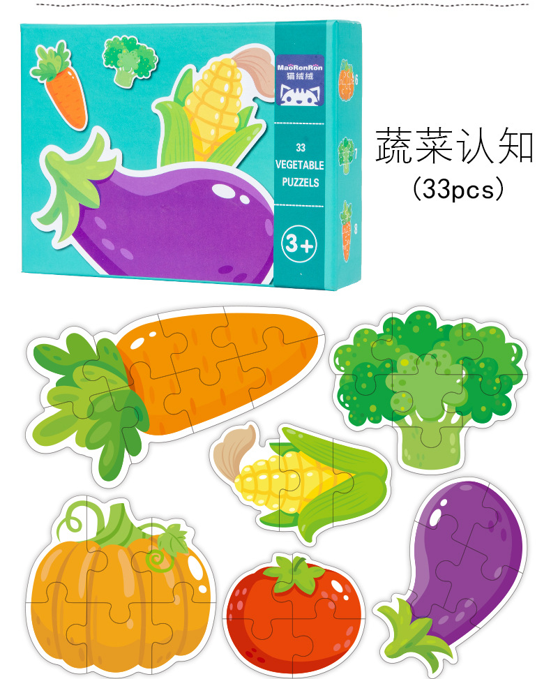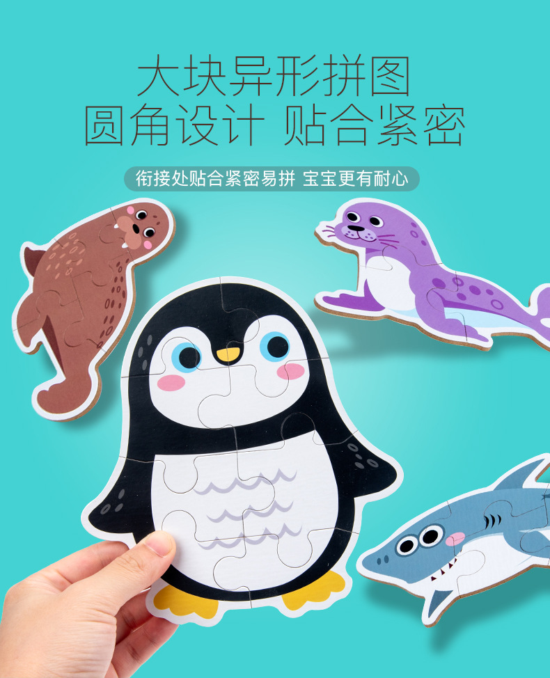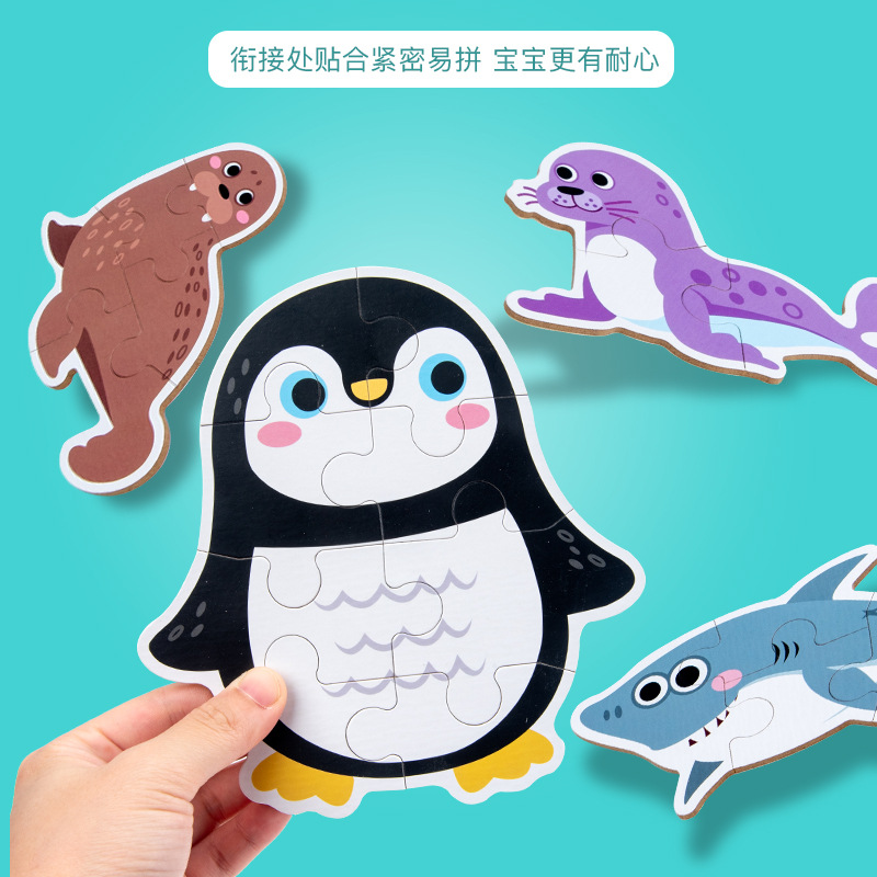跨境创意3岁儿童早教异形盒装33片动物恐龙交通插画纸质拼图玩具