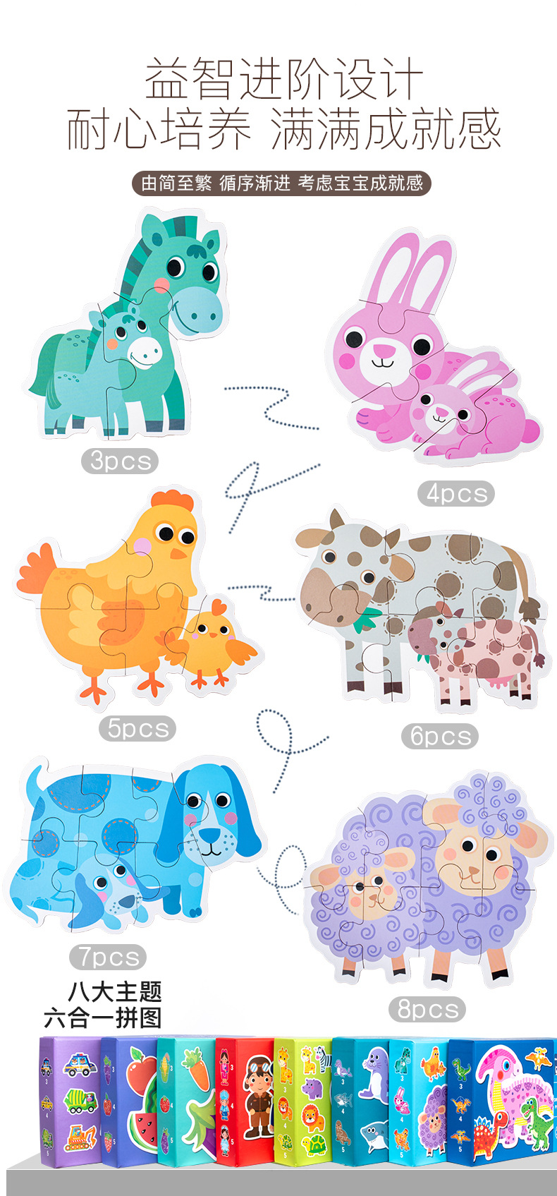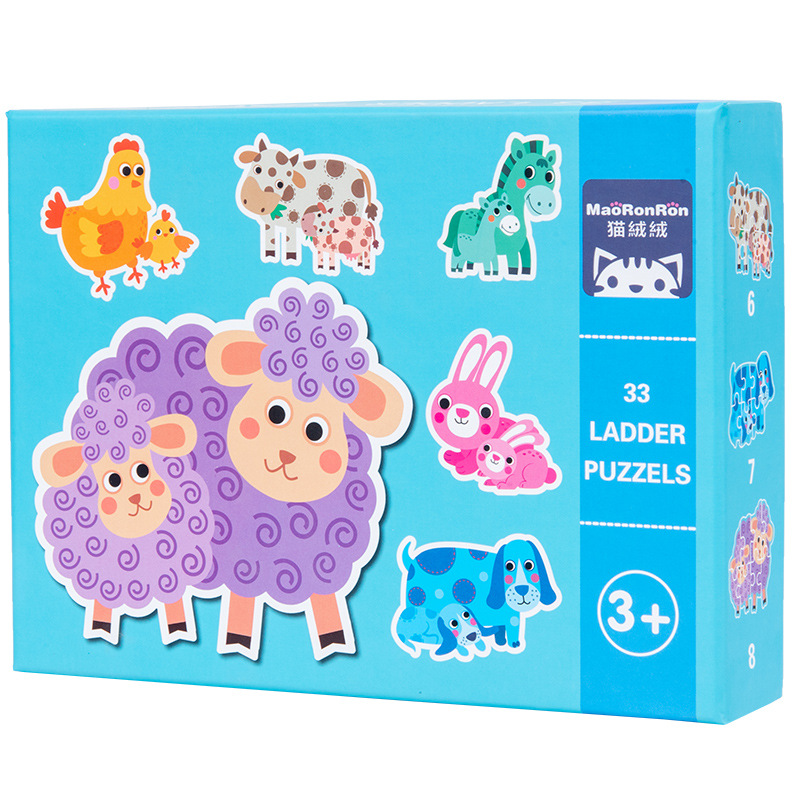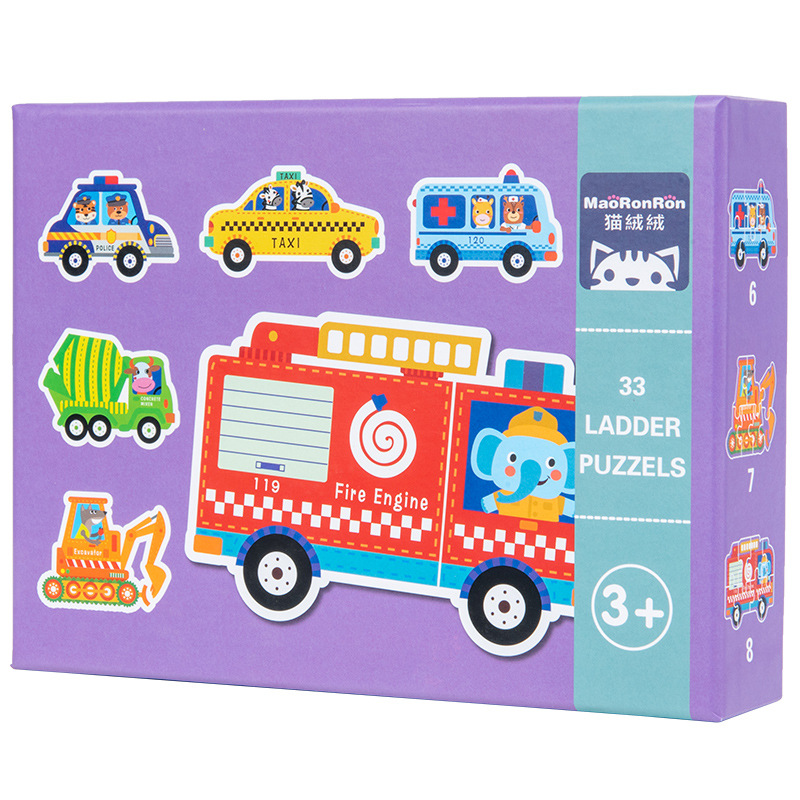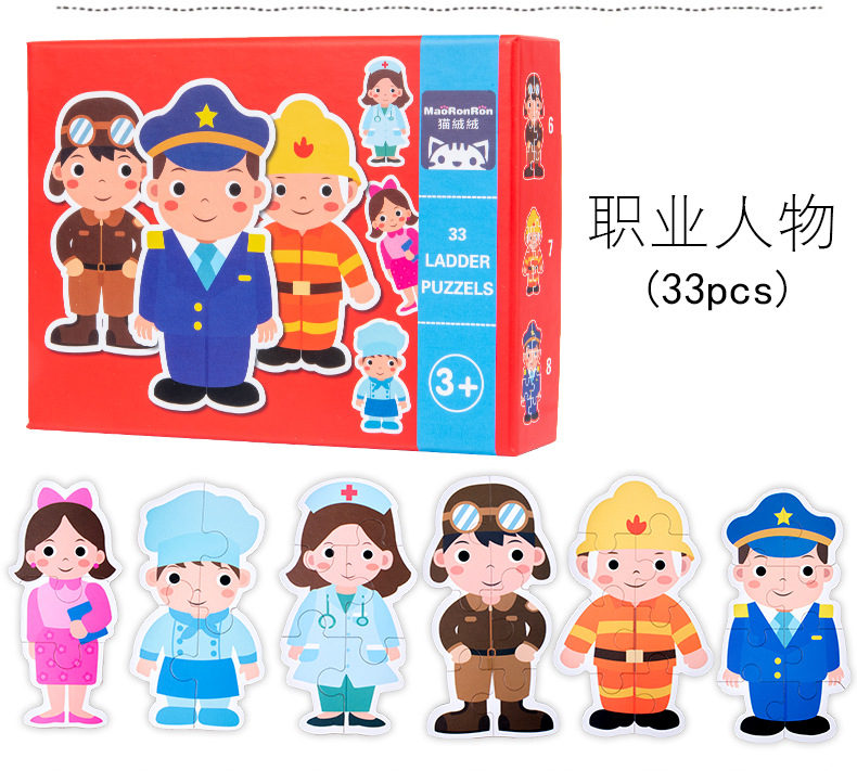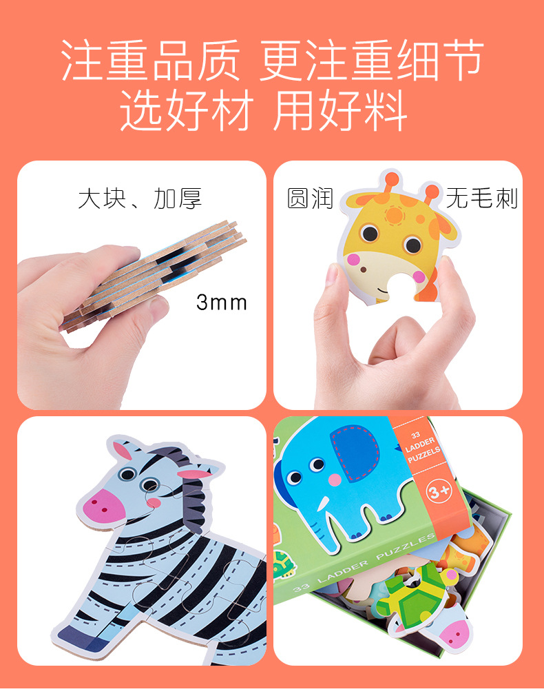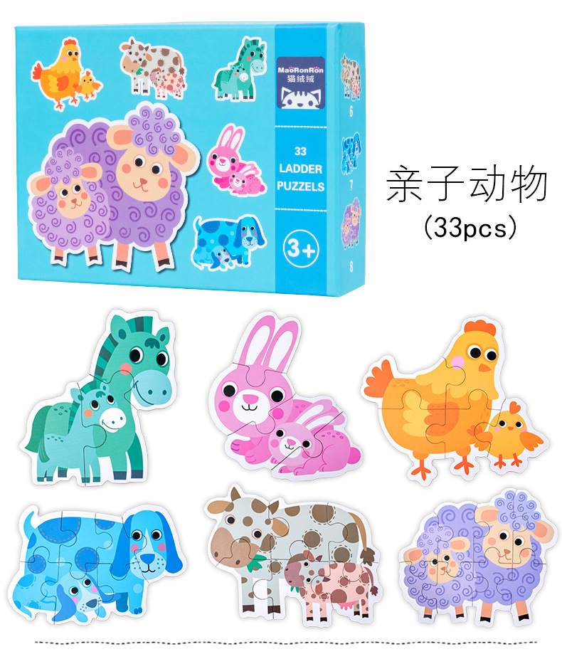 跨境创意3岁儿童早教异形盒装33片动物恐龙交通插画纸质拼图玩具