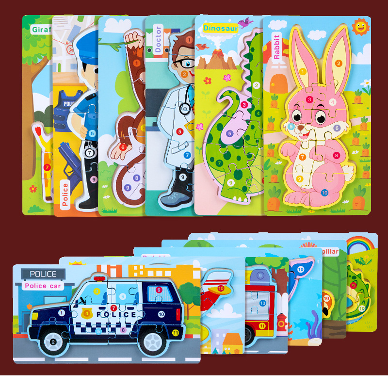 木制3d立体人物动物交通早教认知拼图玩具益智儿童拼装积木玩具