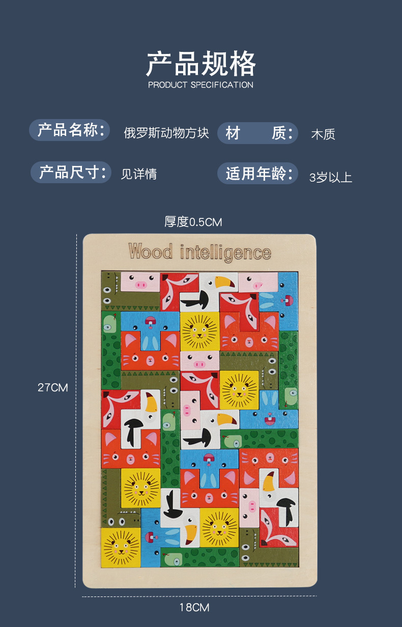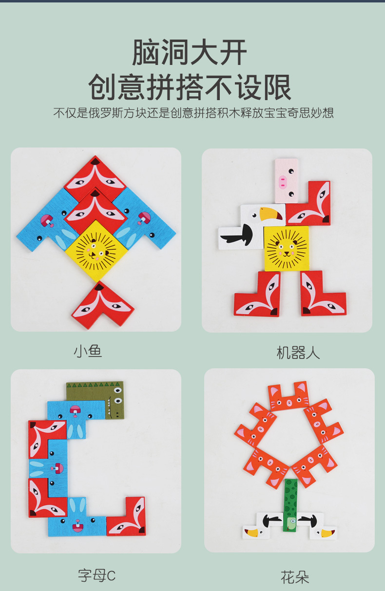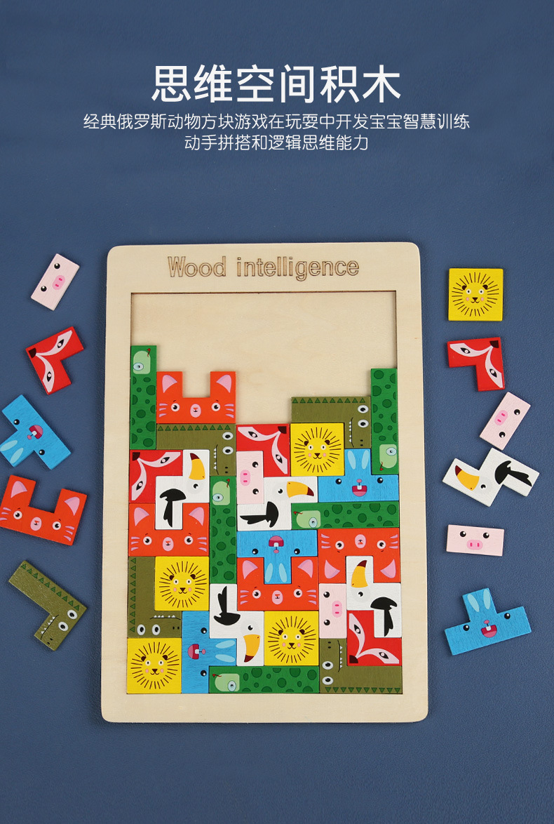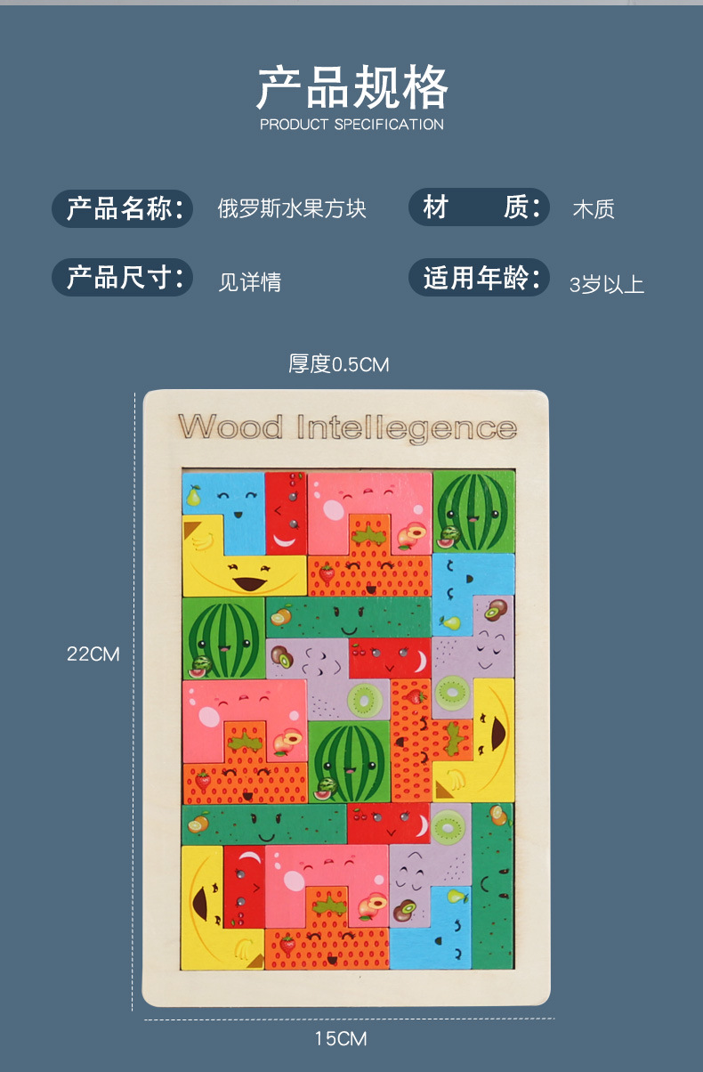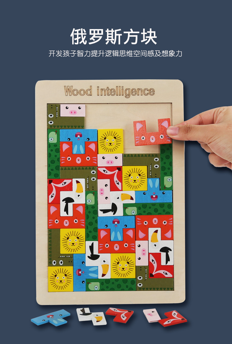 儿童益智俄罗斯方块 早教木制玩具 宝宝几何拼图拼板积木趣味玩具
