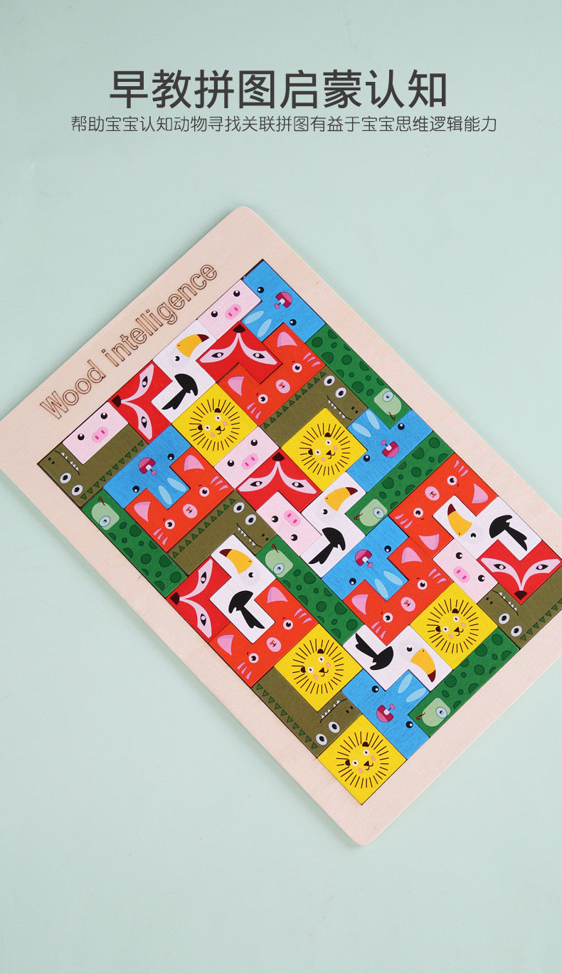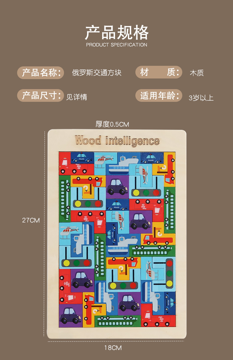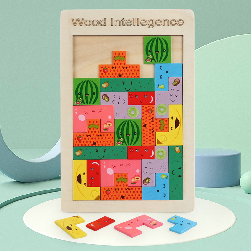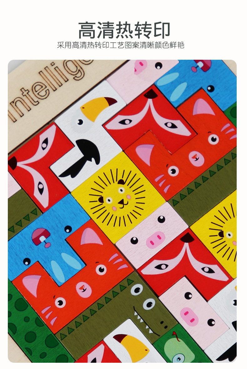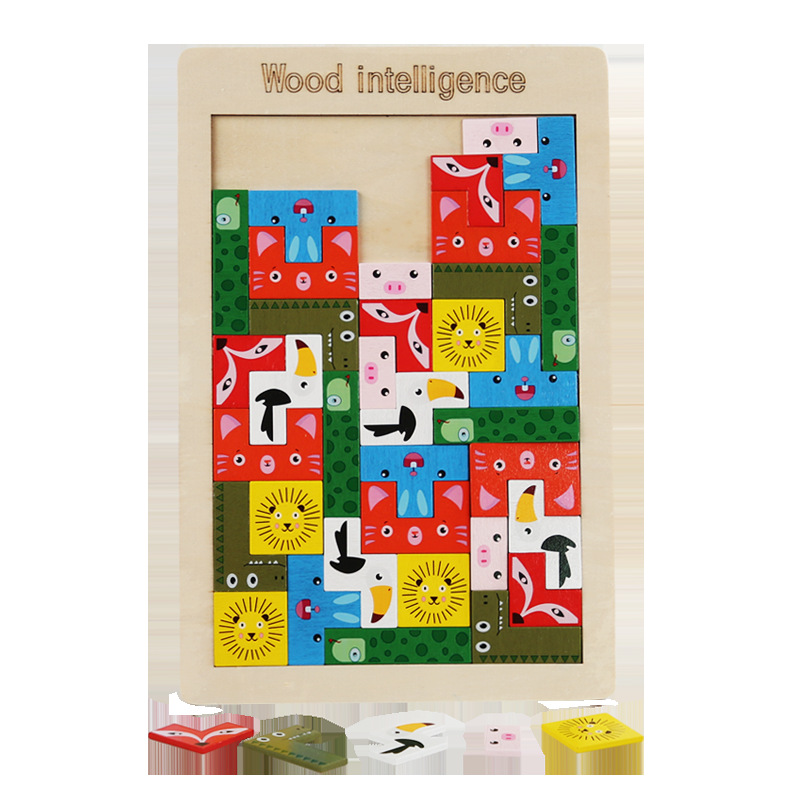 儿童益智俄罗斯方块 早教木制玩具 宝宝几何拼图拼板积木趣味玩具