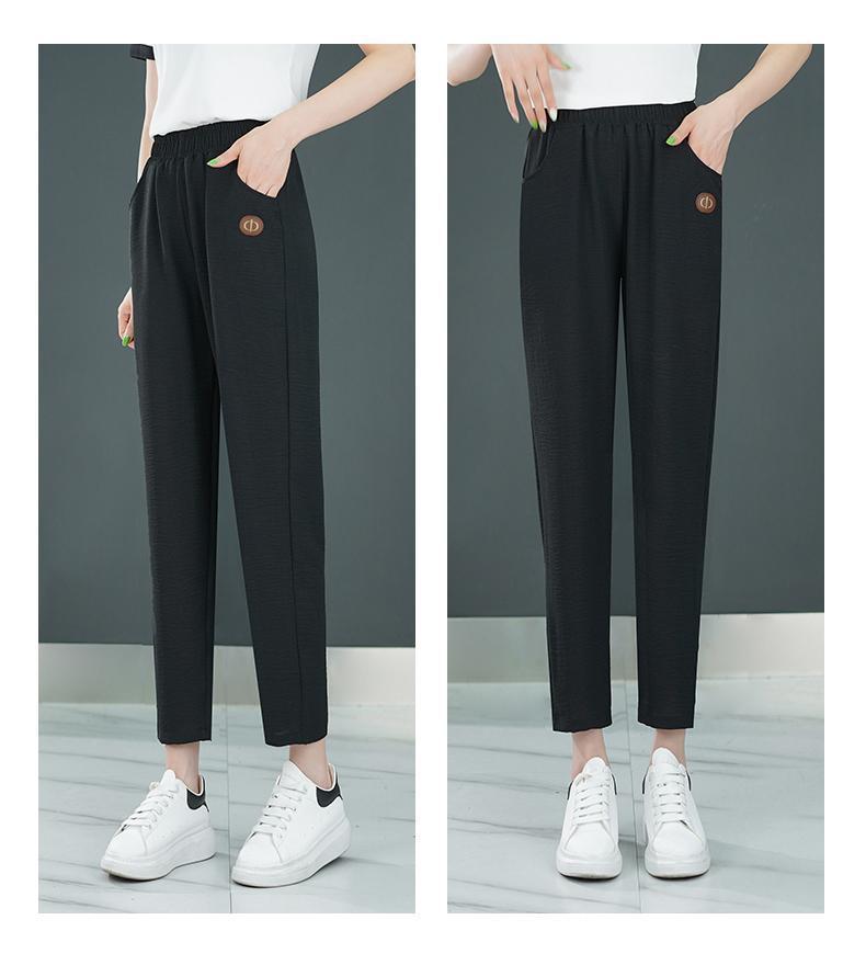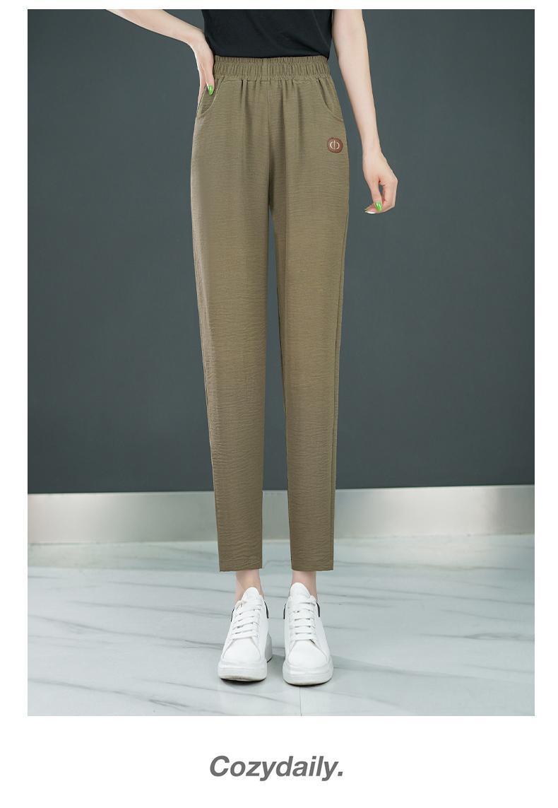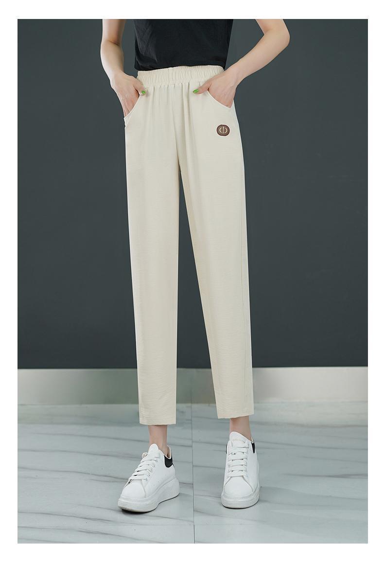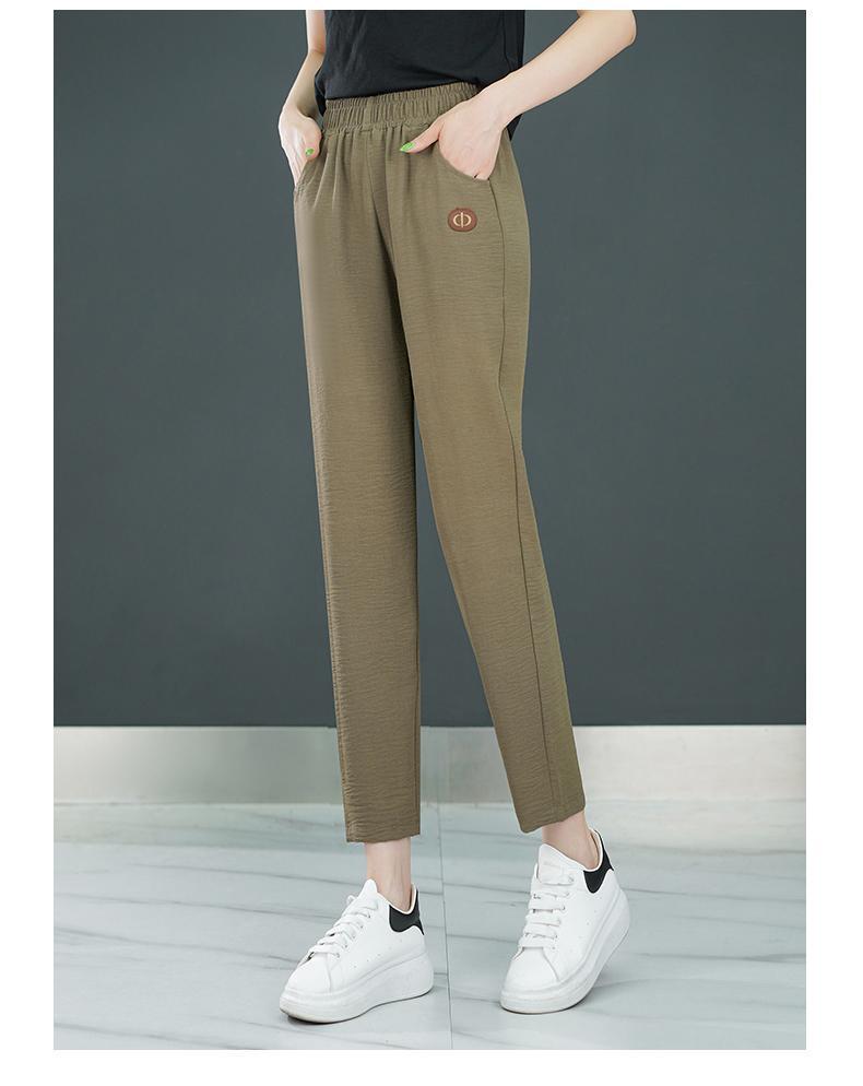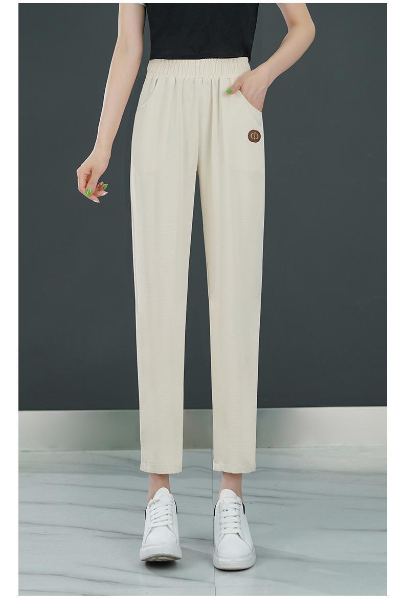 新款爆款冰丝皱小脚裤夏季高腰休闲裤女显瘦百搭直筒裤薄款九分裤