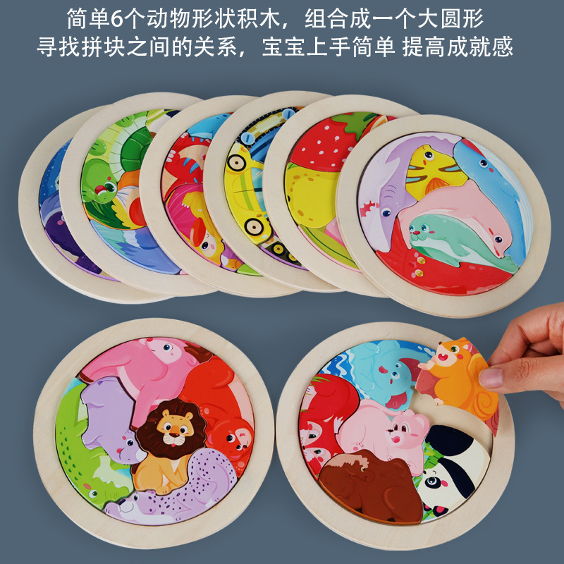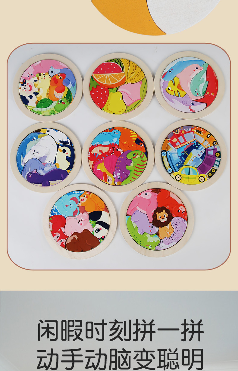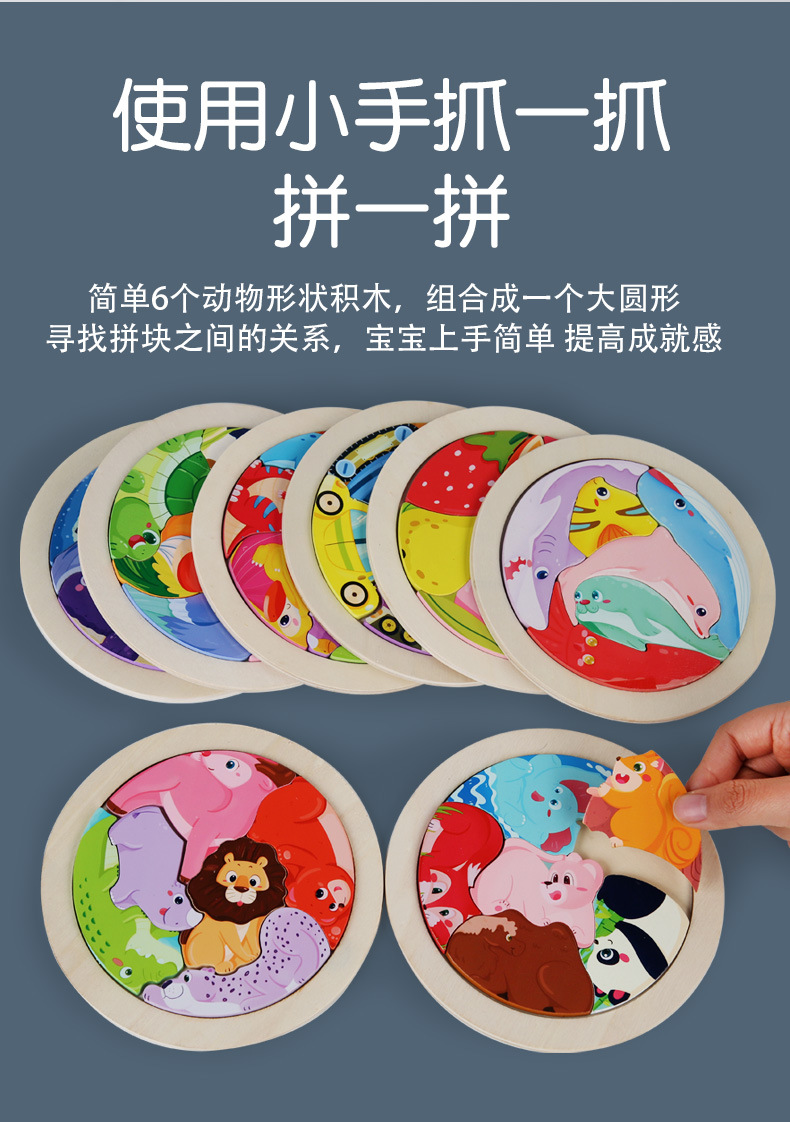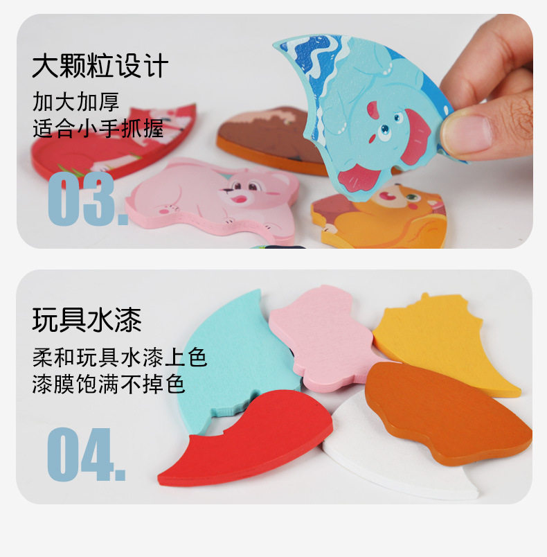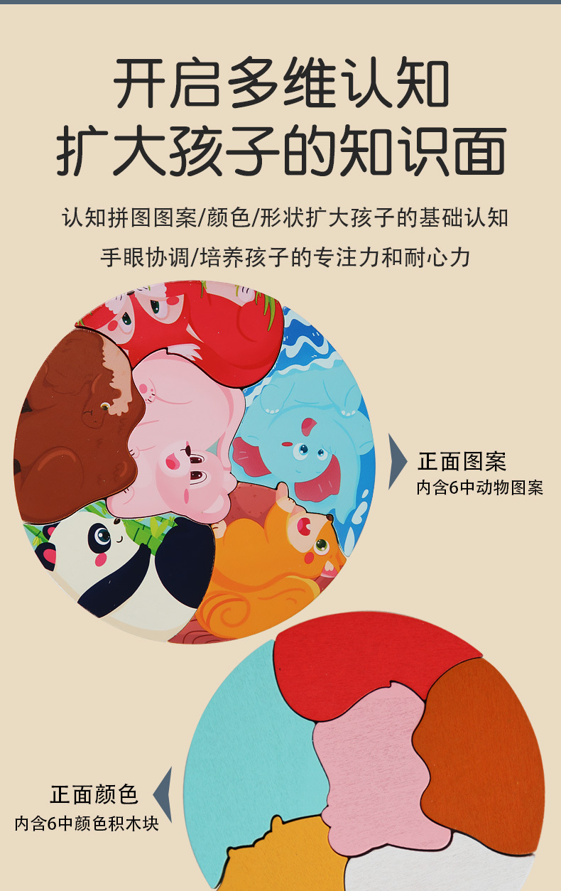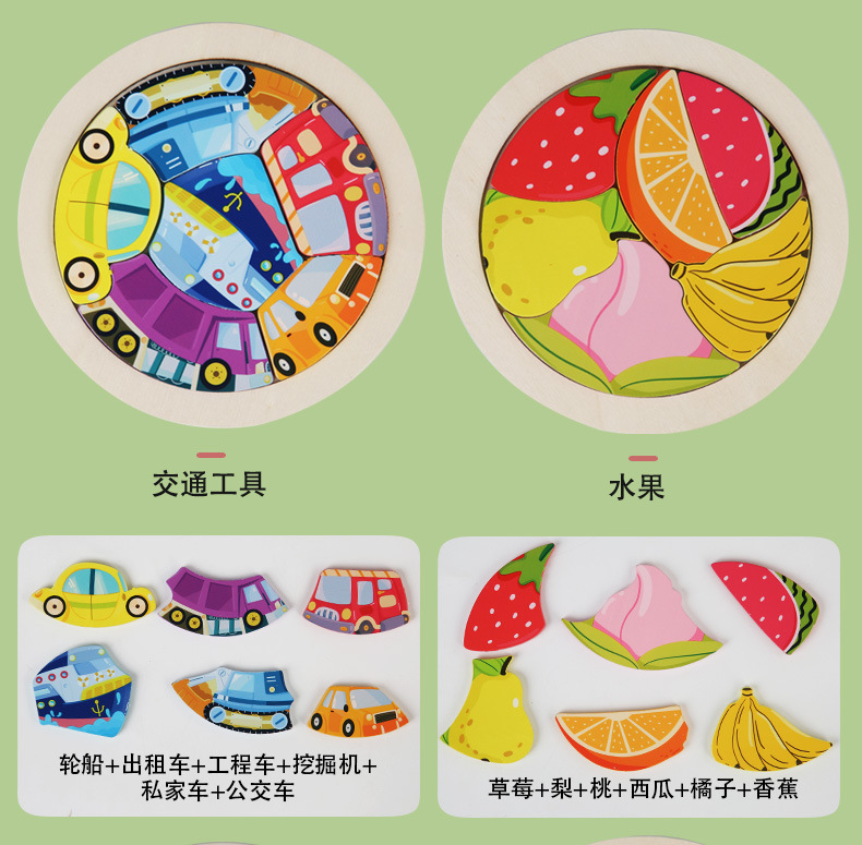 木制儿童动物水果创意立体拼图积木益智早教俄罗斯方块积木玩具