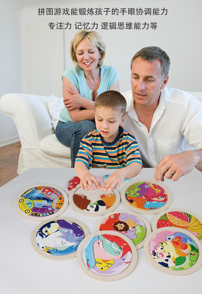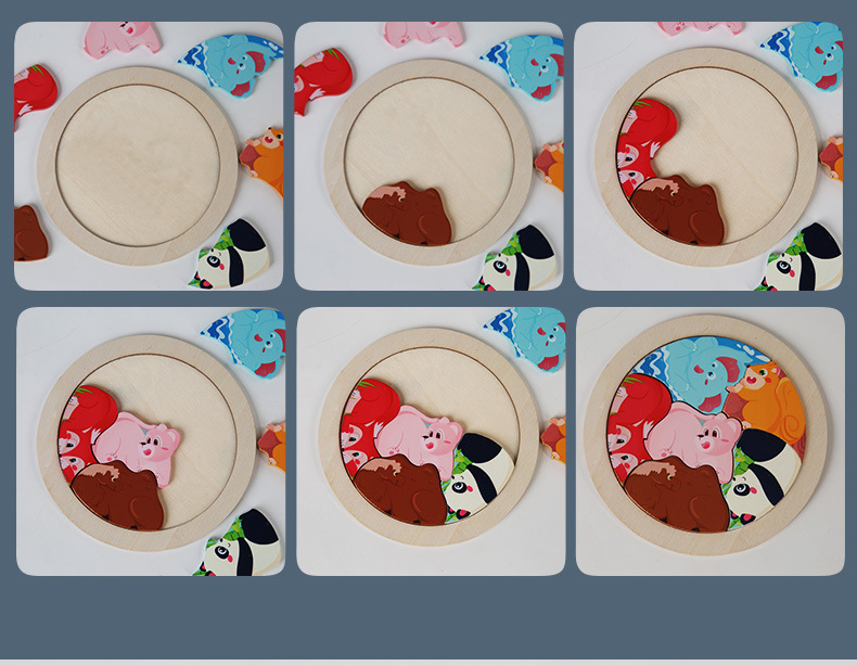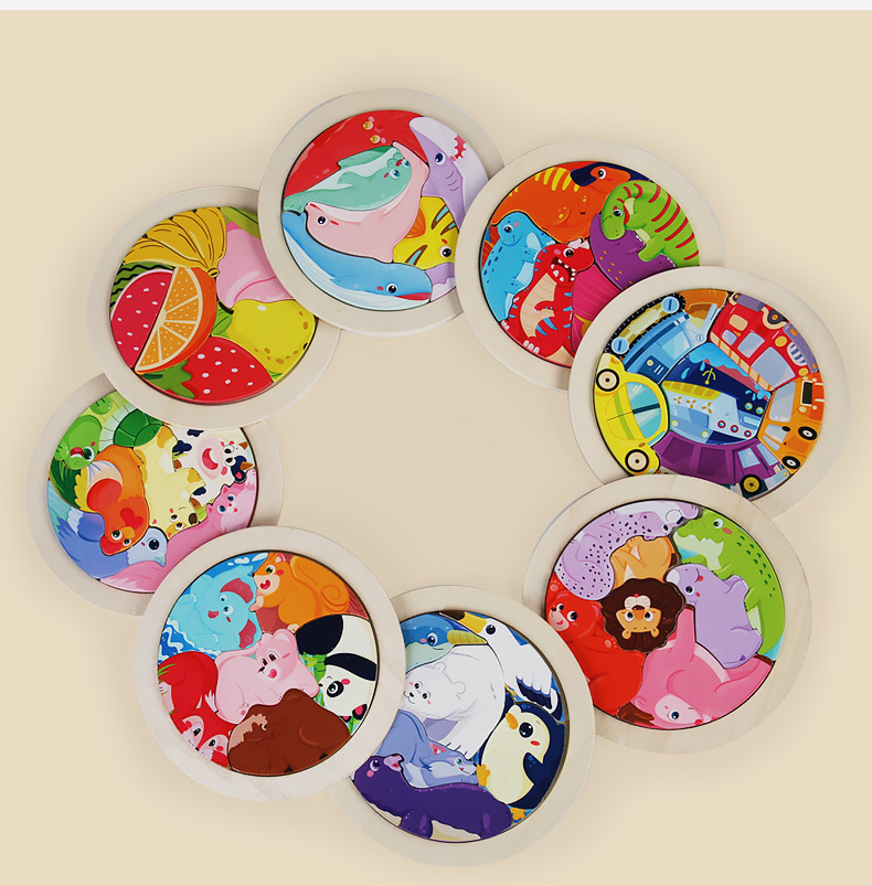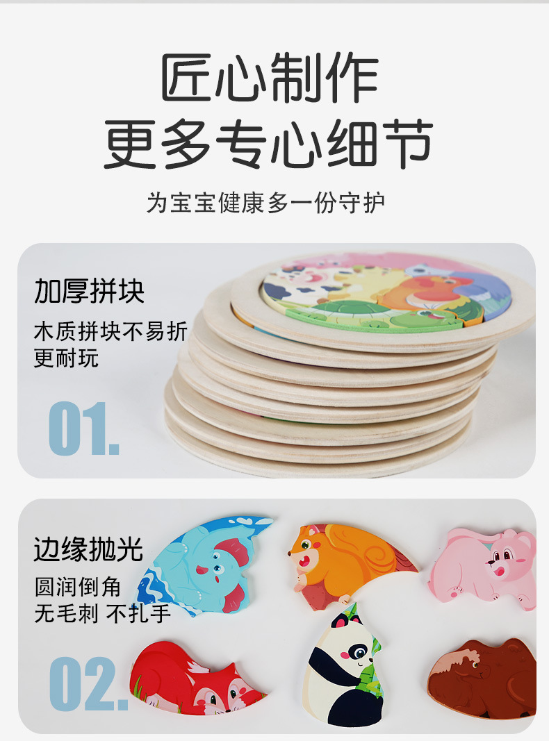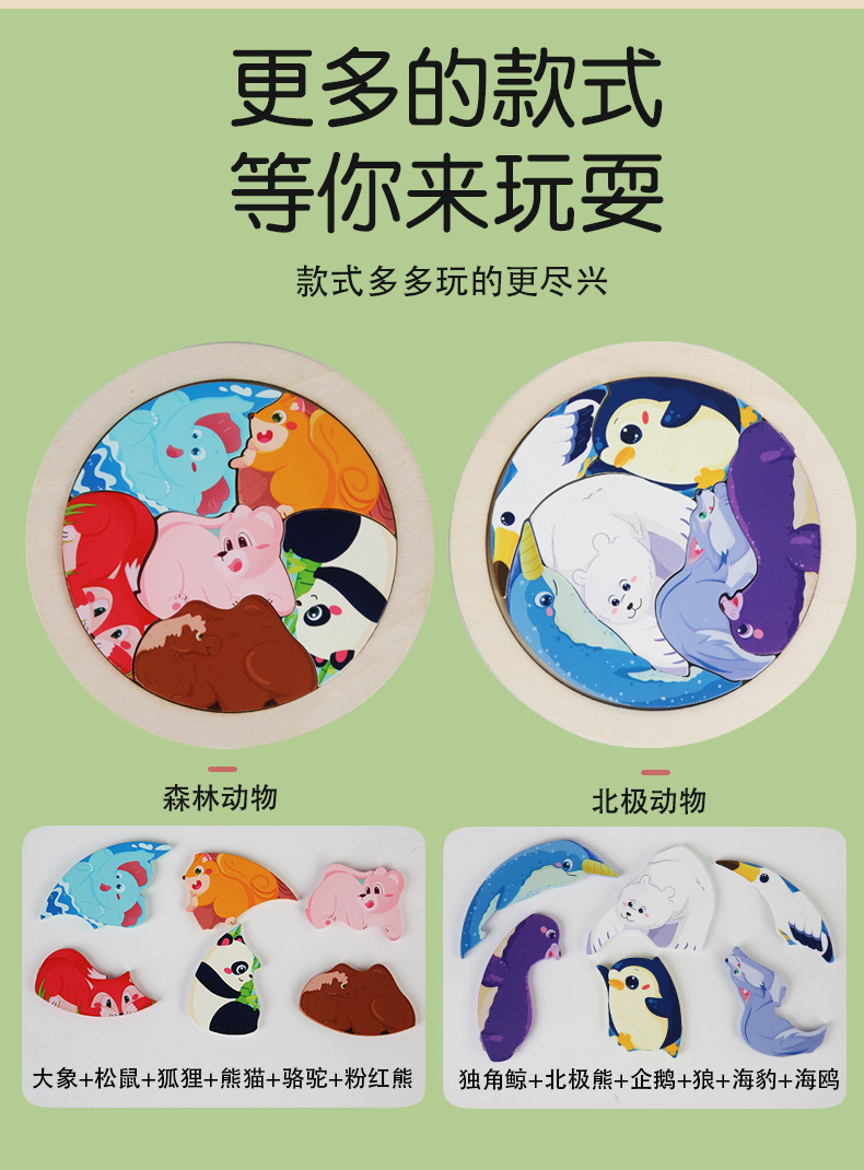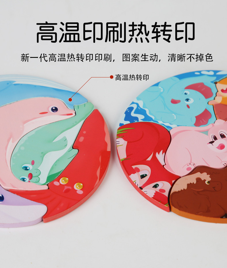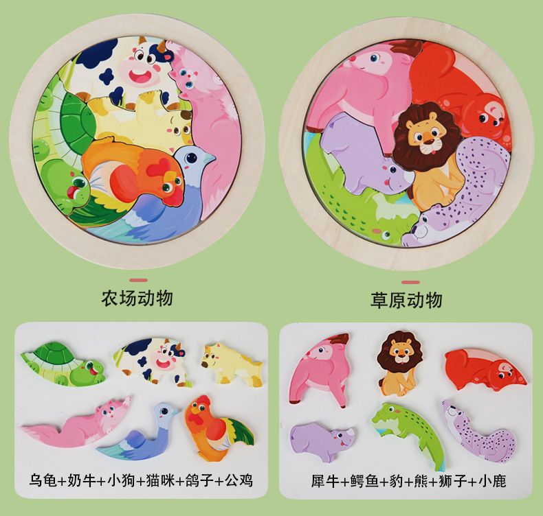 木制儿童动物水果创意立体拼图积木益智早教俄罗斯方块积木玩具