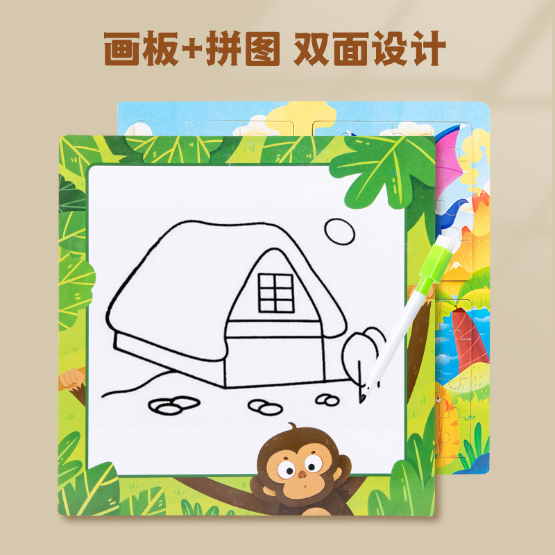 跨境木制儿童拼图画板二合一玩具进阶大尺寸积木益智玩具厂家直销