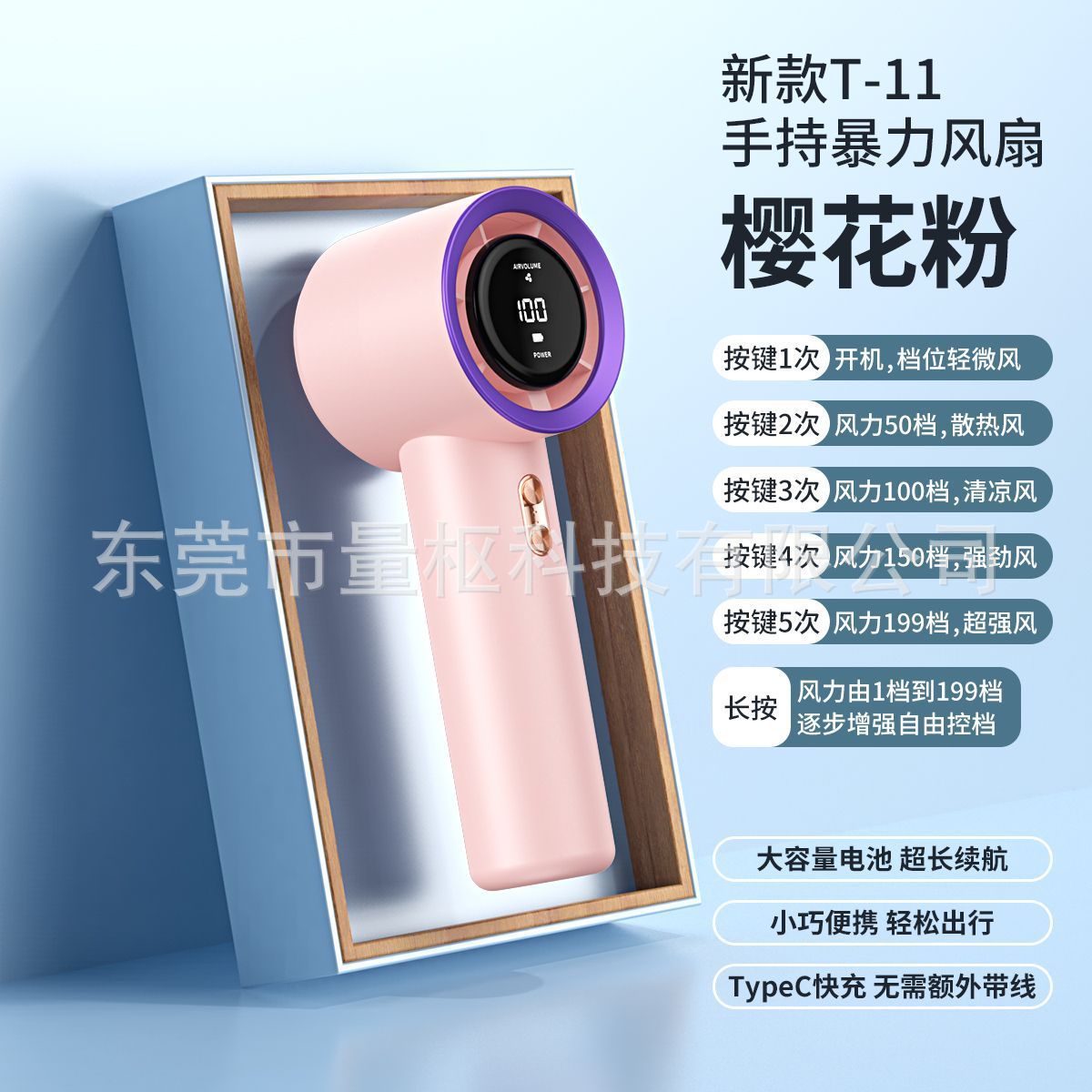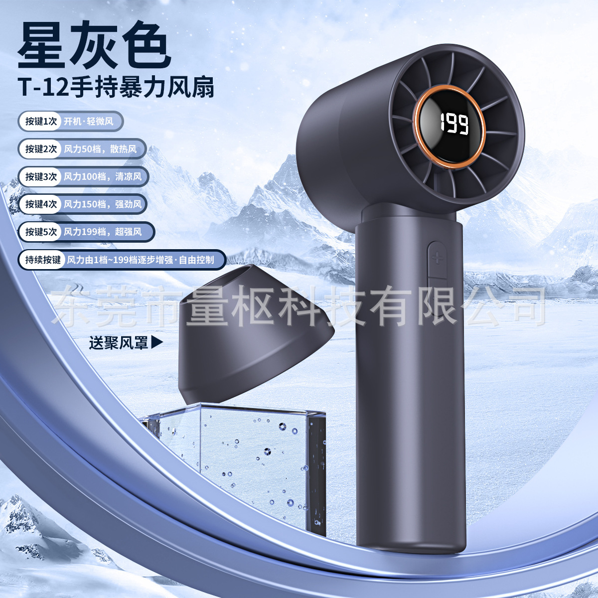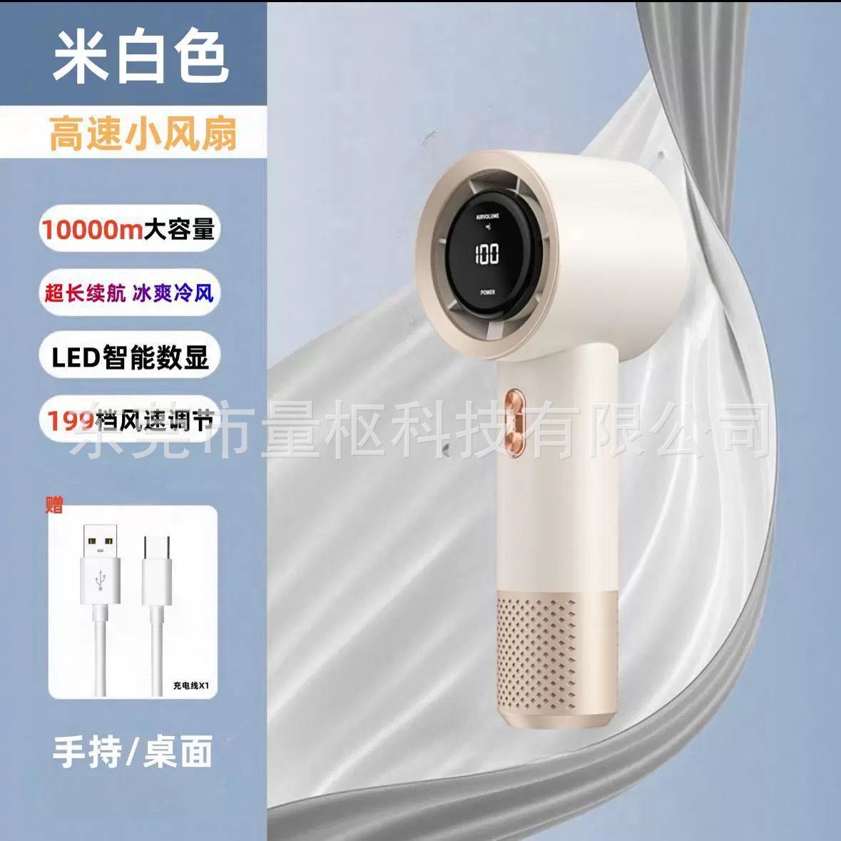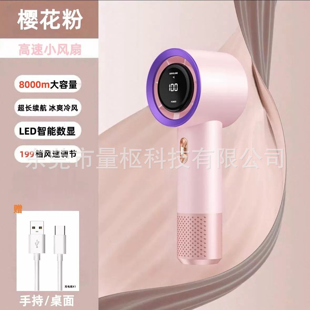 新款199档跨境高速暴力手持usb充电迷你便携风扇数显涡轮小风扇