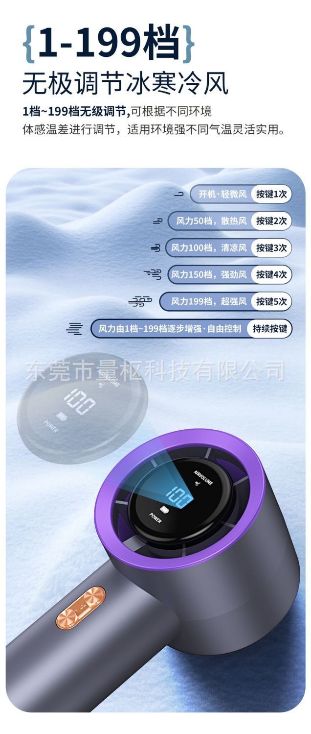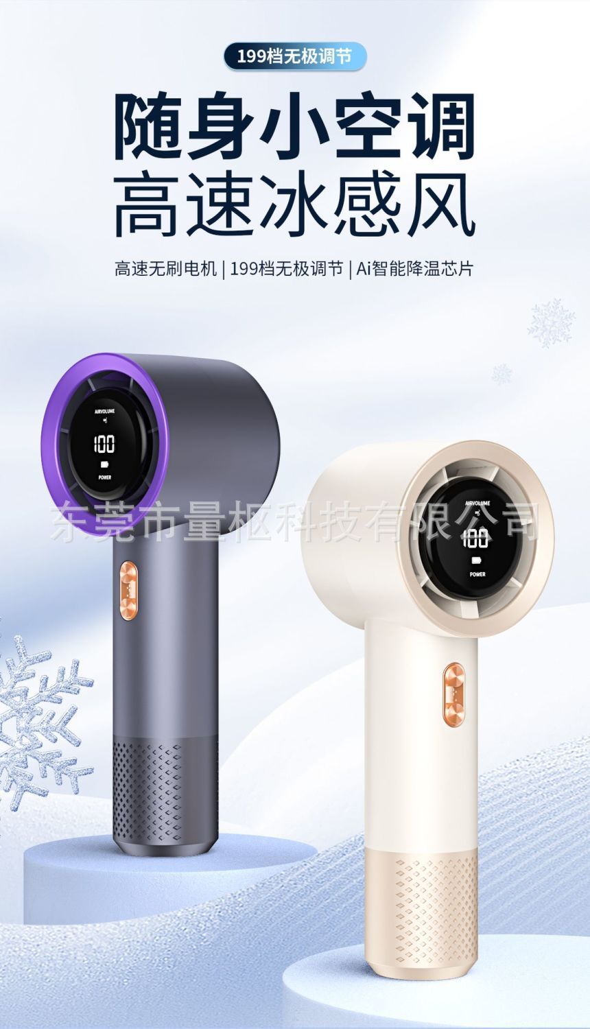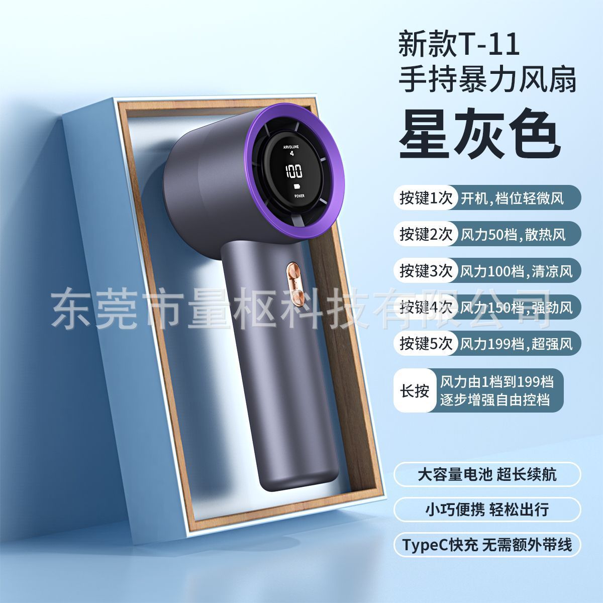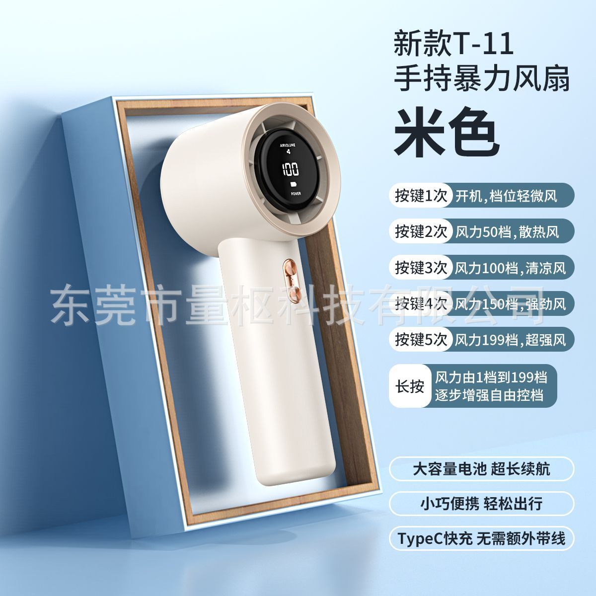 新款199档跨境高速暴力手持usb充电迷你便携风扇数显涡轮小风扇