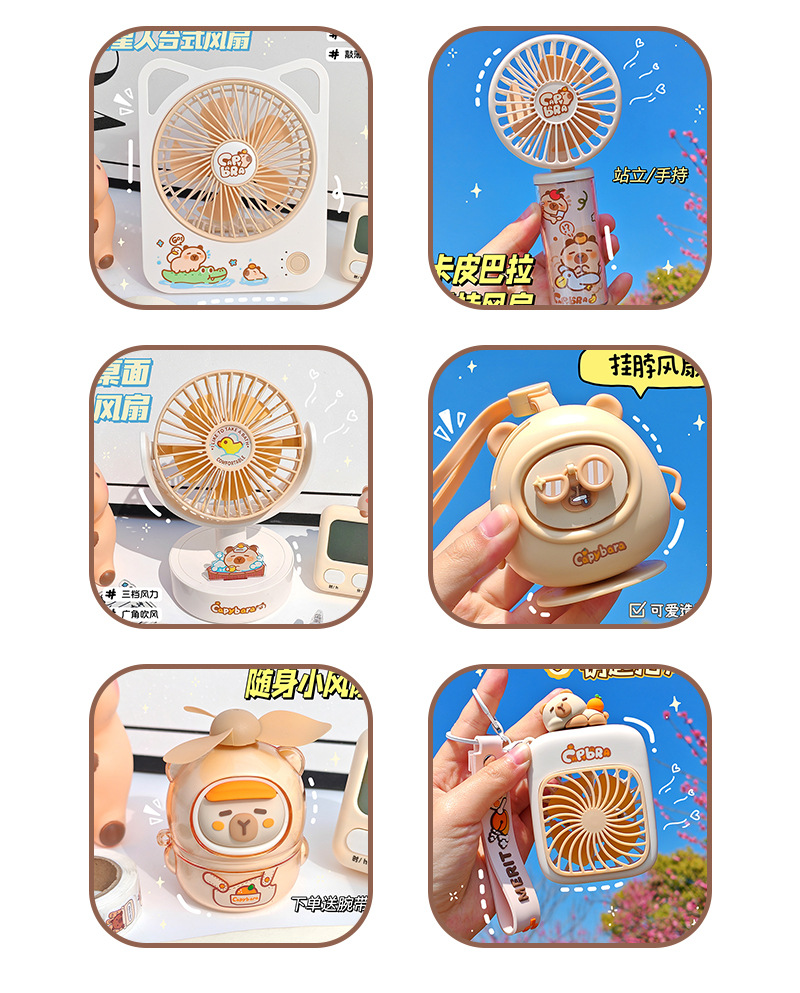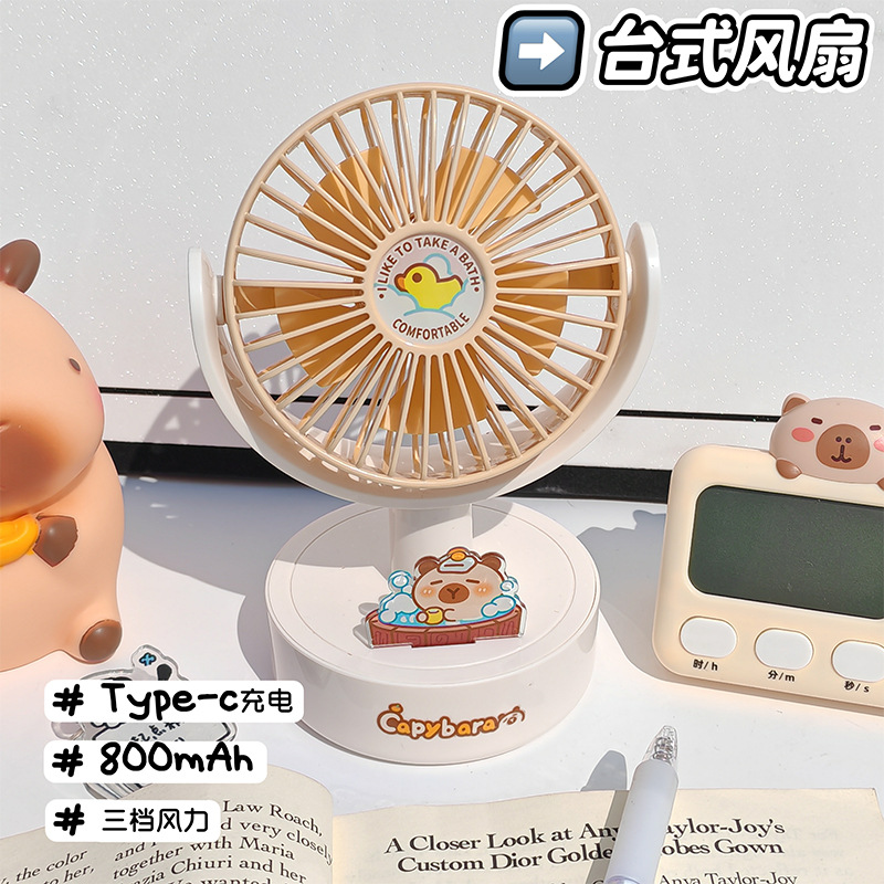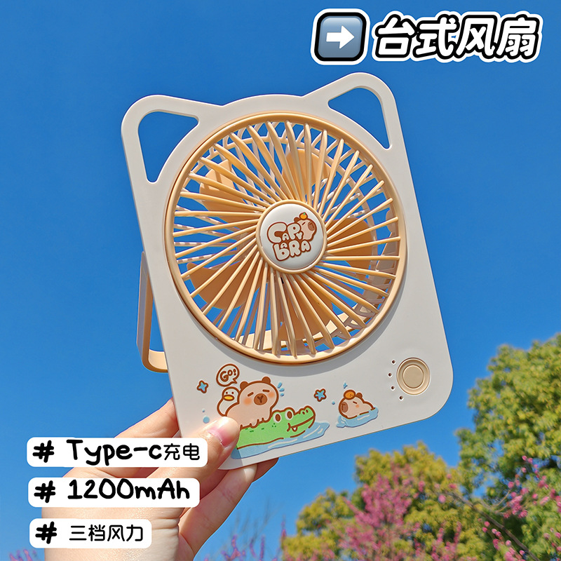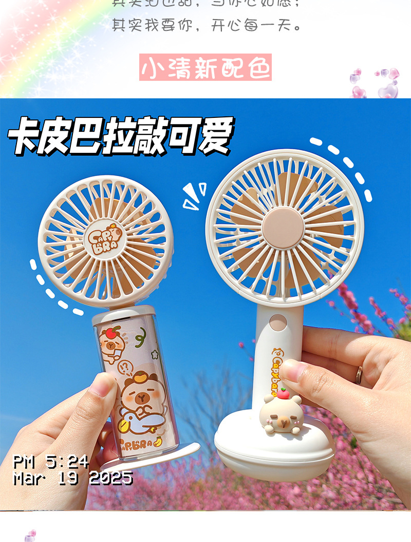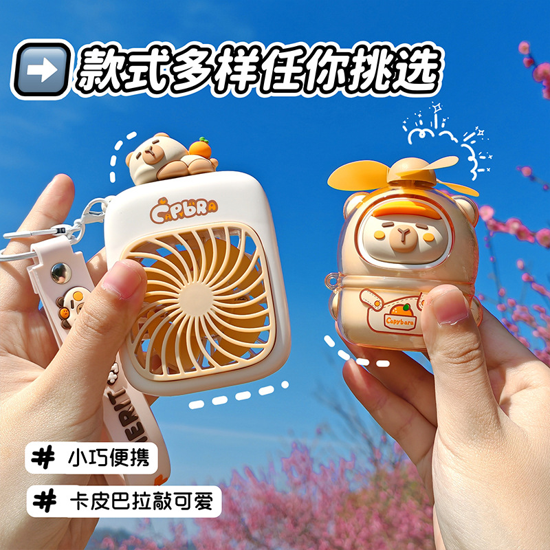 卡皮巴拉手持小风扇便携随身夏天迷你桌面台式电风扇学生静音风扇