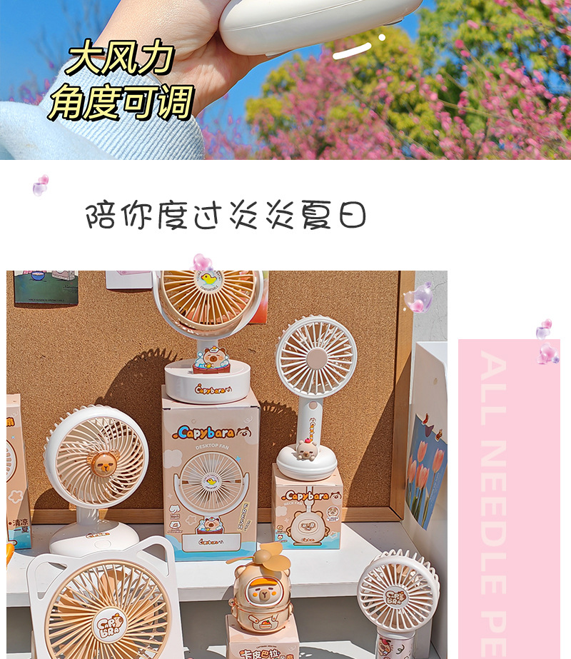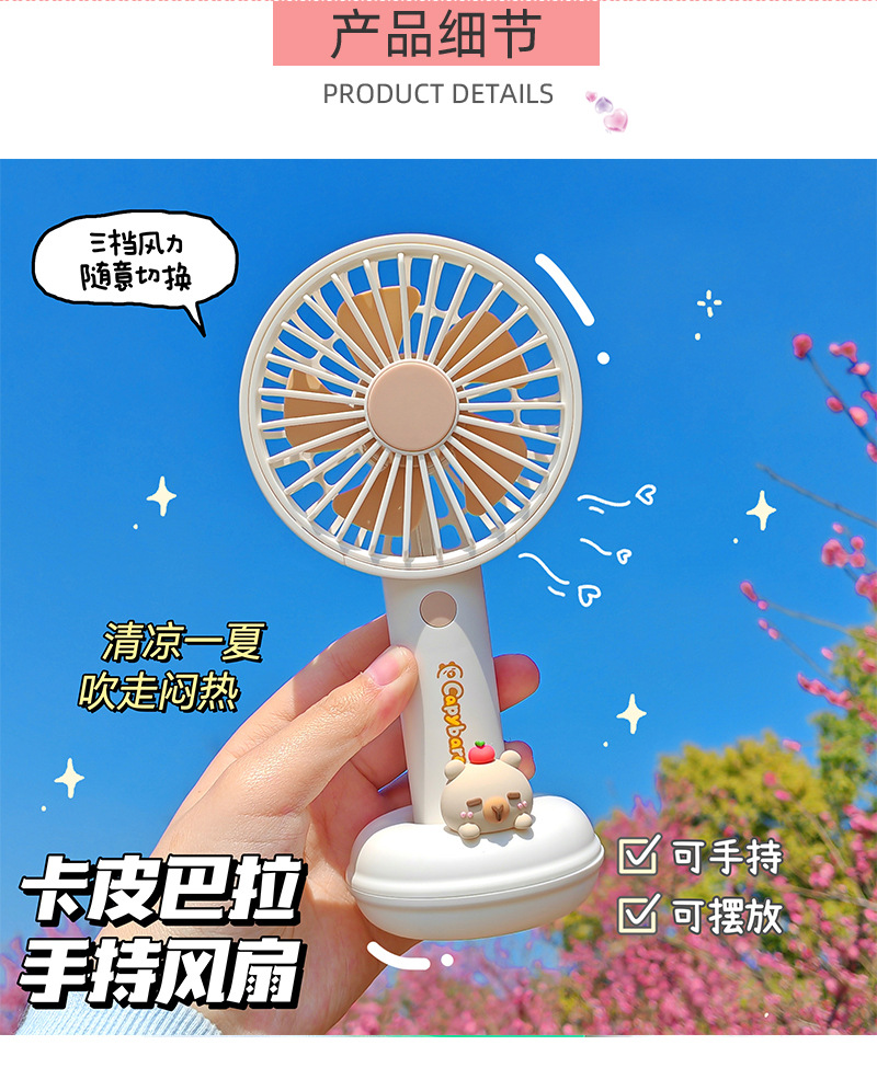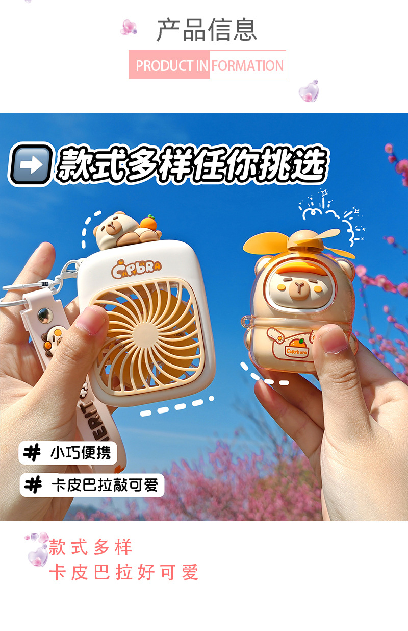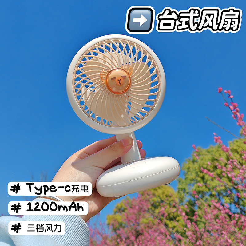 卡皮巴拉手持小风扇便携随身夏天迷你桌面台式电风扇学生静音风扇