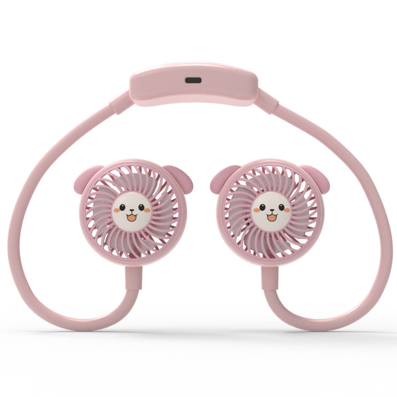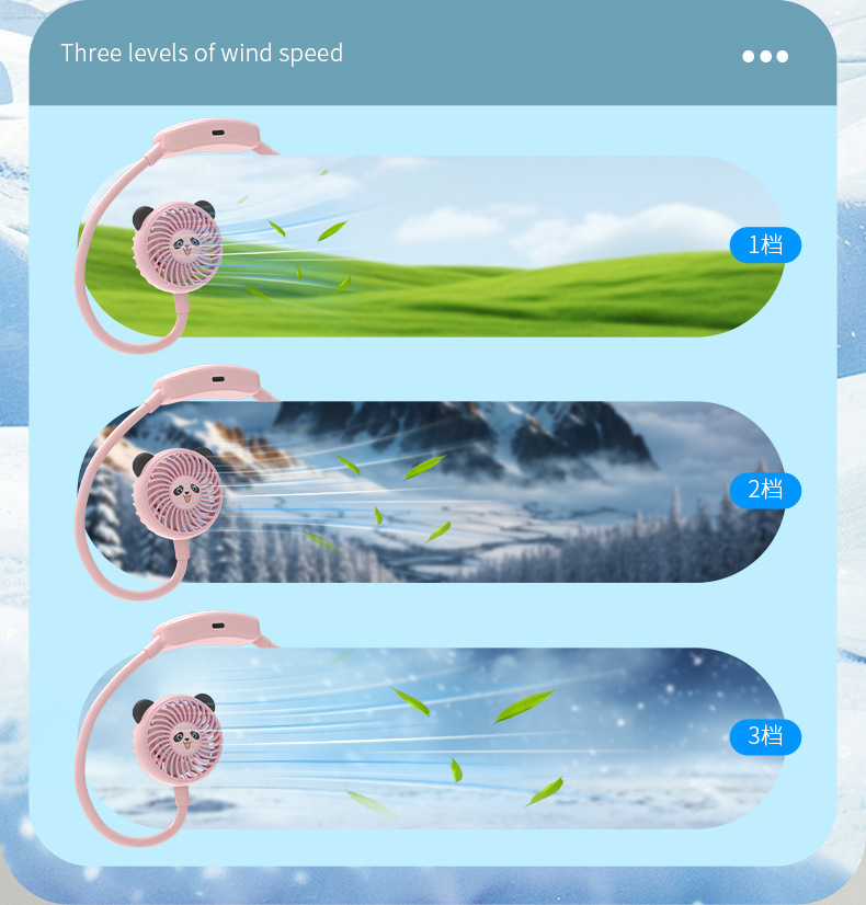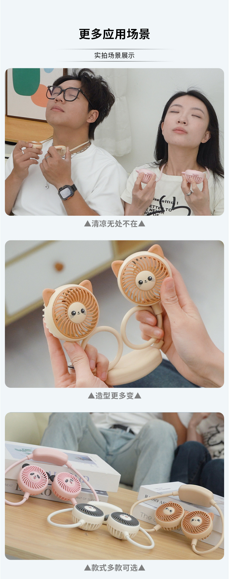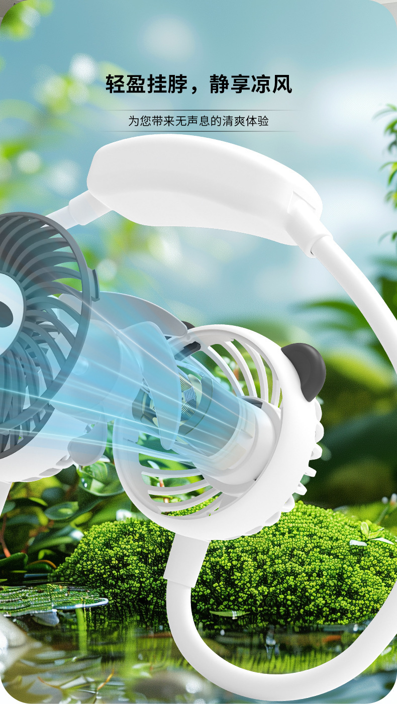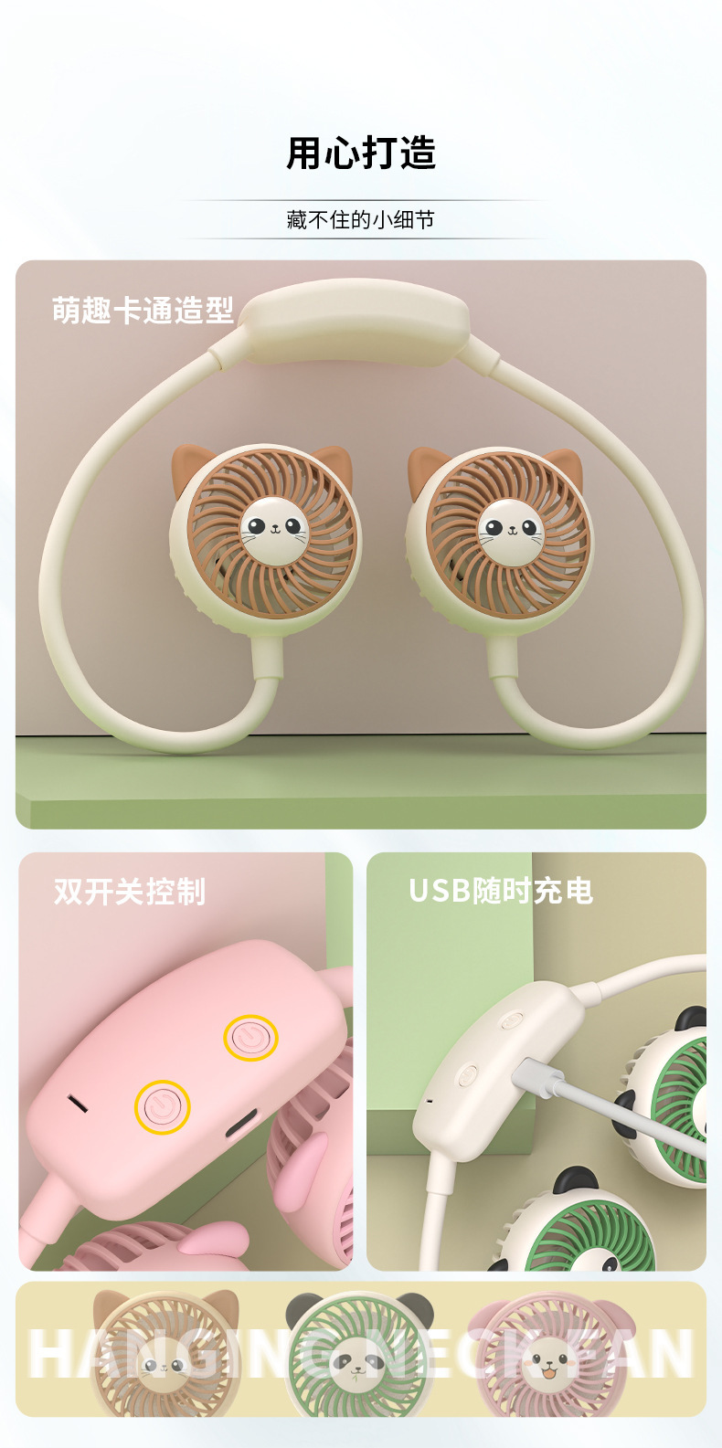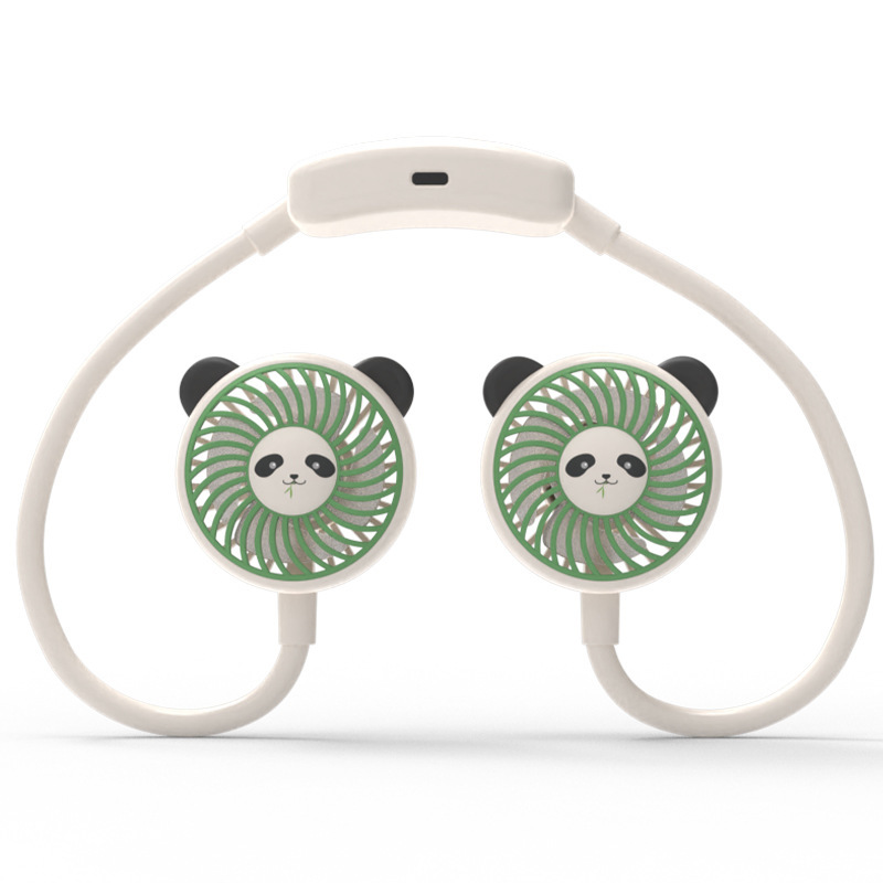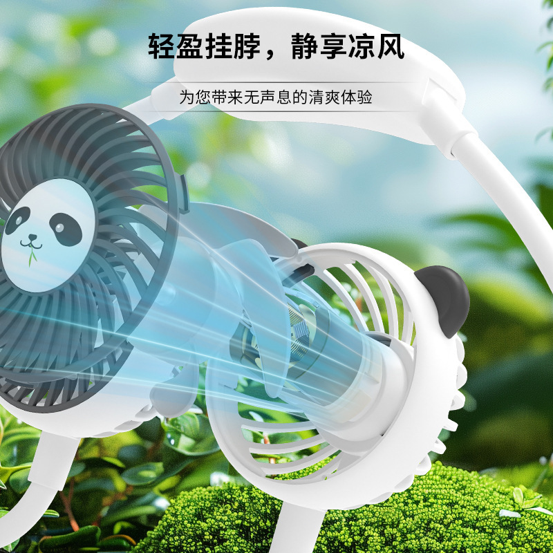 卡通可爱熊猫挂脖小风扇便携式跨境懒人户外 USB迷你充电风扇批发