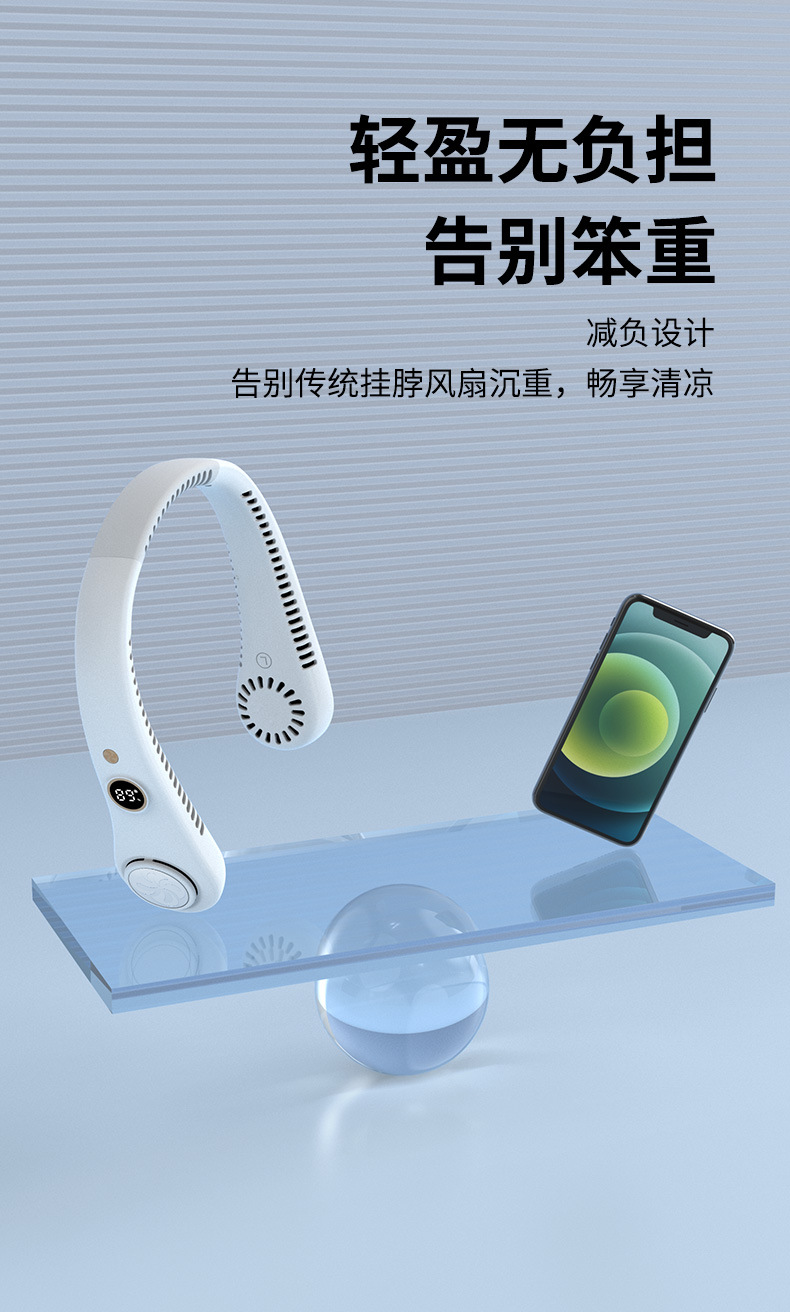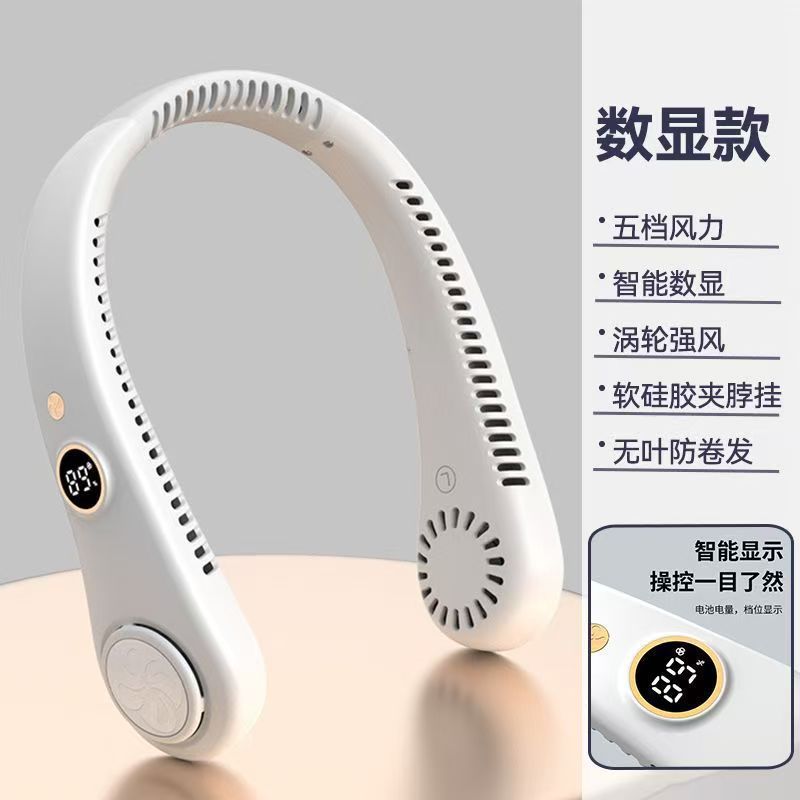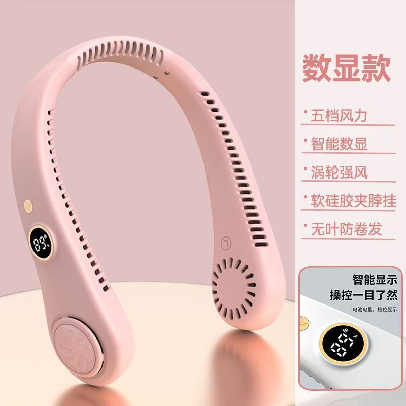 新款数显无叶挂脖风扇充电携便式迷你小风扇运动挂脖风扇包邮代发
