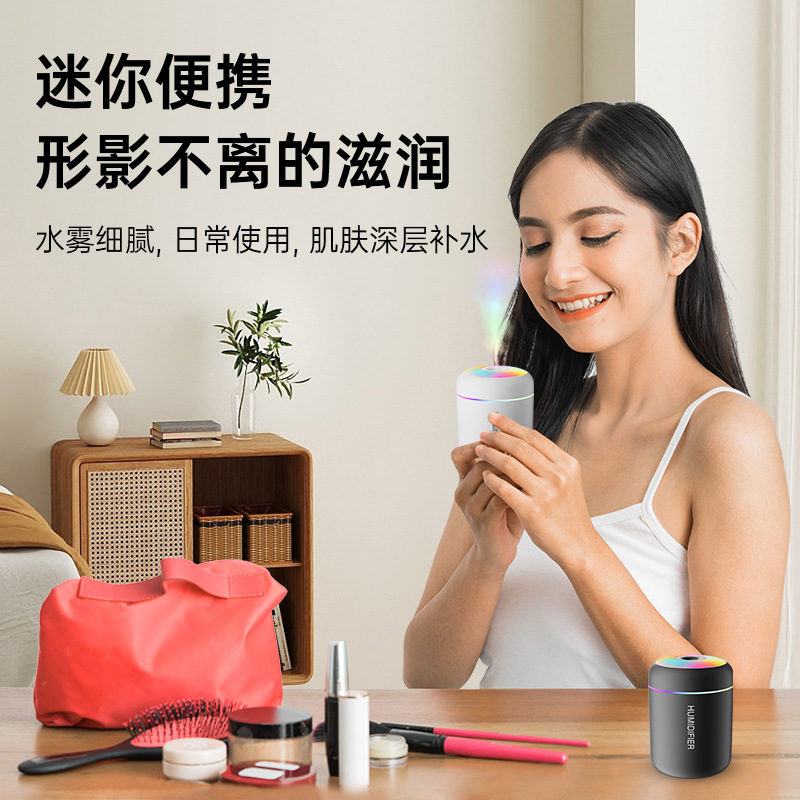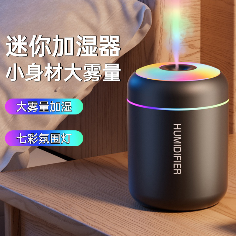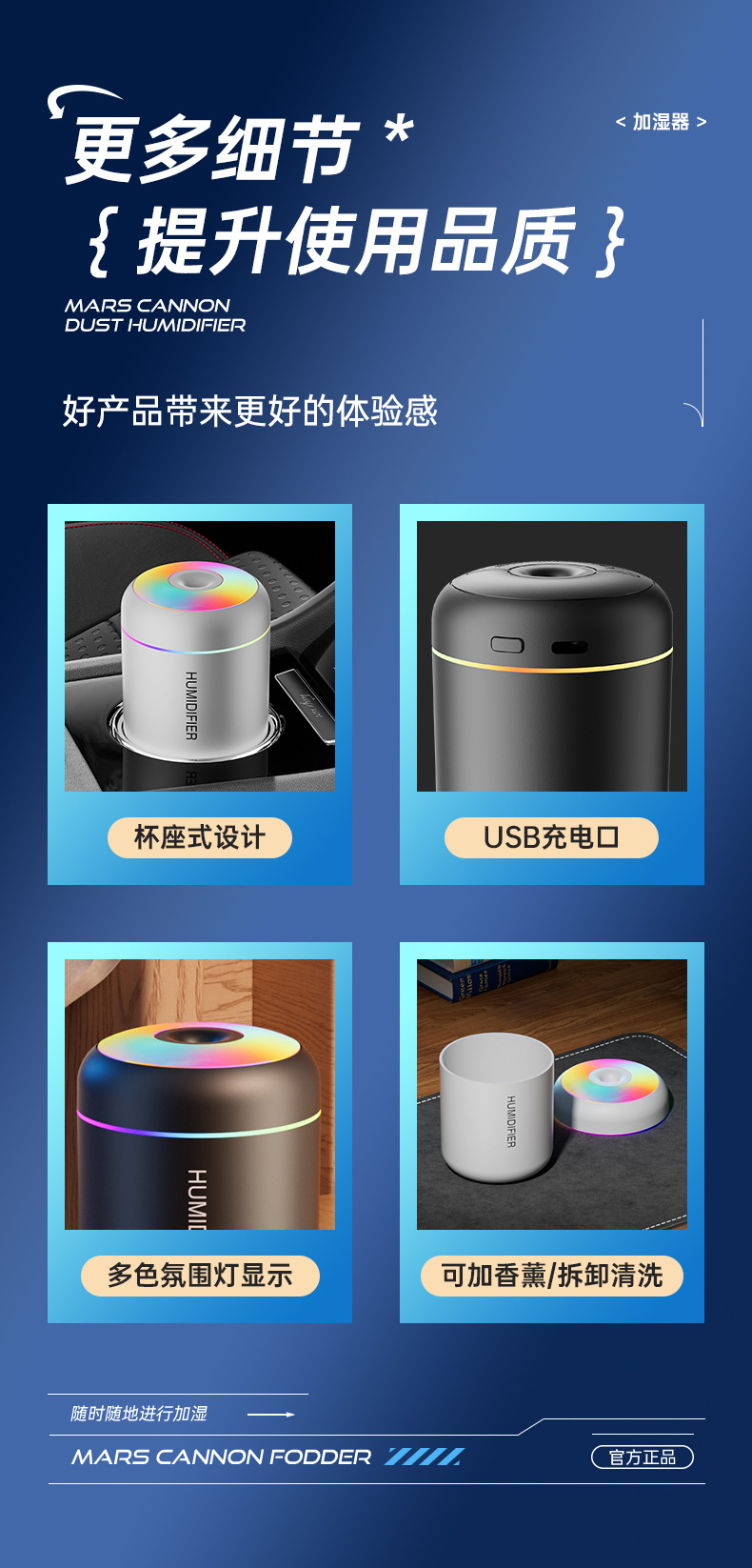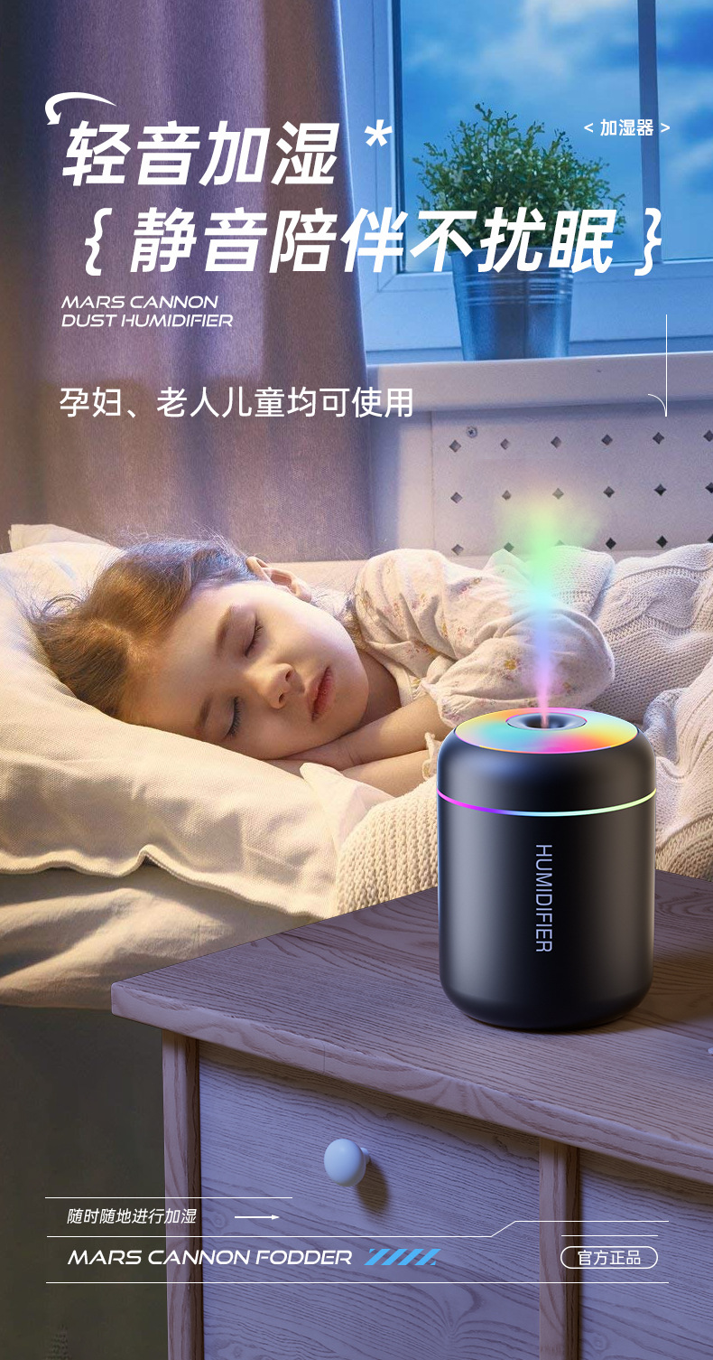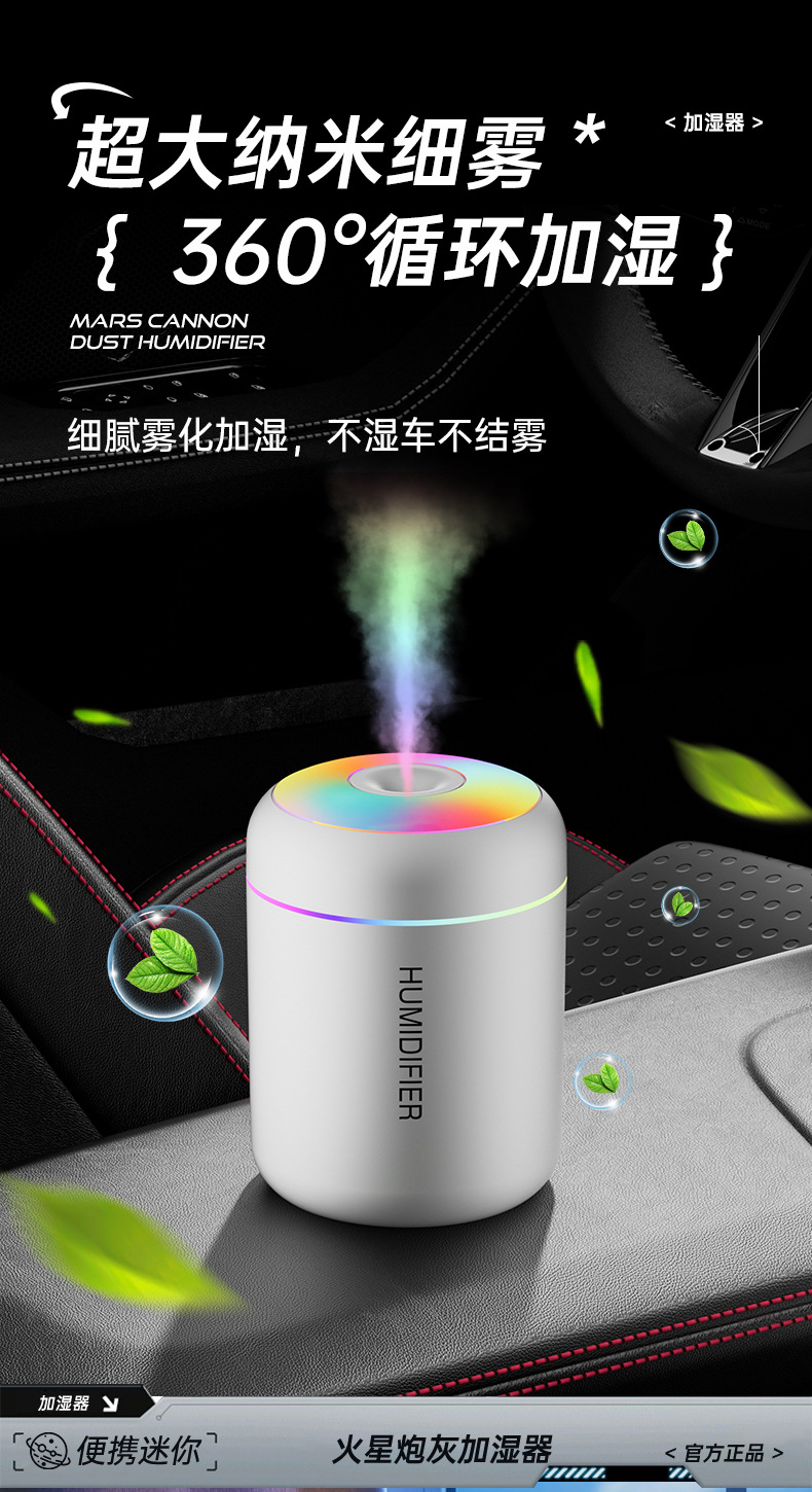 火星炮灰PRO迷你USB加湿器大雾量七彩氛围灯静音桌面车载办公室