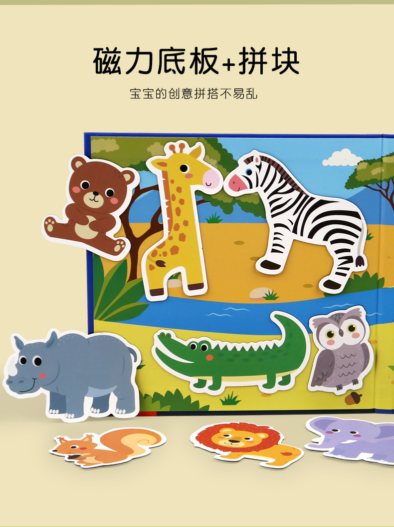 纸质儿童场景磁性益智拼图3到6岁拼图玩具2宝宝4智力3d立体早教书