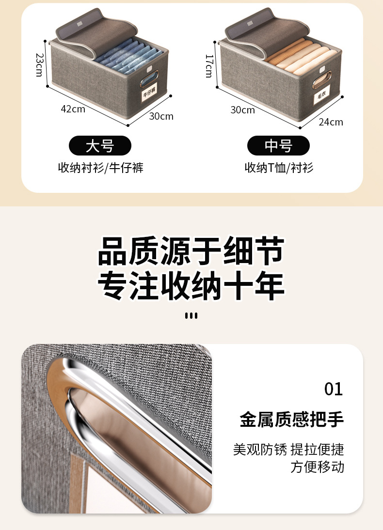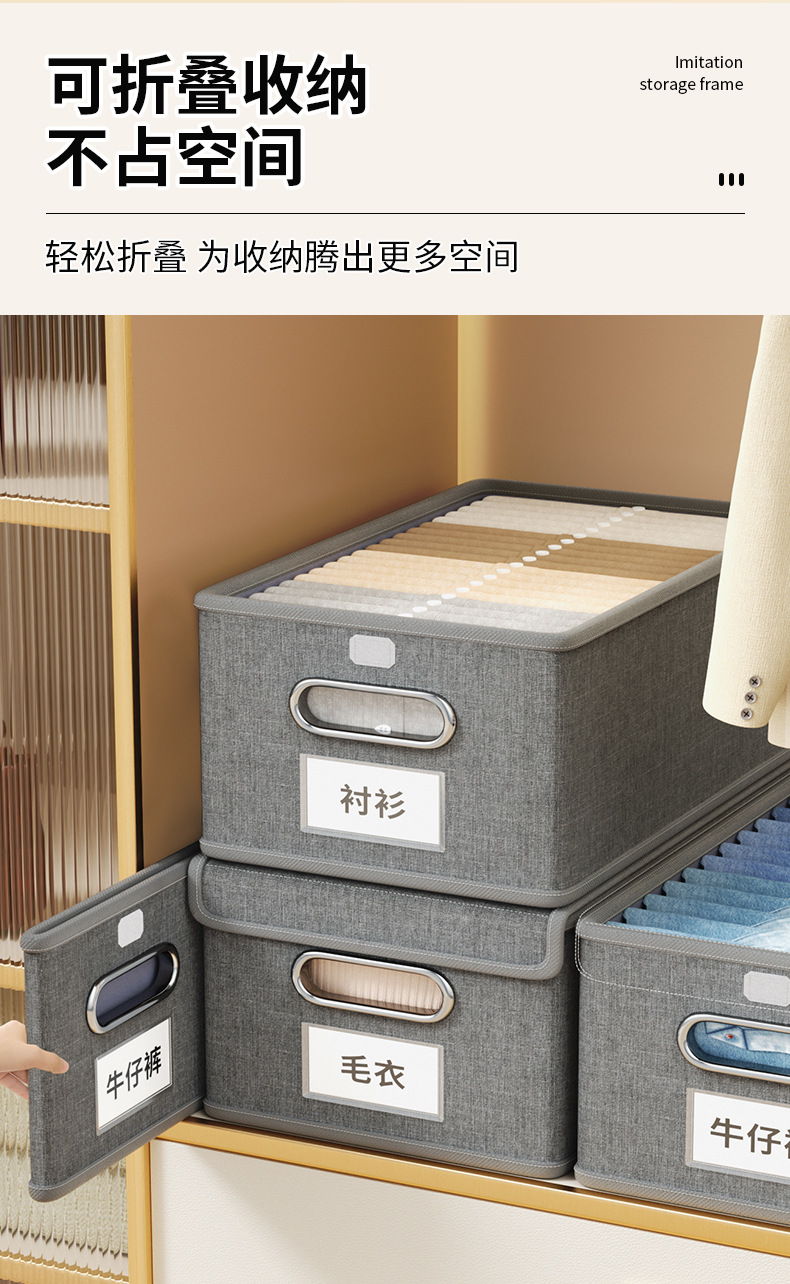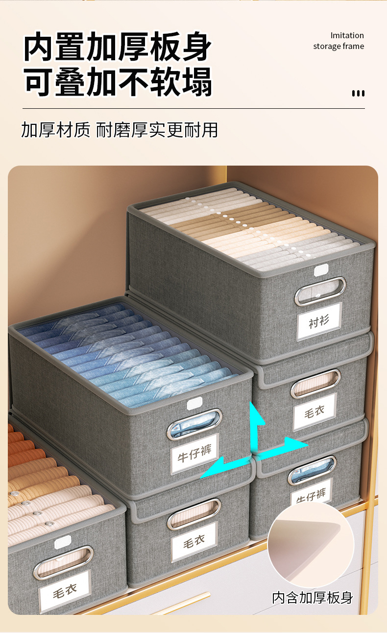 衣服收纳箱家用装衣物裤子折叠整理筐衣柜分层储物神器布艺阳离子