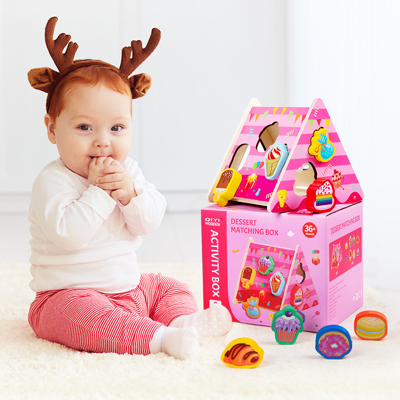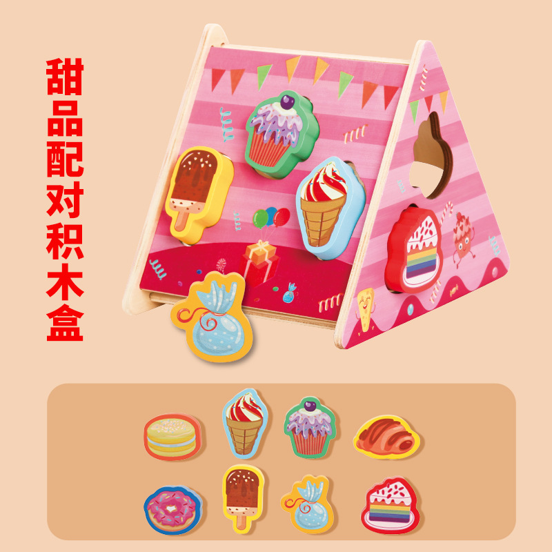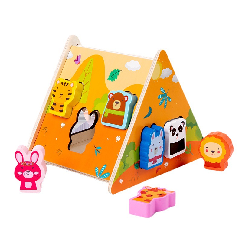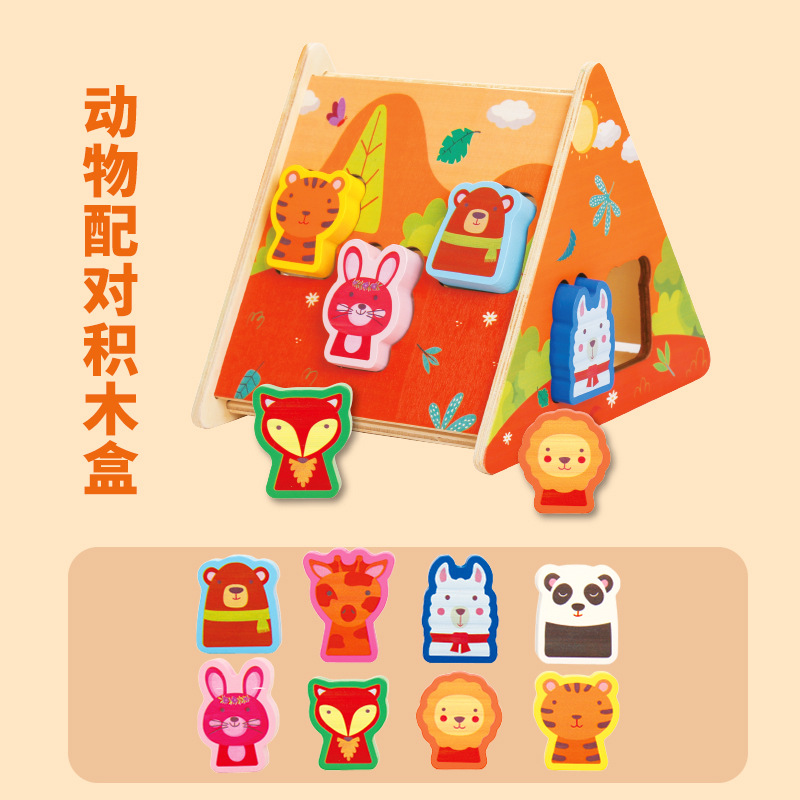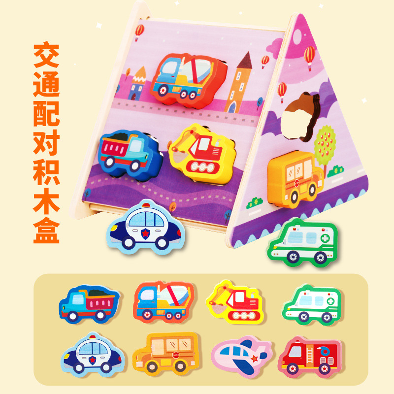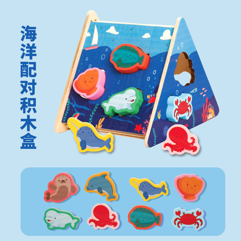 木制几何形状积木8孔形状配对智力盒 儿童益智早教认知积木玩具
