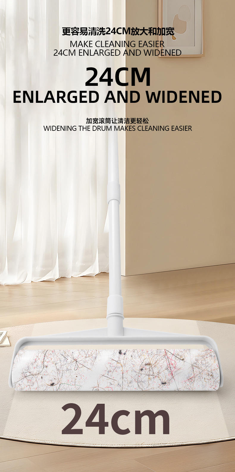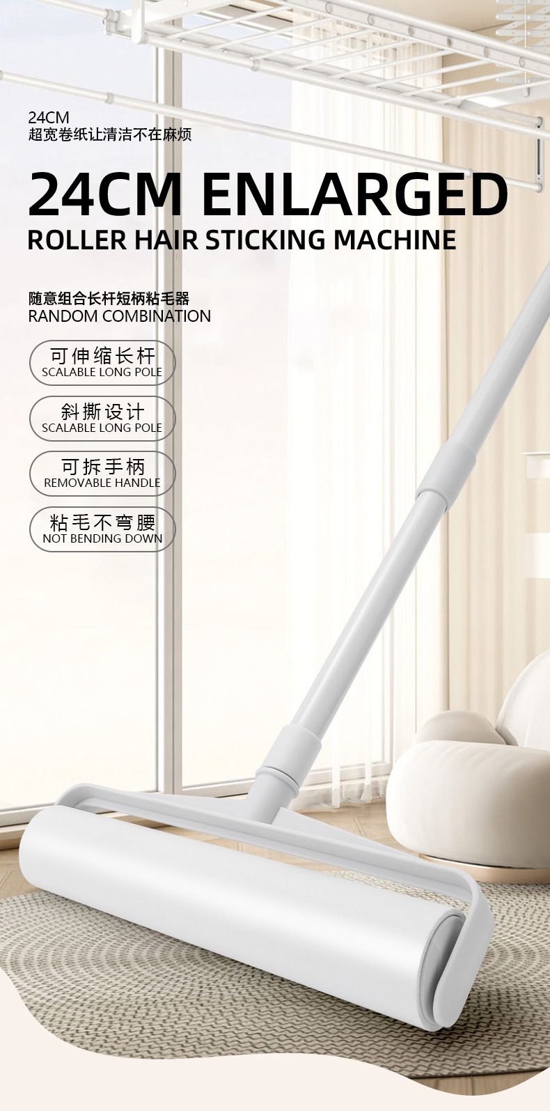 跨境可伸缩长杆滚筒粘毛器Long Handle Lint Roller Retractab