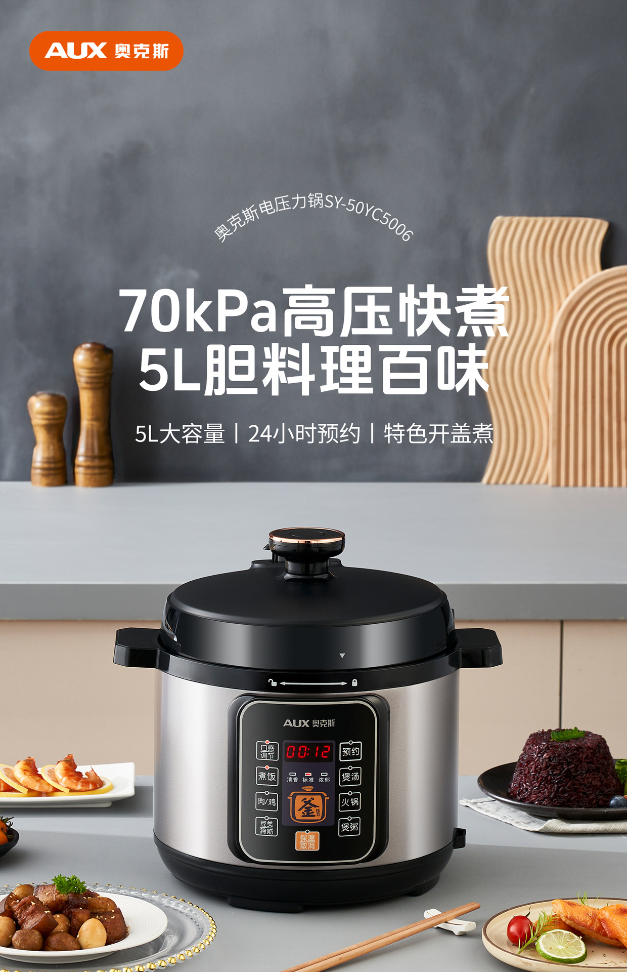 奥克斯电压力锅 家用多功能电饭煲5L大容量 不粘锅压力锅【批发】