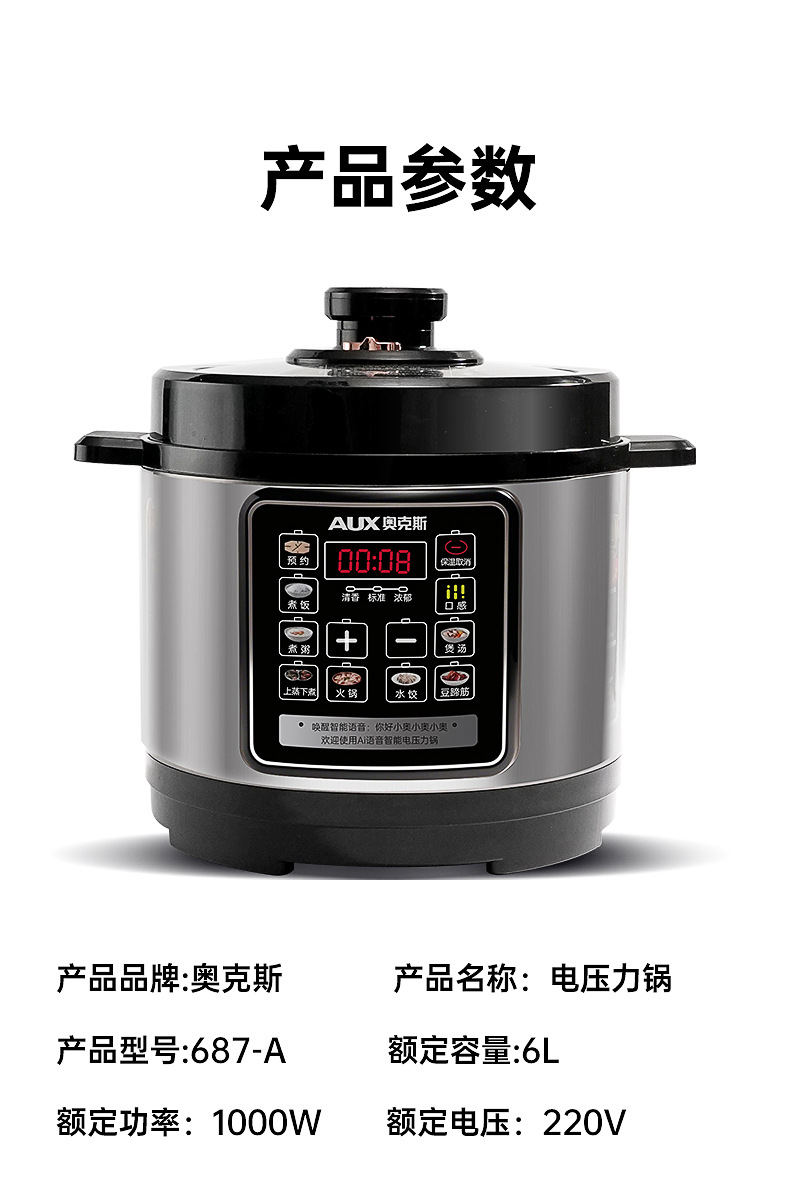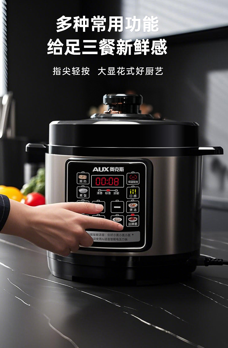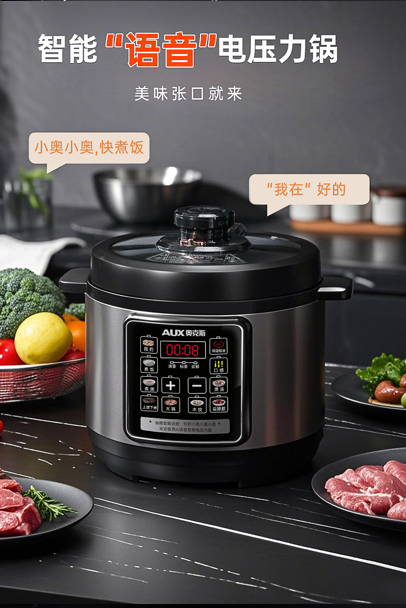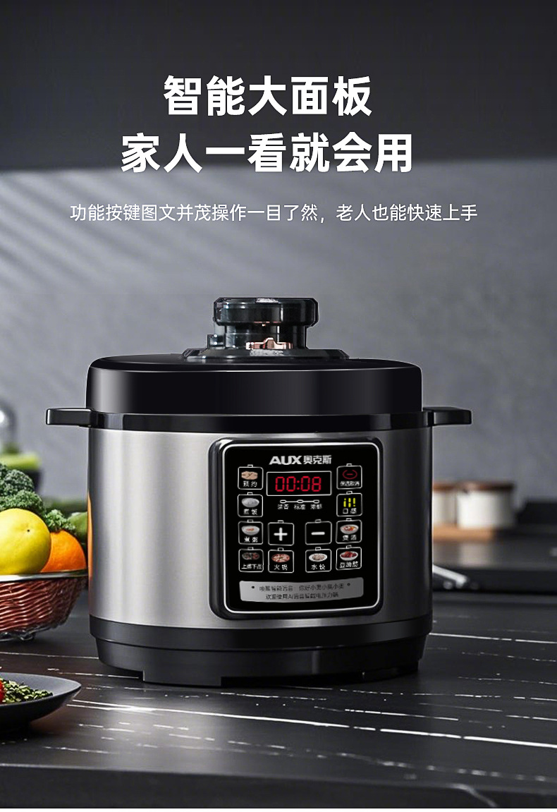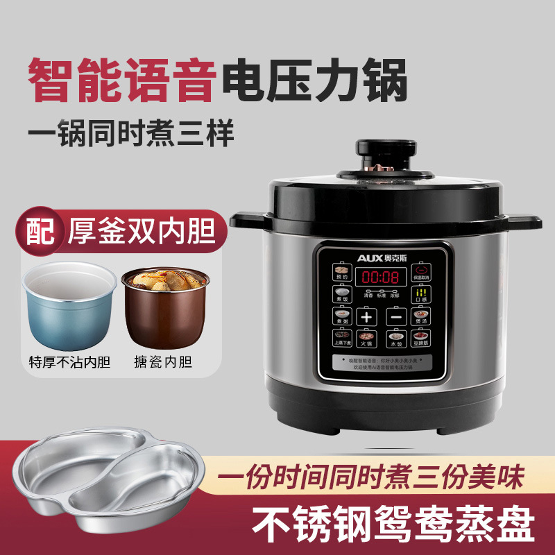 奥克斯电压力锅家用大容量智能语音高压饭煲上蒸下煮多功能方便