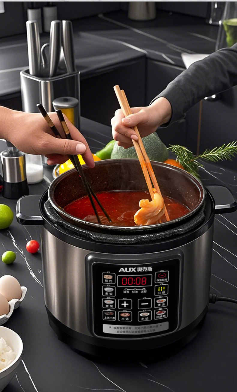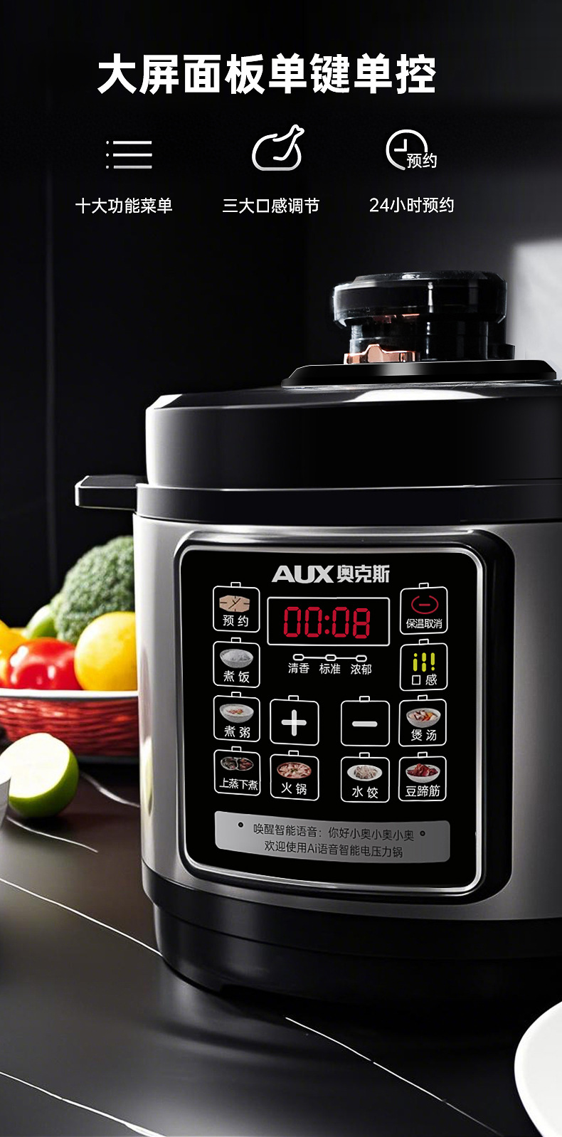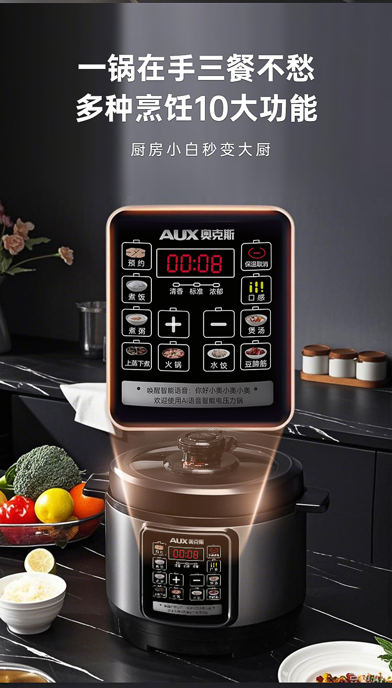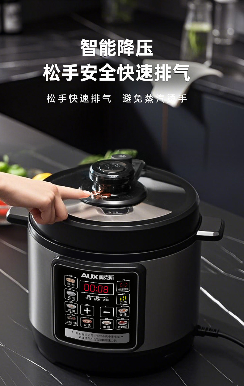 奥克斯电压力锅家用大容量智能语音高压饭煲上蒸下煮多功能方便