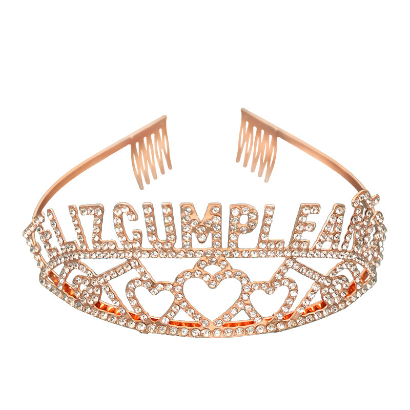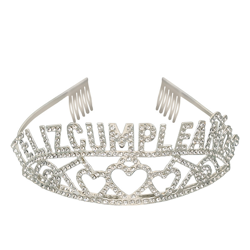 西语生日发箍新款西班牙语水钻字母闪钻派对装饰皇冠舞会肩带头饰