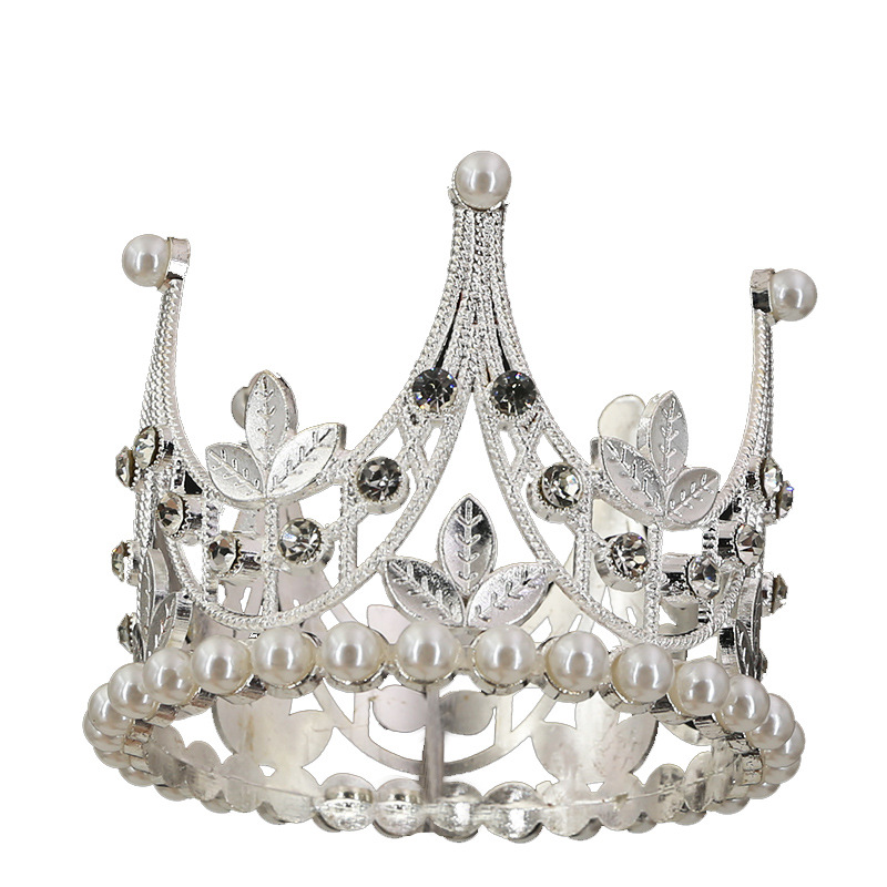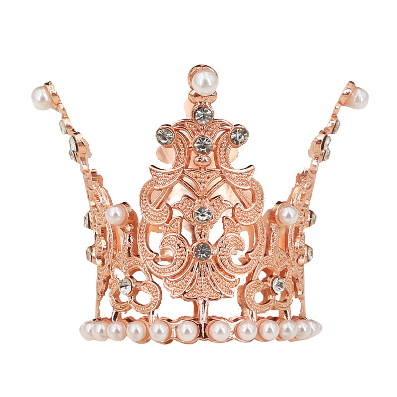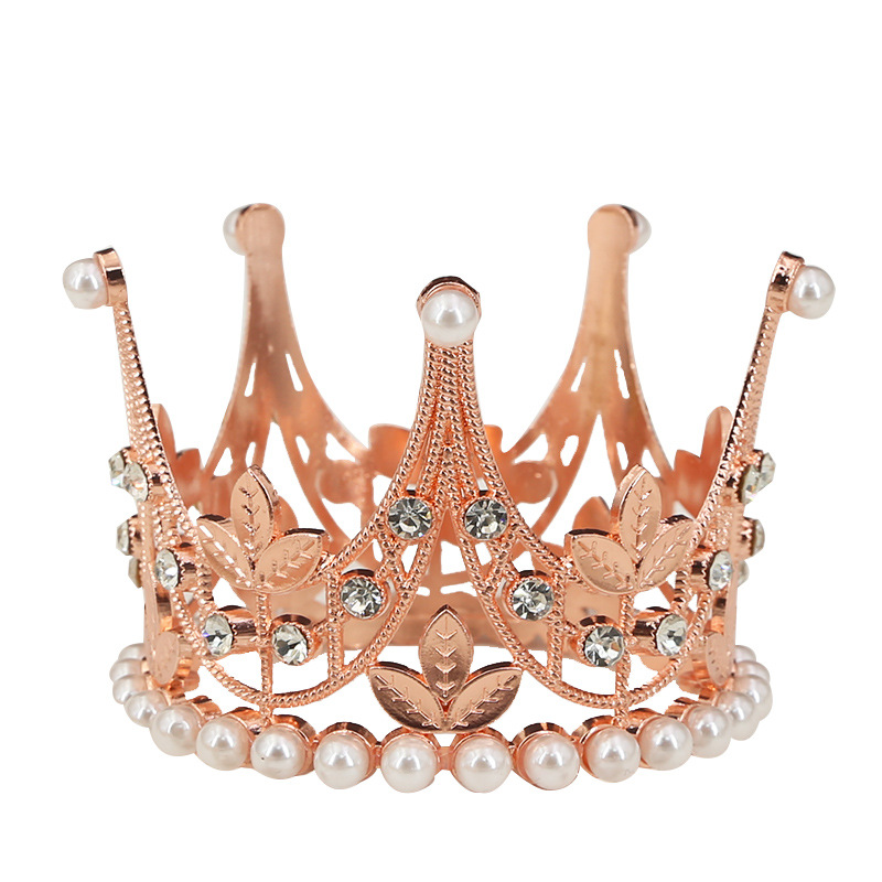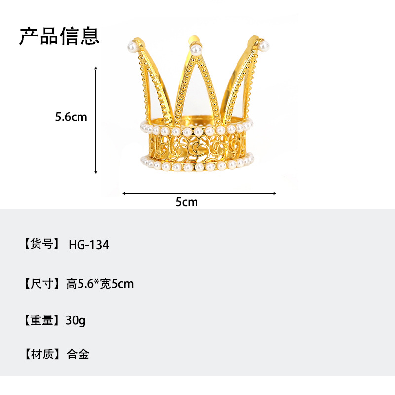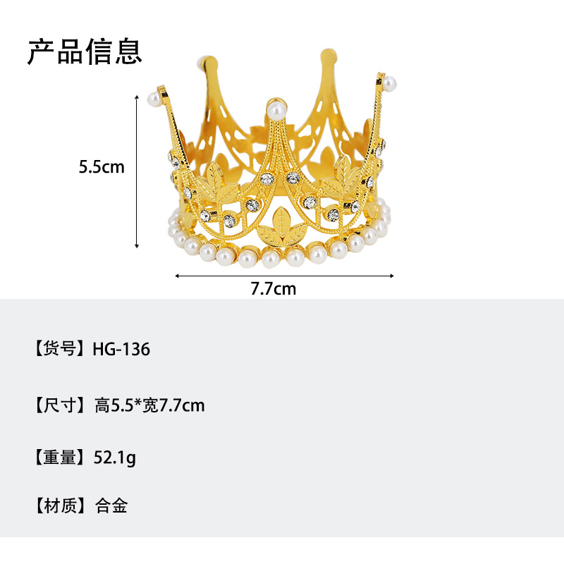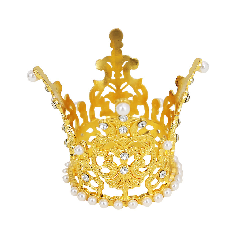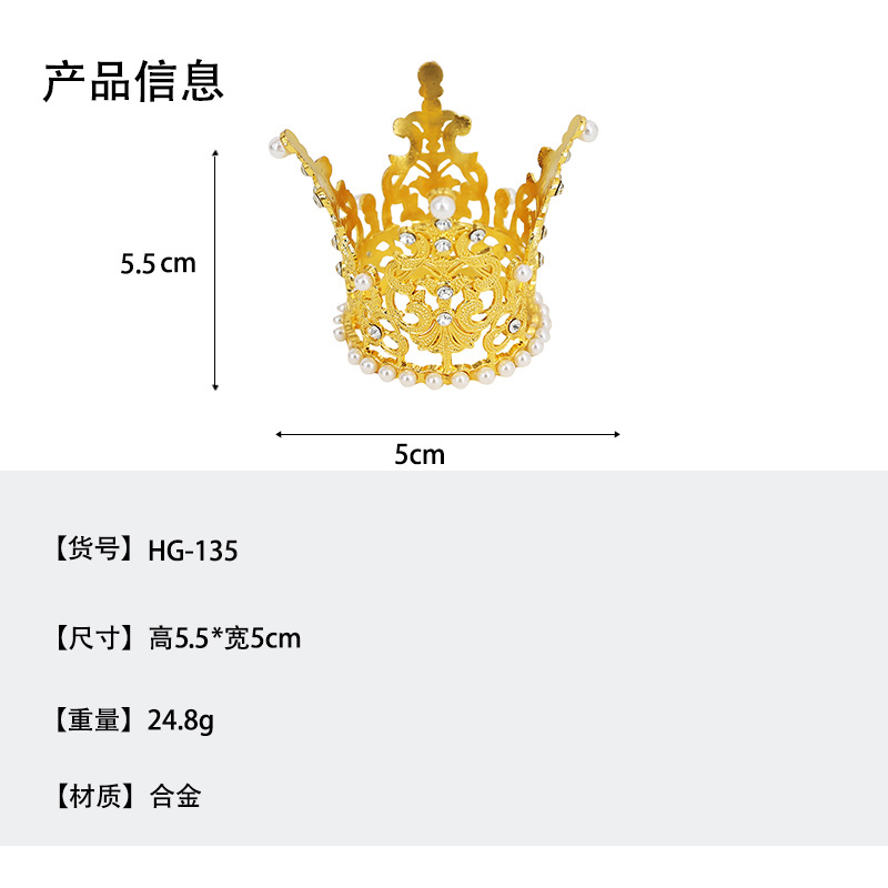 跨境2023新款金色圆头饰生日派对表演皇冠合金水钻王冠儿童发饰