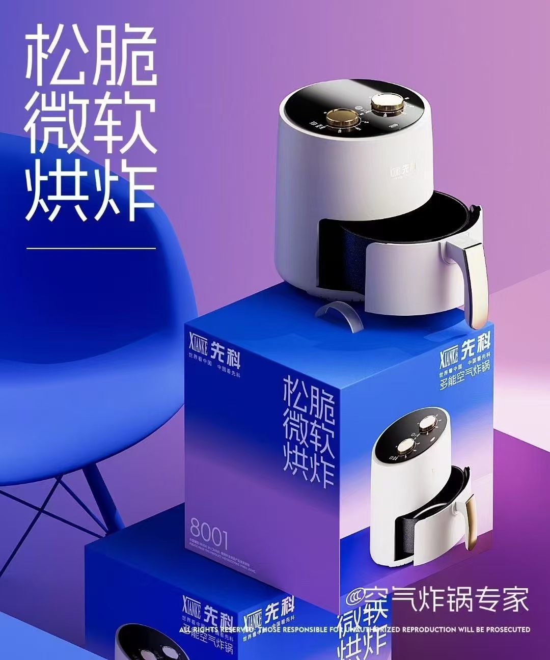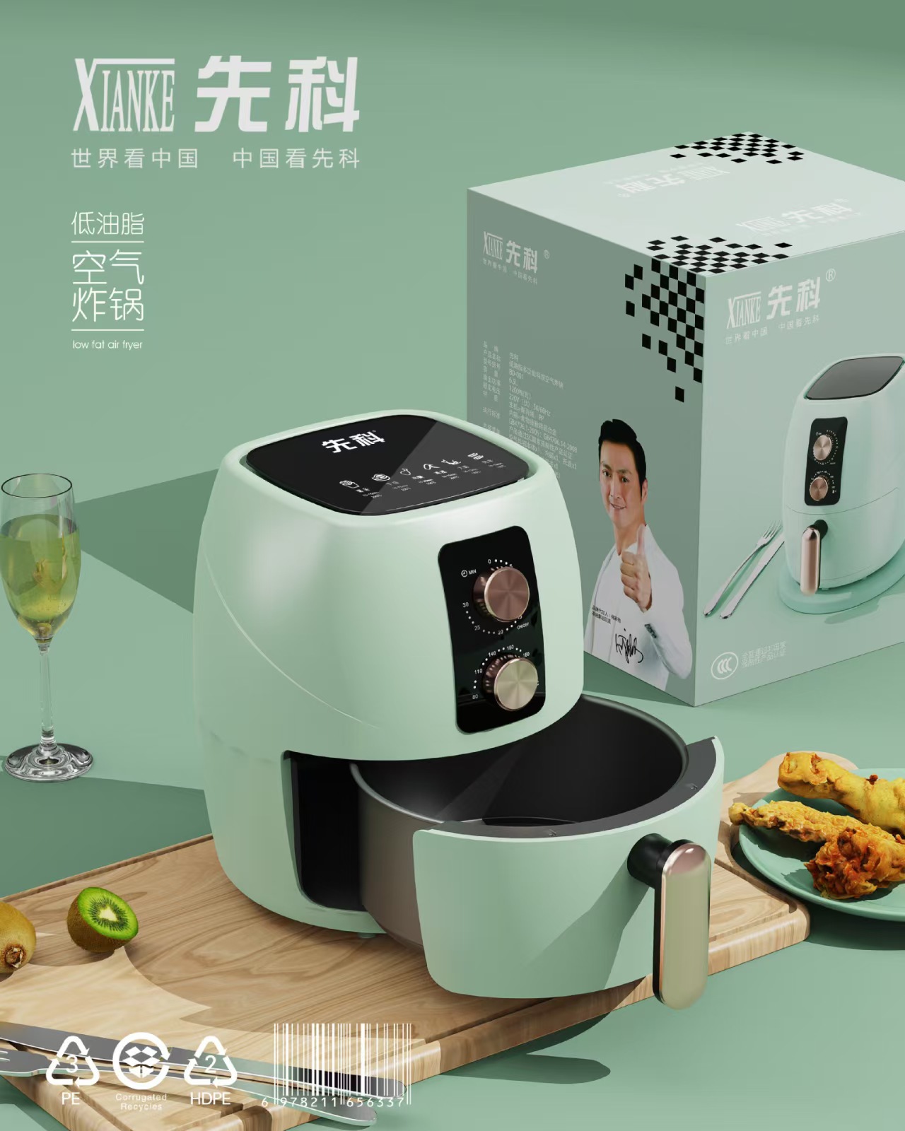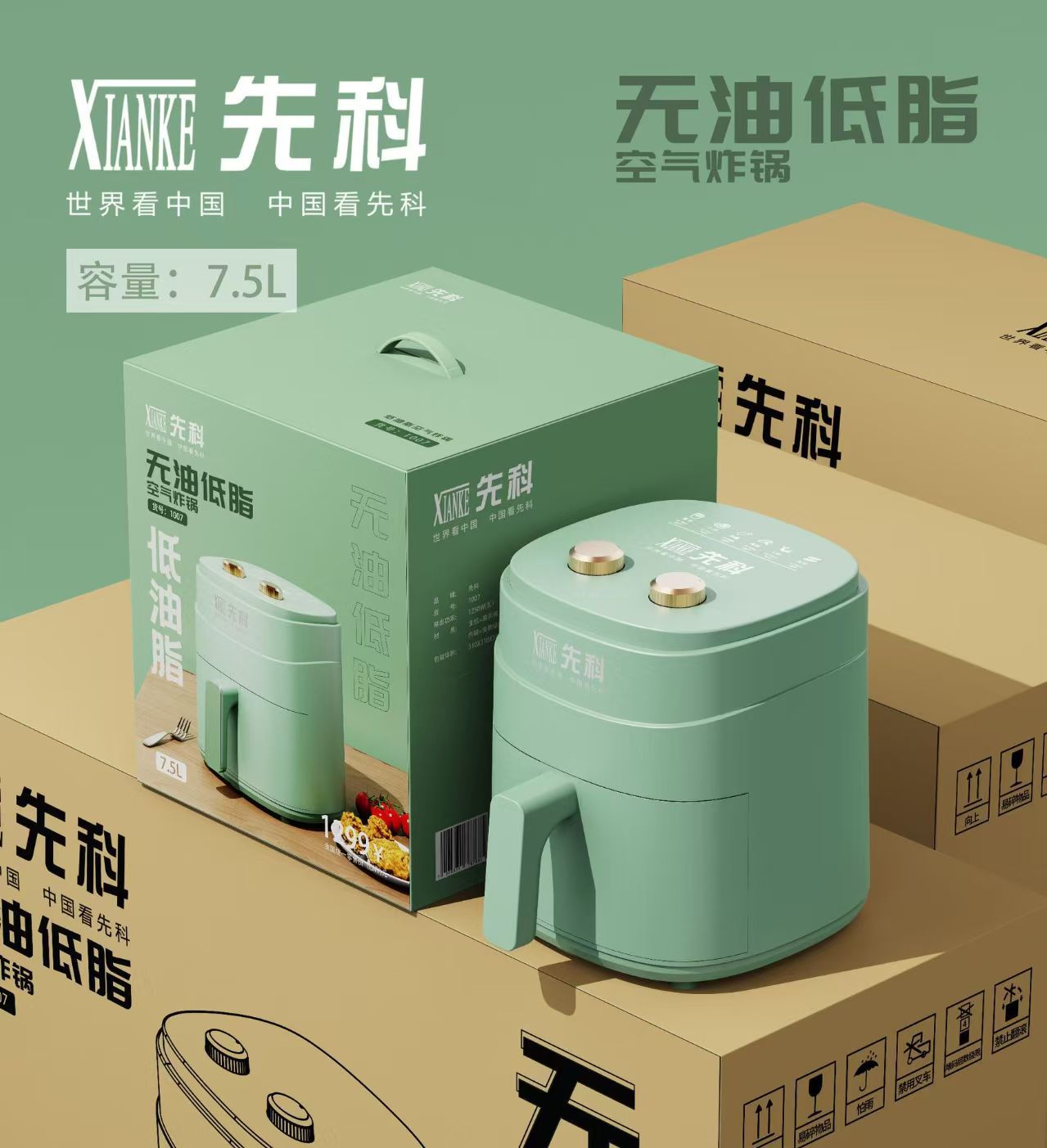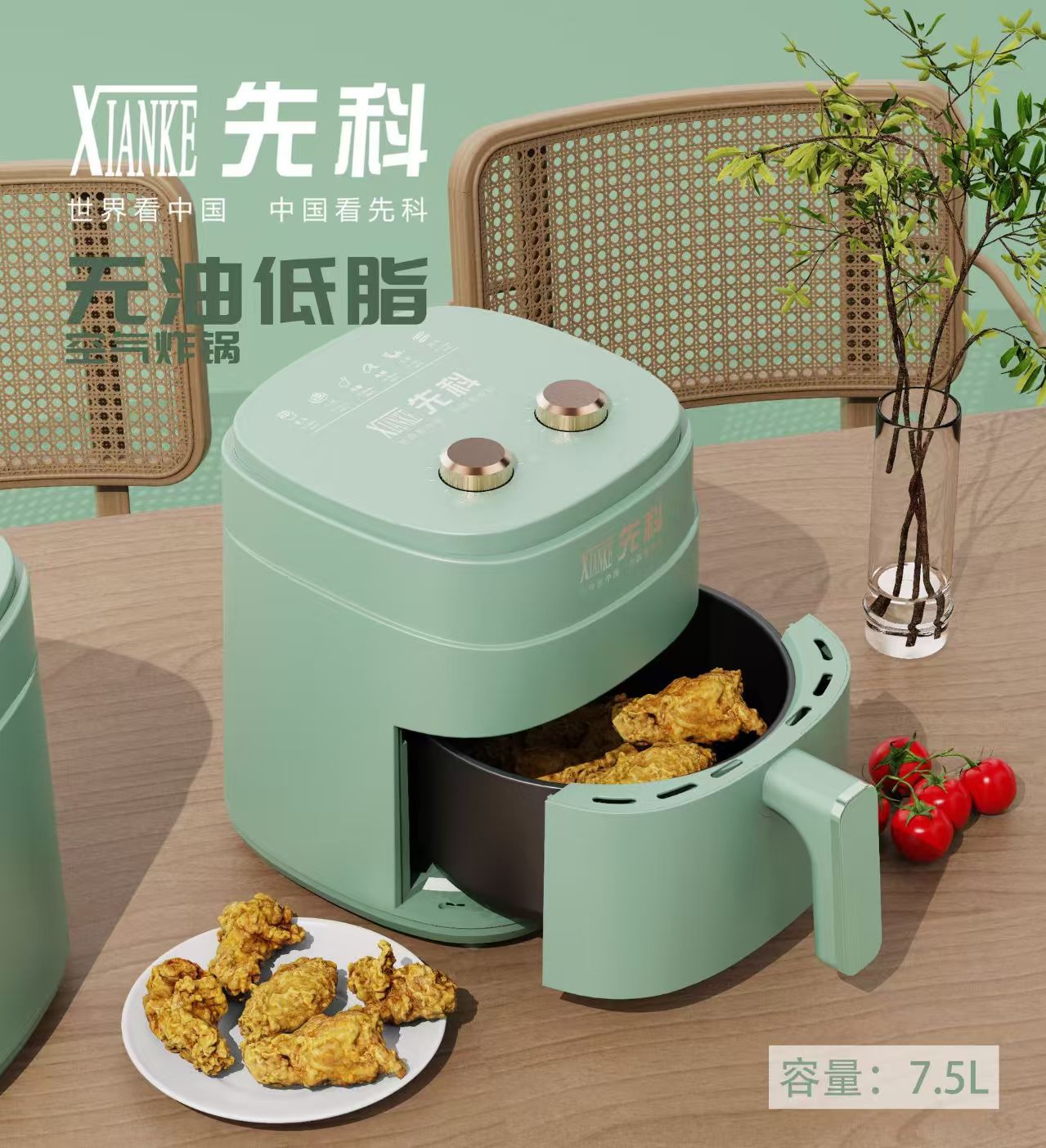 2025新款先科空气炸锅家用电炸锅多功能全自动双旋钮薯条机无油烟