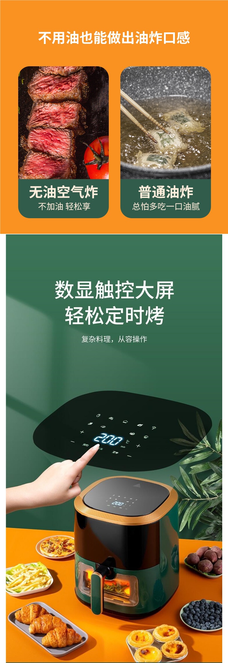 德国品质可视空气炸锅家用新款智能大容量无油全自动2025电炸锅机