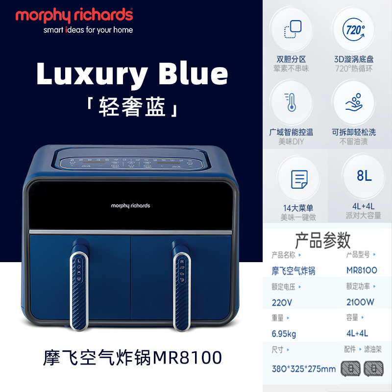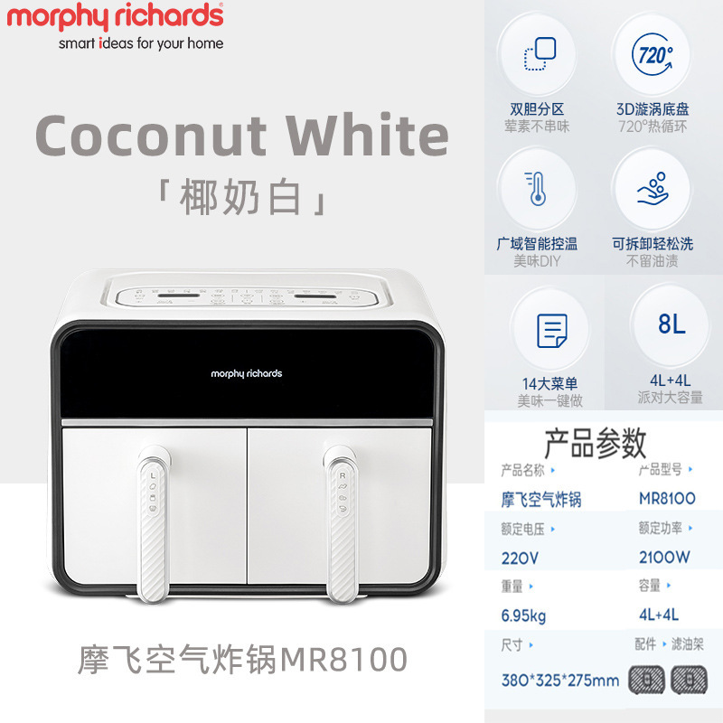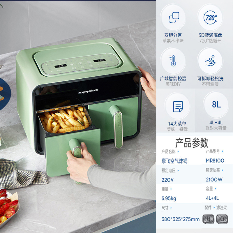 摩飞2025新款空气炸锅家用双拼桶新款双仓大容量双胆可视一体炸锅