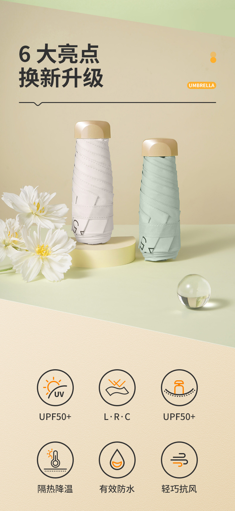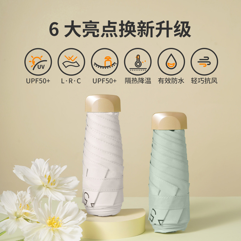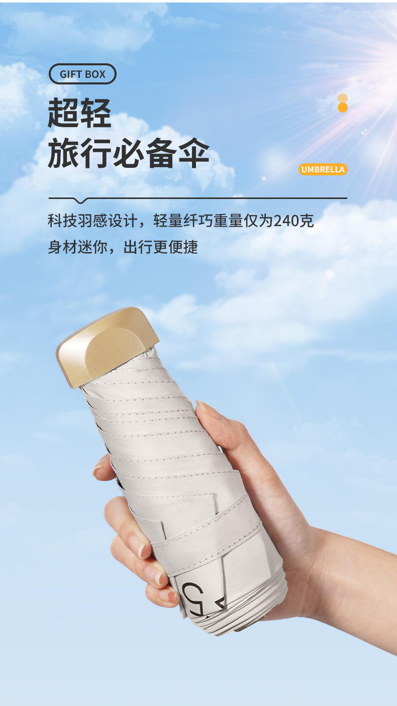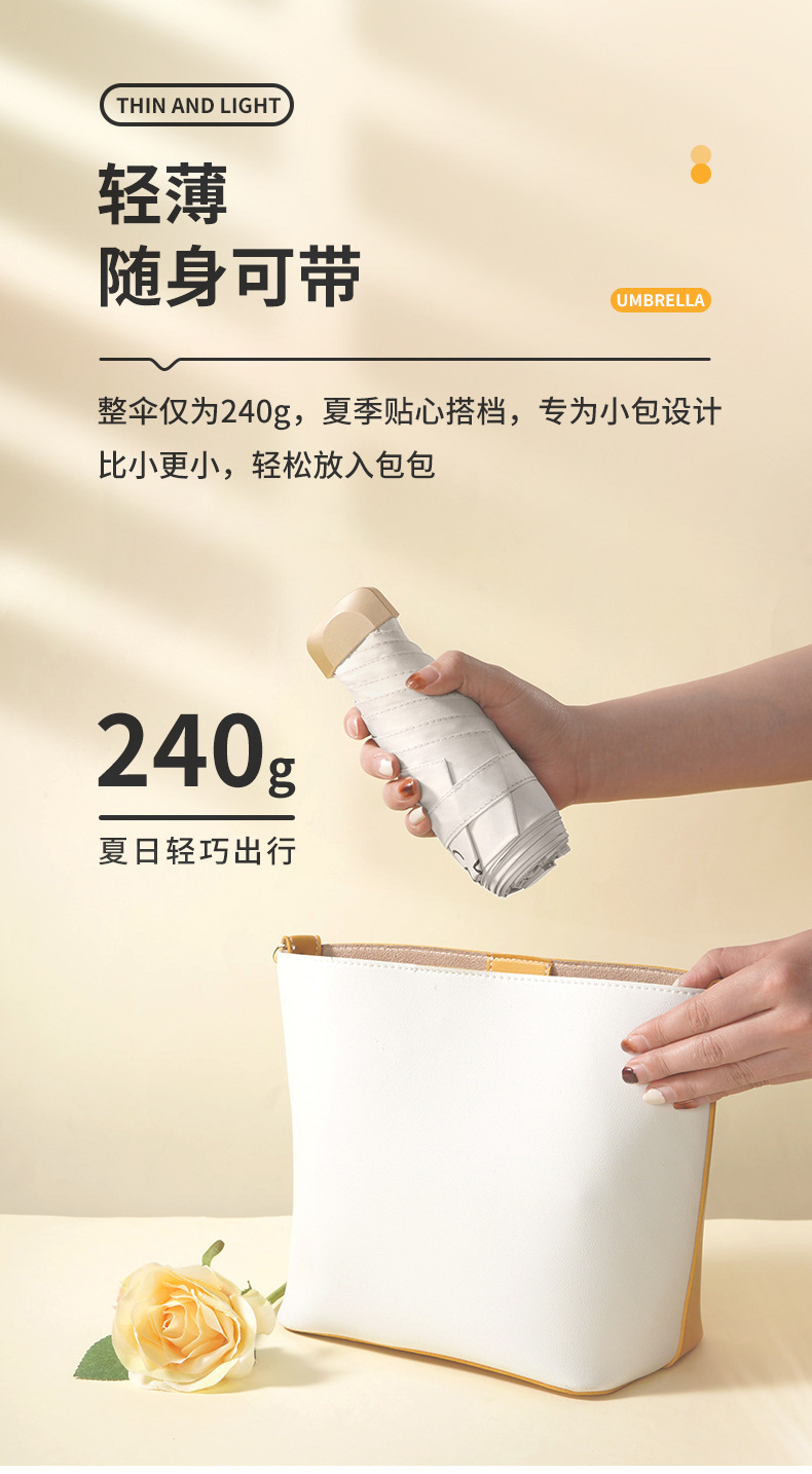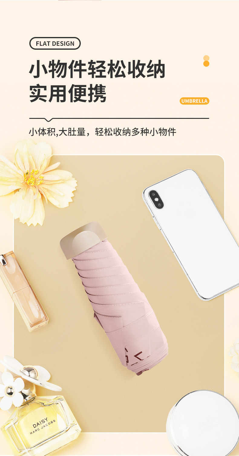防晒扁五折八骨伞口袋胶囊伞黑胶五折六骨折叠太阳遮阳伞晴雨批发