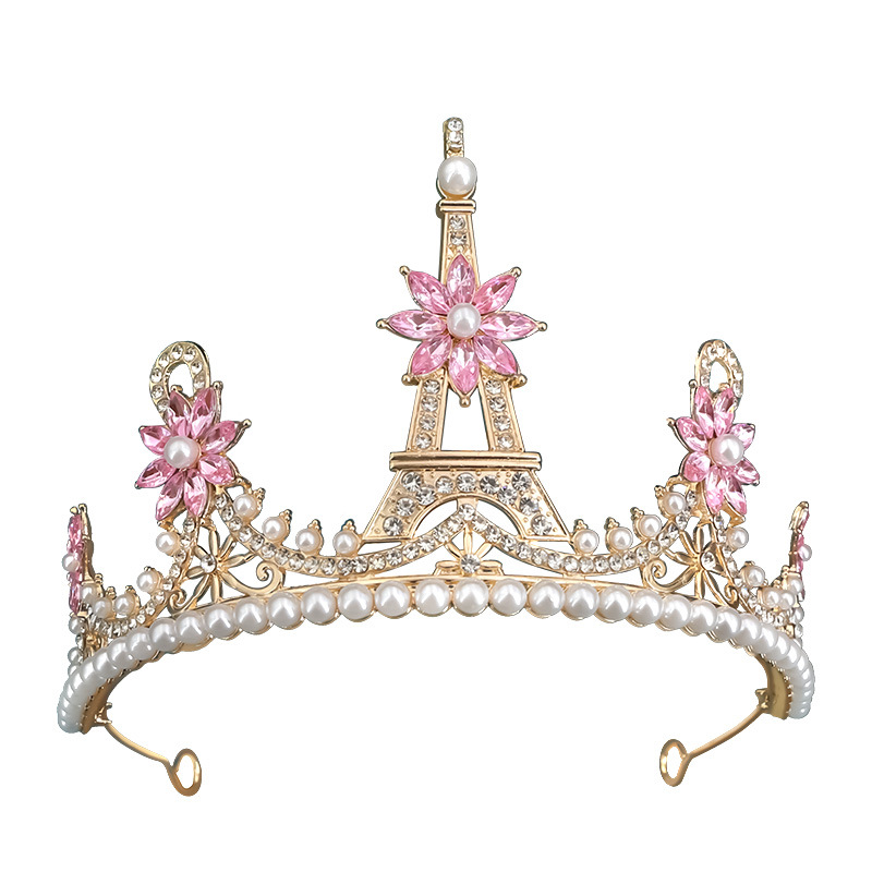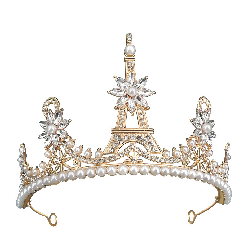 巴洛克宝塔新娘皇冠生日派对水钻珍珠王冠头饰婚纱礼服配饰新娘