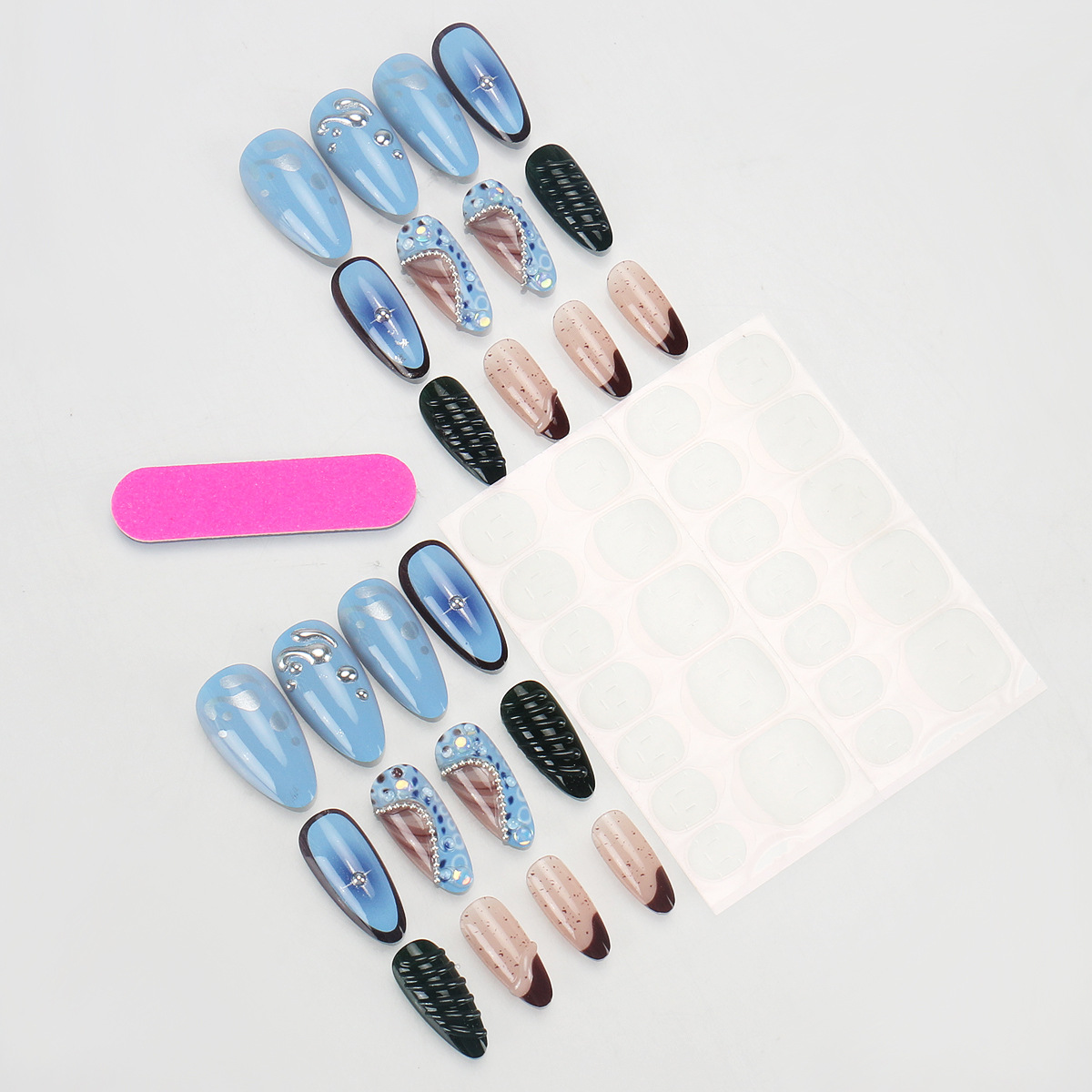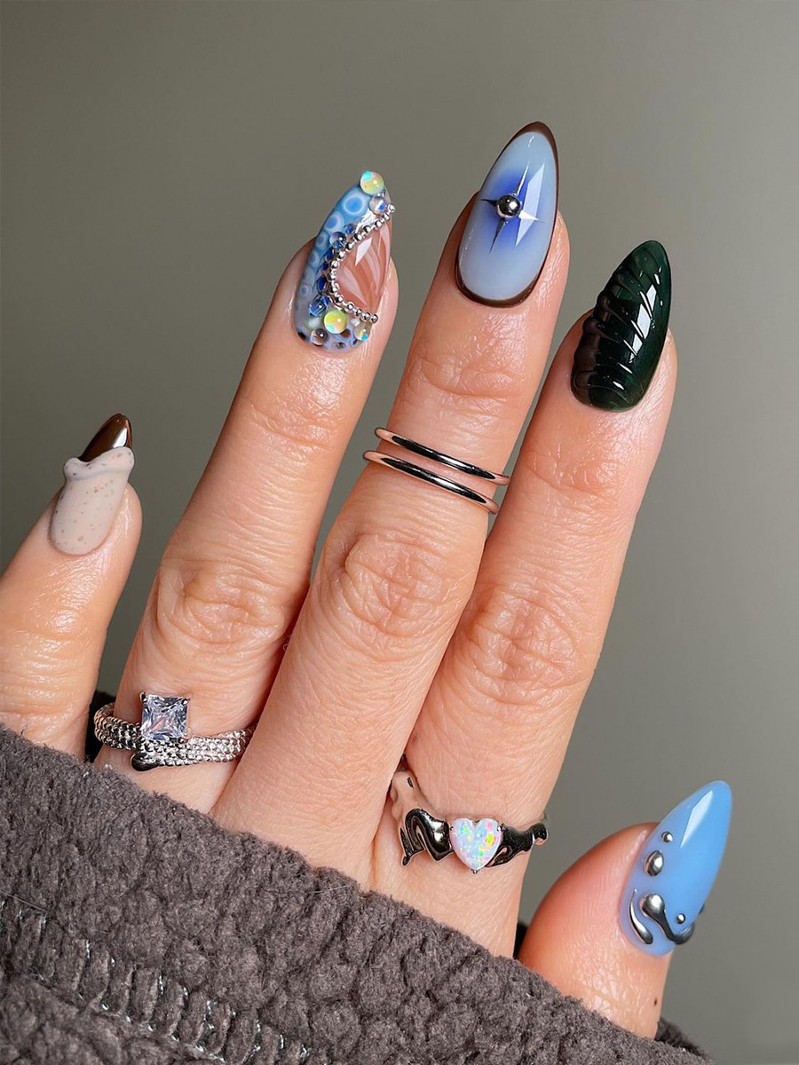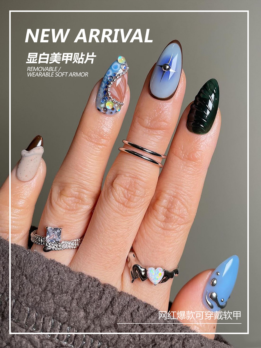 美甲甲片穿戴式欧美赛博海洋风立体金属线条贝壳纹可拆卸穿戴甲片
