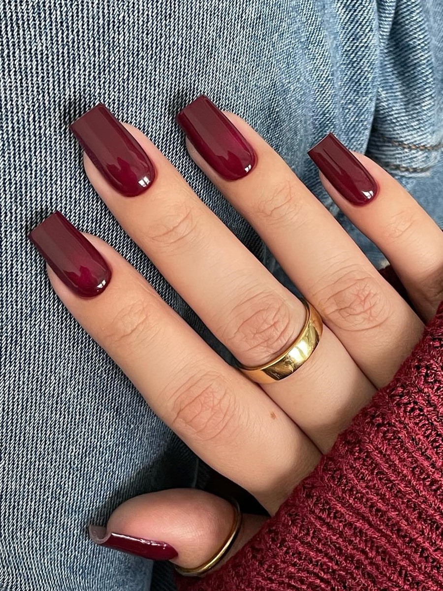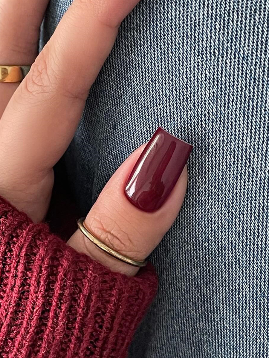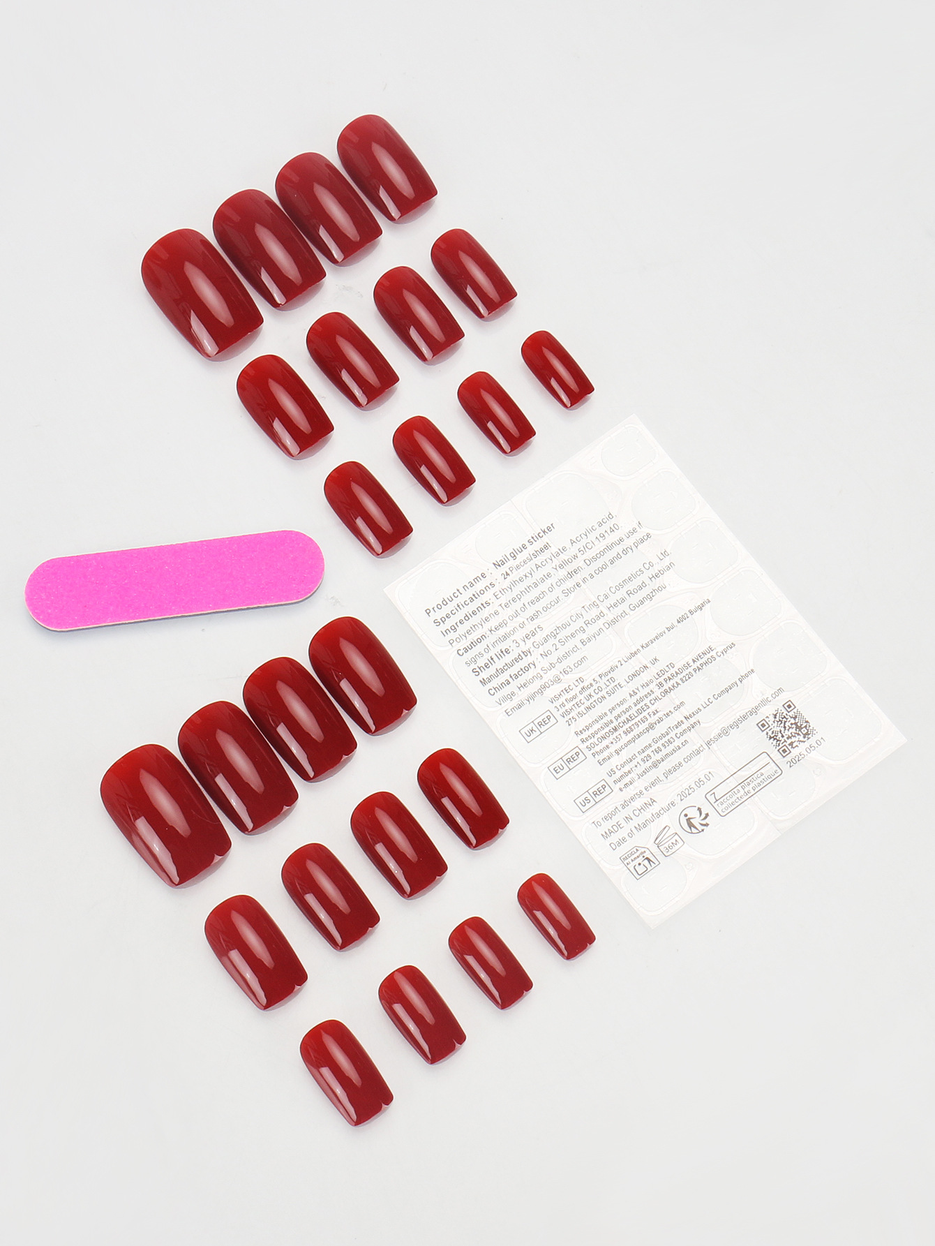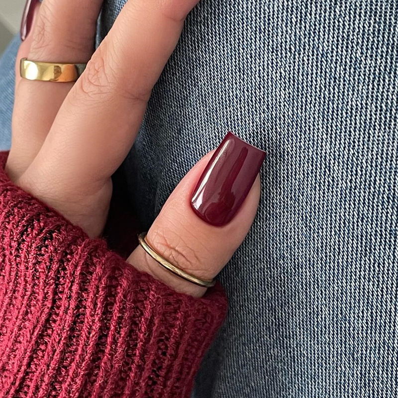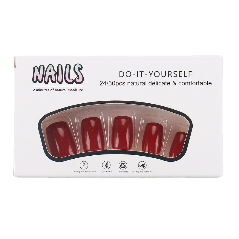 穿戴甲短款甲片跨境中方型光泽感酒红色美甲甲片成品可拆卸nails