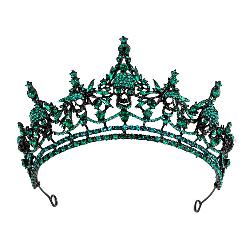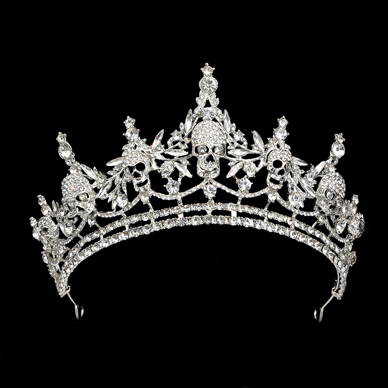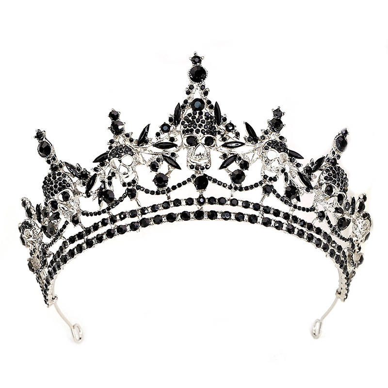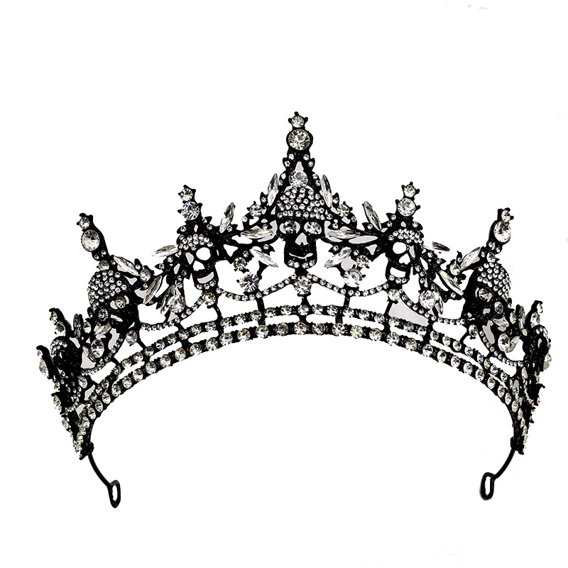跨境哥特皇冠黑色骷髅发饰 女王皇冠女巫头带 万圣节装扮派对装饰
