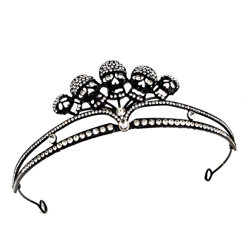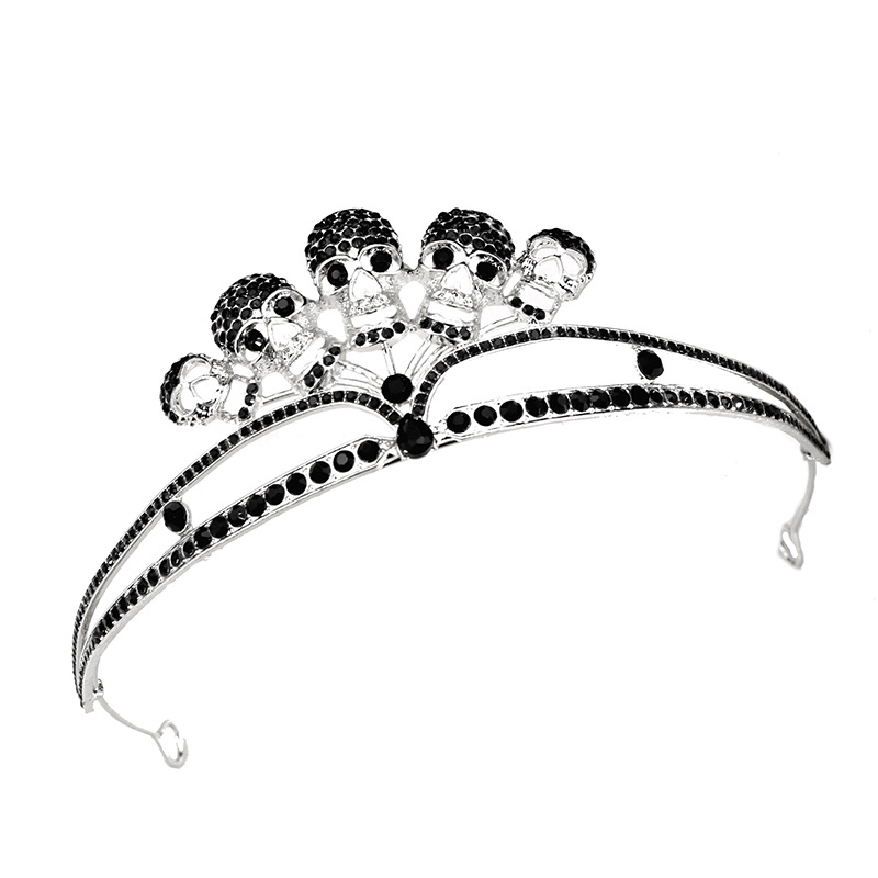 跨境哥特皇冠黑色骷髅发饰 女王皇冠女巫头带 万圣节装扮派对装饰